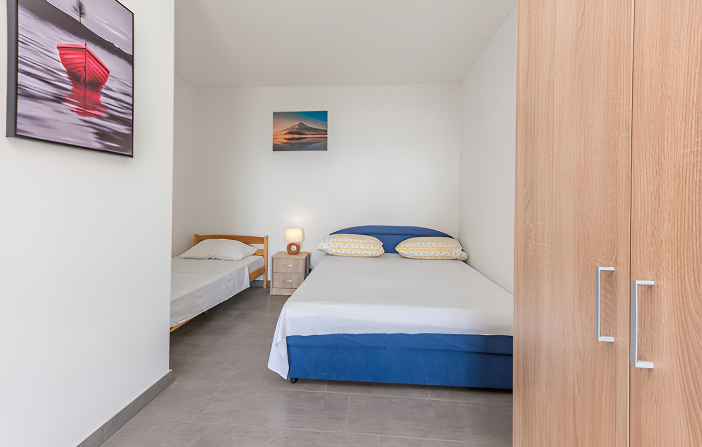 Studio flat can accommodate 3 guests. Beds are situated in 1 sleeping rooms, within 21m2. Guests can use a private terrace to enjoy the warm summer evenings. The studio offers the sea view. Food can be prepared using barbecue which is shared with other guests too. INCLUDED IN THE PRICE: tourist tax, final cleaning, air-conditioning, parking, internet, baby cot, iron, hairdryer. OPTIONAL ADDITIONAL COSTS: boat (€80.00 per night). The availability of additional services for your chosen dates of stay, as well as their prices (if none are listed) must be checked ahead of time. Any additional services not shown in the price calculation are payable directly to the property owner and only if used by the visitor. Discounts to the base price: free day 28=25 (for stays of 28 days or more, we give you 3 days free of charge for the stay until 31122026).