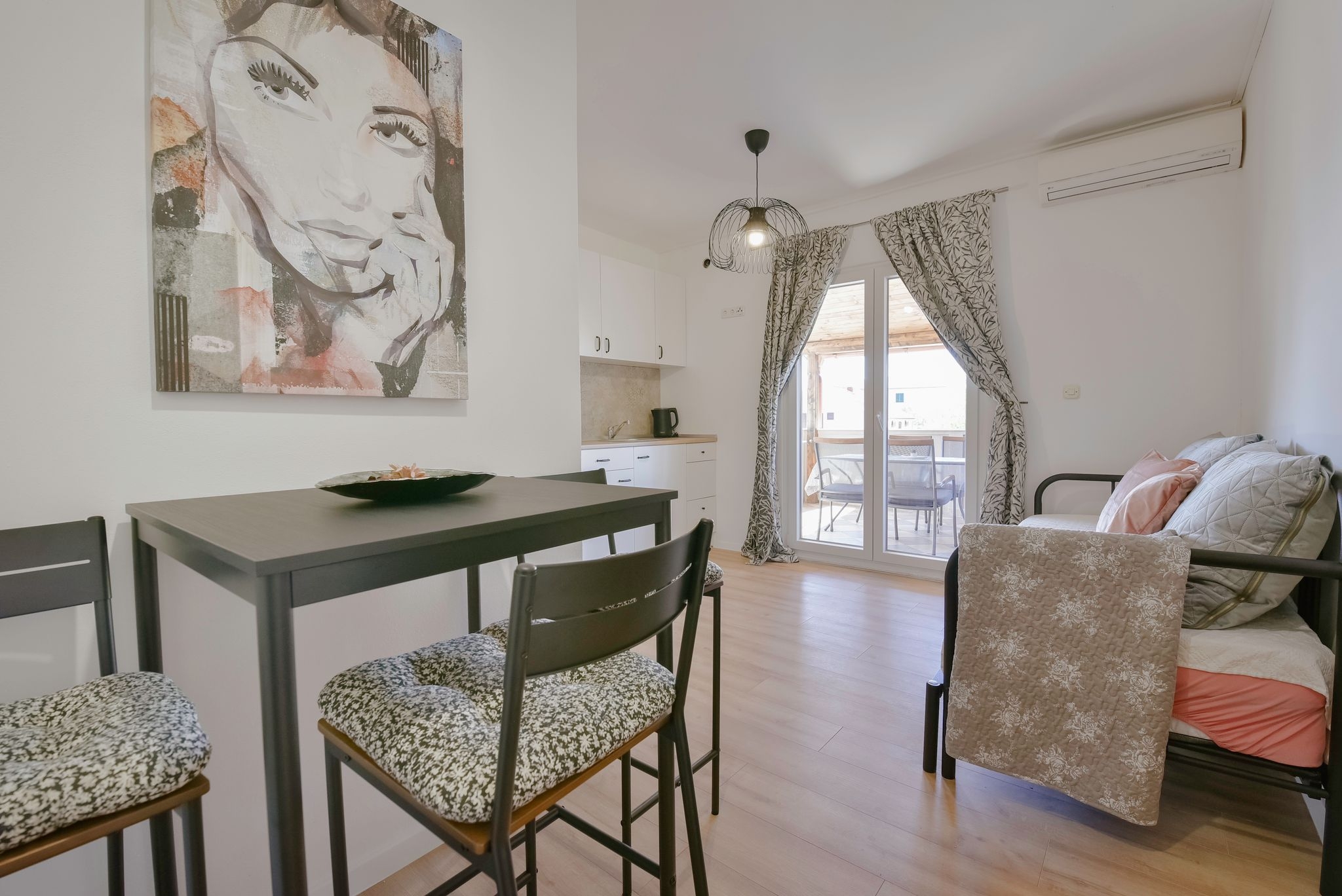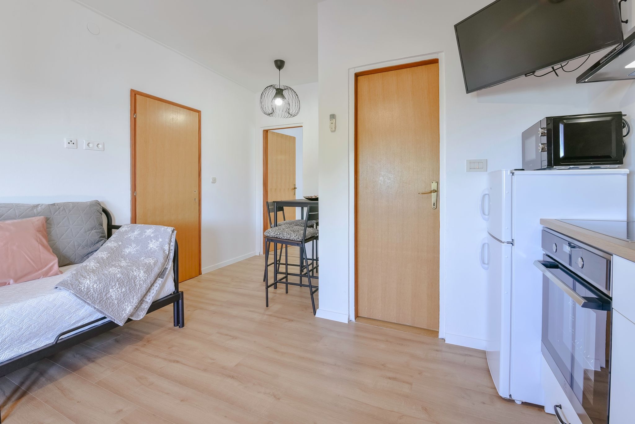 Apartment can accommodate 5 guests. Beds are situated in 1 sleeping rooms, but also in the living room, within 35m2. Guests can use a private terrace to enjoy the warm summer evenings. The apartment offers the sea view. Food can be prepared using barbecue which is shared with other guests too. INCLUDED IN THE PRICE: tourist tax, final cleaning, air-conditioning, parking, internet, baby cot, iron, ironing board. OBLIGATORY ADDITIONAL COSTS: short stay fee (surcharge depending on a number of booked nights: 30% - 1, 20% - 2, 10% - 3). The availability of additional services for your chosen dates of stay, as well as their prices (if none are listed) must be checked ahead of time. Any additional services not shown in the price calculation are payable directly to the property owner and only if used by the visitor. Discounts to the base price: free day 14=13 (for reservations of 14 or more days you get one free day for the stay until 31122026).