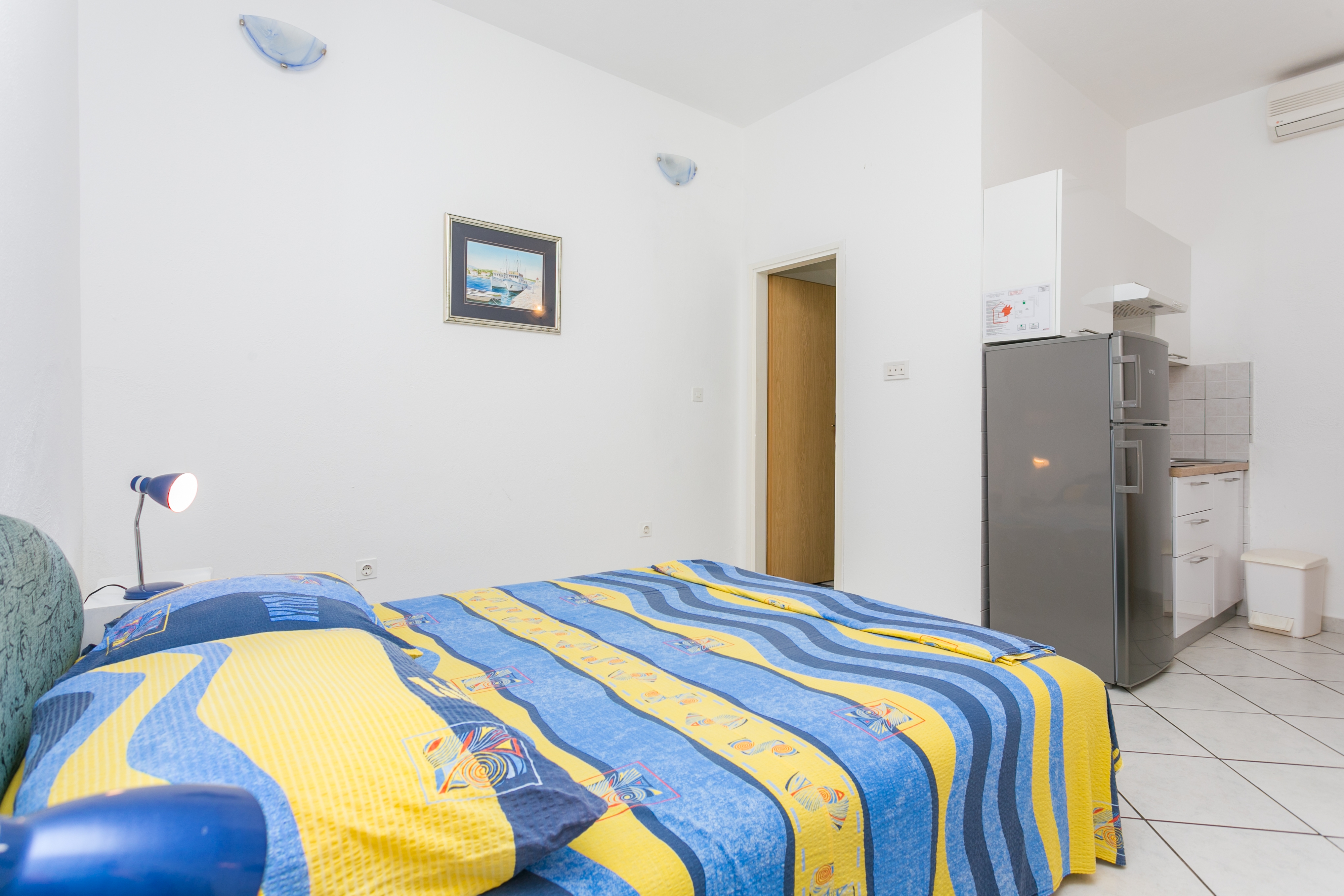 Studio flat can accommodate 2 guests. Beds are situated in 1 sleeping rooms, within 24m2. Guests can use a private terrace to enjoy the warm summer evenings. Food can be prepared using barbecue which is shared with other guests too. INCLUDED IN THE PRICE: tourist tax, final cleaning, air-conditioning, parking, internet, baby cot, iron, ironing board, hairdryer, portable barbecue. OBLIGATORY ADDITIONAL COSTS: short stay fee (surcharge depending on a number of booked nights: 30% - 1, 20% - 2, 10% - 3). The availability of additional services for your chosen dates of stay, as well as their prices (if none are listed) must be checked ahead of time. Any additional services not shown in the price calculation are payable directly to the property owner and only if used by the visitor.