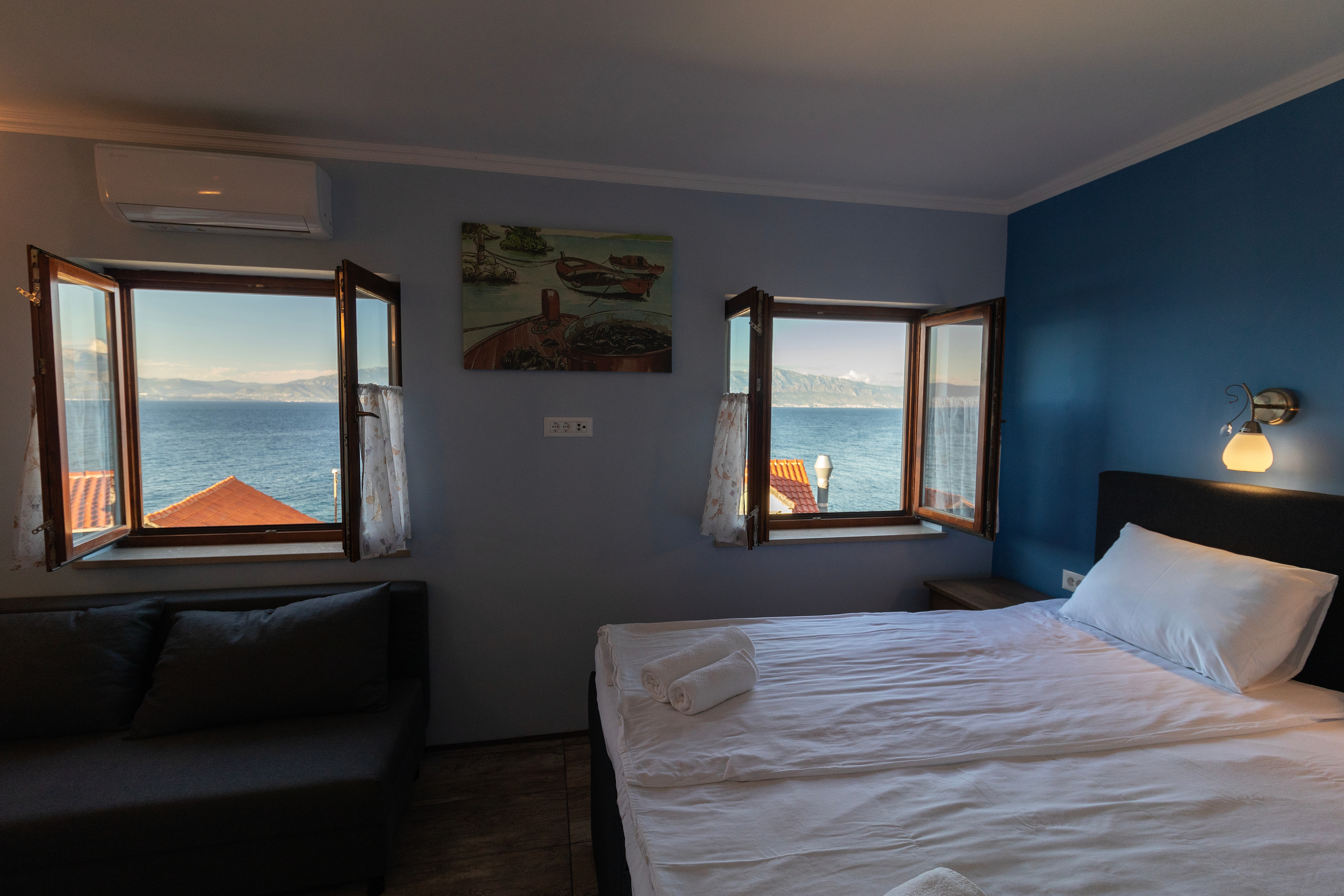 Room can accommodate 3 guests. Beds are situated in 1 sleeping rooms, within 25m2. The room offers the sea view. There is no balcony or terrace in the reserved accommodation unit. Reserved accommodation unit is a room with its own bathroom and there is no usage of kitchen. INCLUDED IN THE PRICE: final cleaning, air-conditioning, parking, internet. OBLIGATORY ADDITIONAL COSTS: tourist tax (adults €0.93 - €2.00 nightperson, discount for children aged 12 - 17). The availability of additional services for your chosen dates of stay, as well as their prices (if none are listed) must be checked ahead of time. Any additional services not shown in the price calculation are payable directly to the property owner and only if used by the visitor.