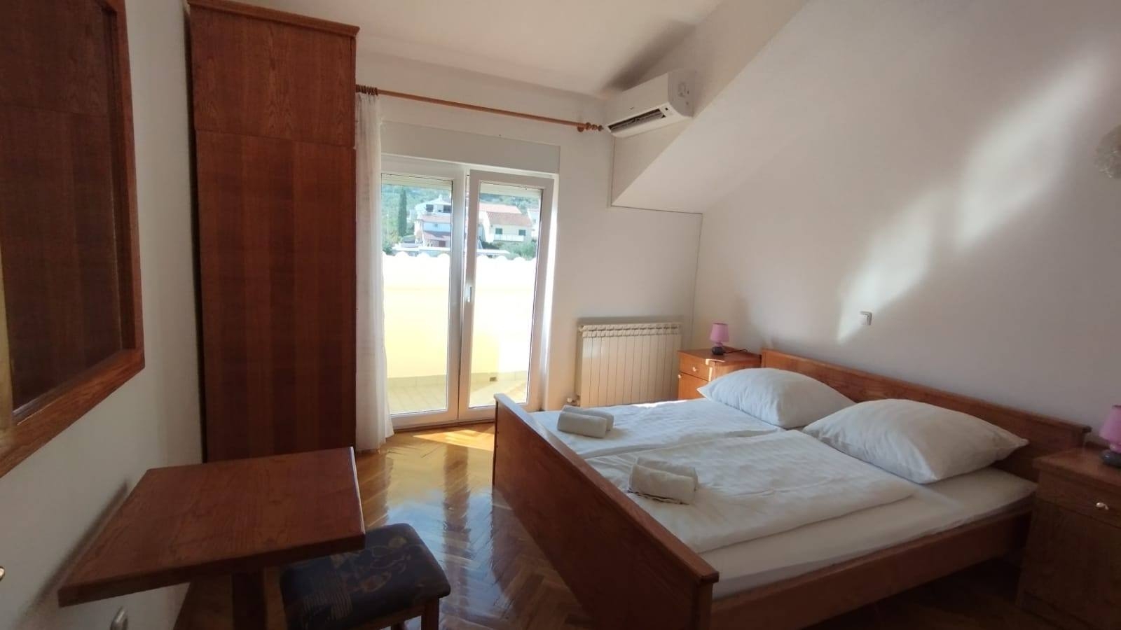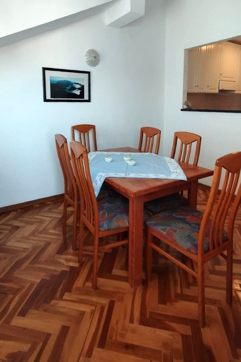 Apartment can accommodate 6 guests. Beds are situated in 2 sleeping rooms, but also in the living room, within 74m2. Guests can use a private terrace to enjoy the warm summer evenings. The apartment offers the sea view. Food can be prepared using barbecue which is shared with other guests too. INCLUDED IN THE PRICE: tourist tax, final cleaning, air-conditioning, parking, internet, baby cot, iron, ironing board. OBLIGATORY ADDITIONAL COSTS: short stay fee (surcharge depending on a number of booked nights: 30% - 1, 20% - 2, 10% - 3). The availability of additional services for your chosen dates of stay, as well as their prices (if none are listed) must be checked ahead of time. Any additional services not shown in the price calculation are payable directly to the property owner and only if used by the visitor.