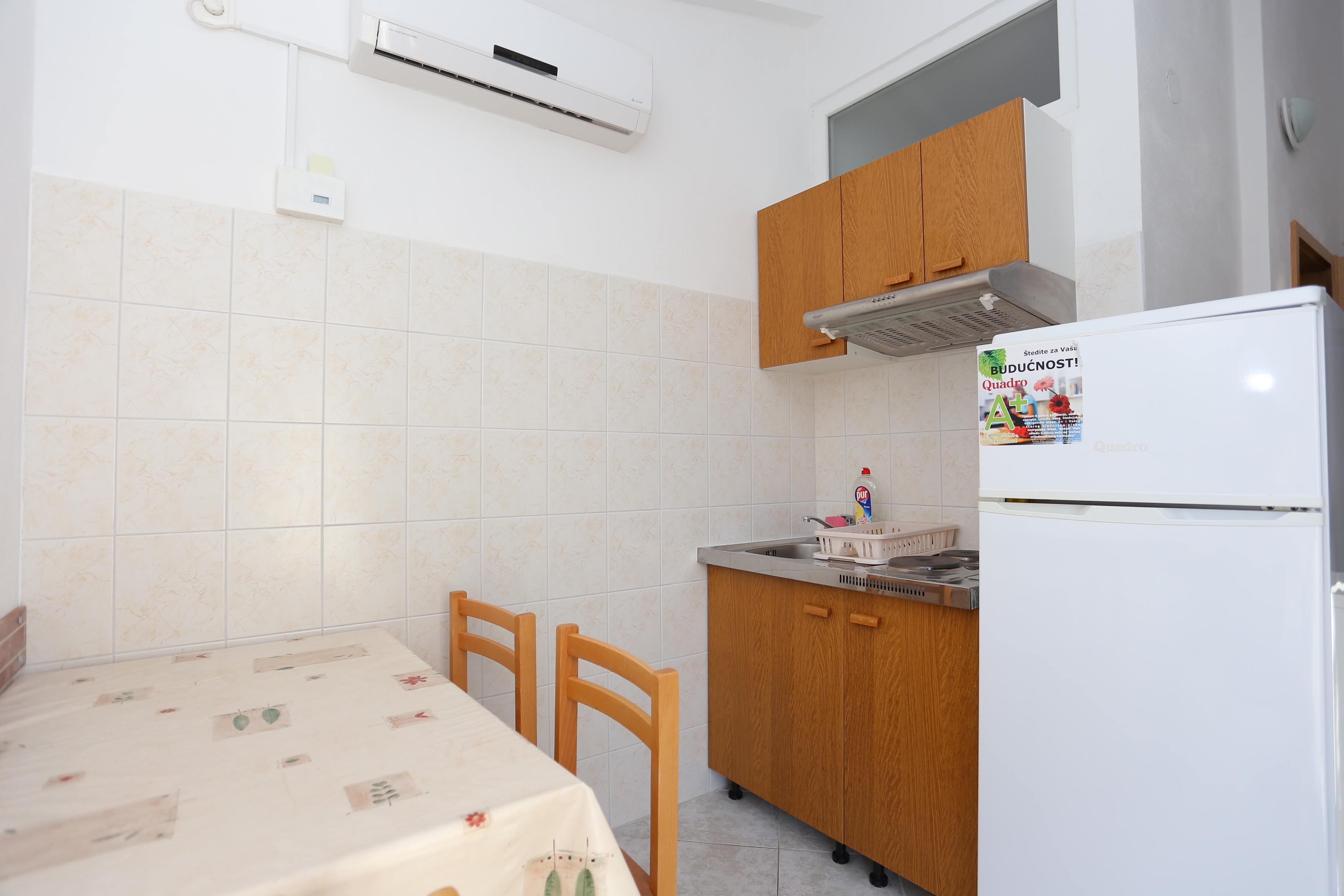 Apartment can accommodate 5 guests. Beds are situated in 2 sleeping rooms, within 37m2. Guests can use a private balcony to enjoy the warm summer evenings. Food can be prepared using barbecue which is shared with other guests too. INCLUDED IN THE PRICE: tourist tax, final cleaning, parking, internet, portable barbecue, sunshade, sunchairs. OBLIGATORY ADDITIONAL COSTS: short stay fee (surcharge depending on a number of booked nights: 30% - 1, 20% - 2, 10% - 3). OPTIONAL ADDITIONAL COSTS: air-conditioning (€5.00 per night), boat mooring (€5.00 per night). The availability of additional services for your chosen dates of stay, as well as their prices (if none are listed) must be checked ahead of time. Any additional services not shown in the price calculation are payable directly to the property owner and only if used by the visitor.