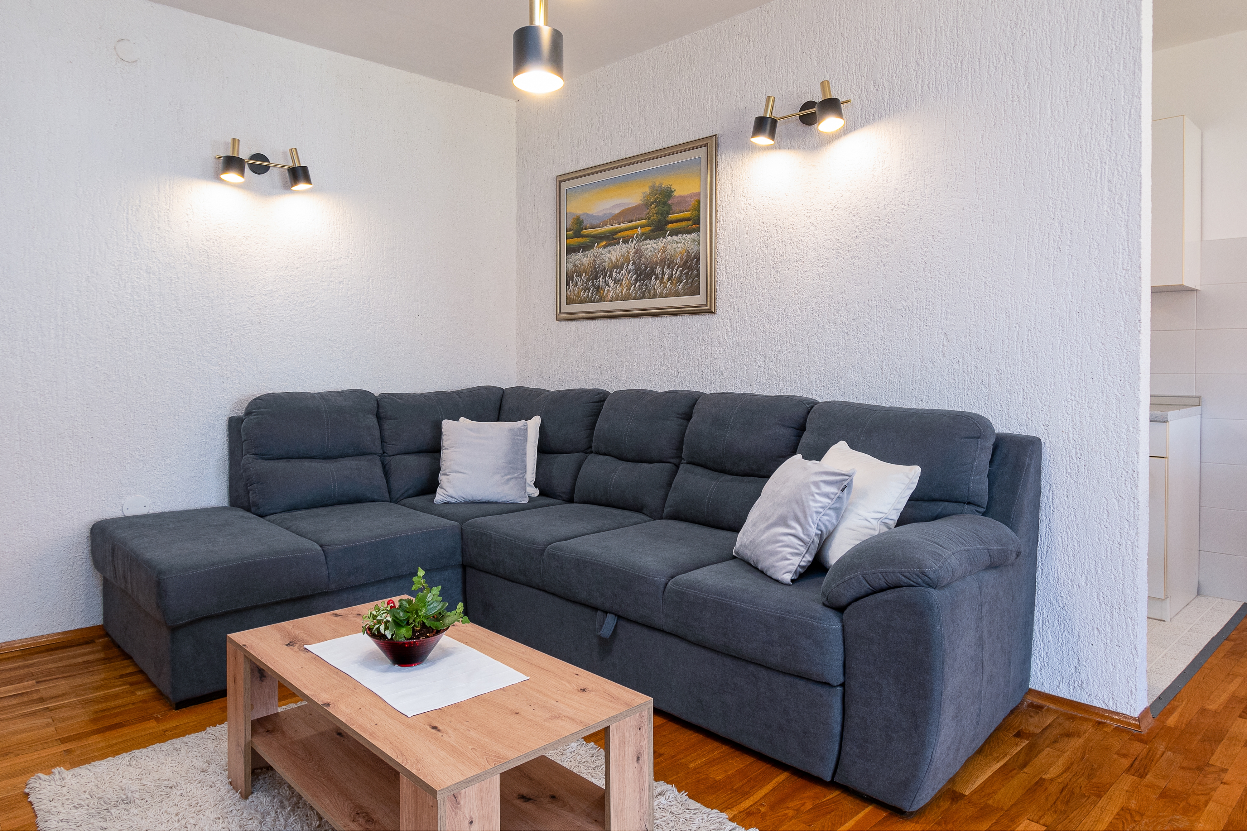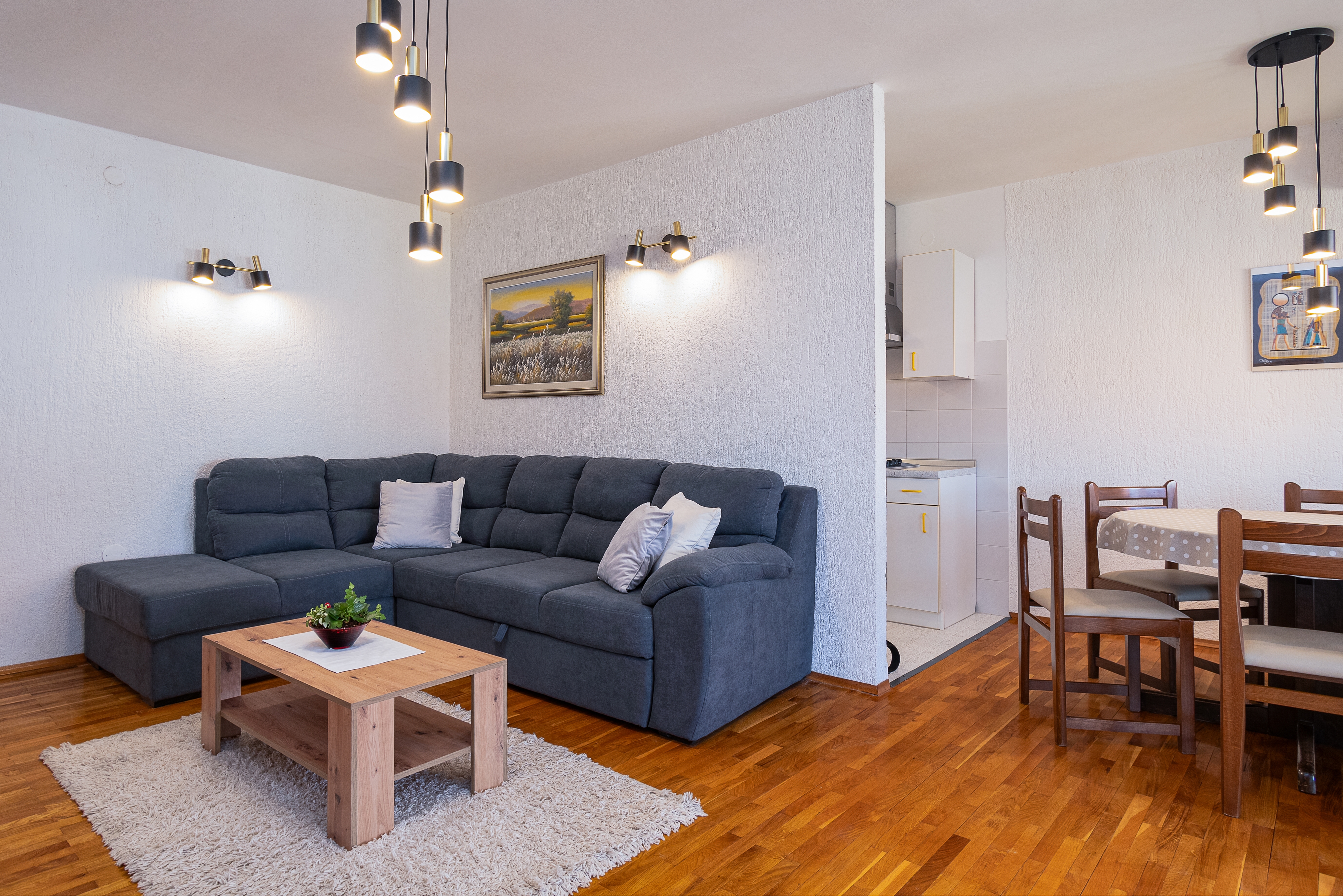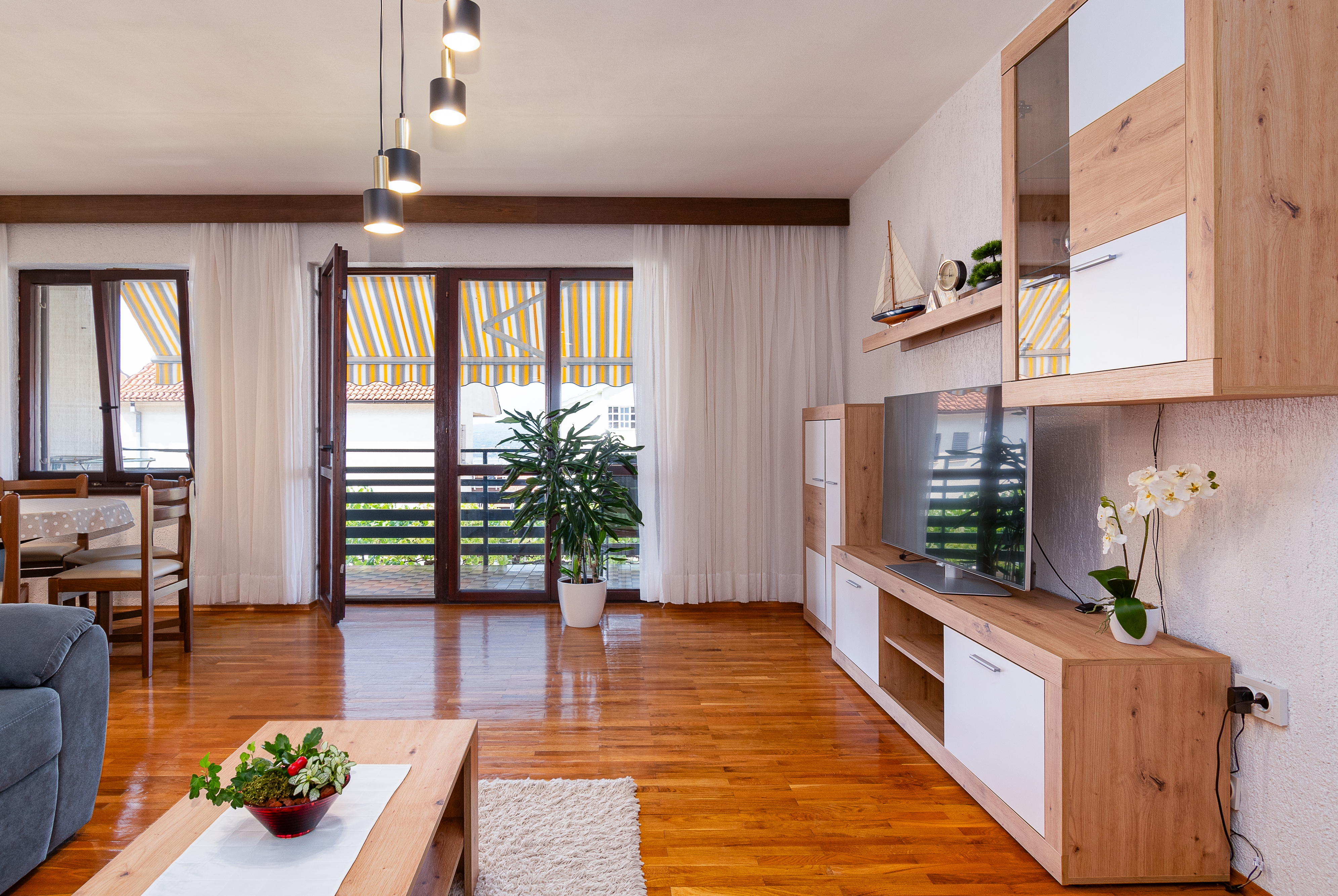 Apartment can accommodate 6 guests. Beds are situated in 3 sleeping rooms, within 78m2. Guests can use a private terrace to enjoy the warm summer evenings. The apartment offers the sea view. Food can be prepared using barbecue which is shared with other guests too. INCLUDED IN THE PRICE: tourist tax, final cleaning, air-conditioning, parking, internet, iron, ironing board, hairdryer. OBLIGATORY ADDITIONAL COSTS: short stay fee (surcharge depending on a number of booked nights: 30% - 1, 20% - 2, 10% - 3). OPTIONAL ADDITIONAL COSTS: laundry (€5.00 washing). The availability of additional services for your chosen dates of stay, as well as their prices (if none are listed) must be checked ahead of time. Any additional services not shown in the price calculation are payable directly to the property owner and only if used by the visitor.