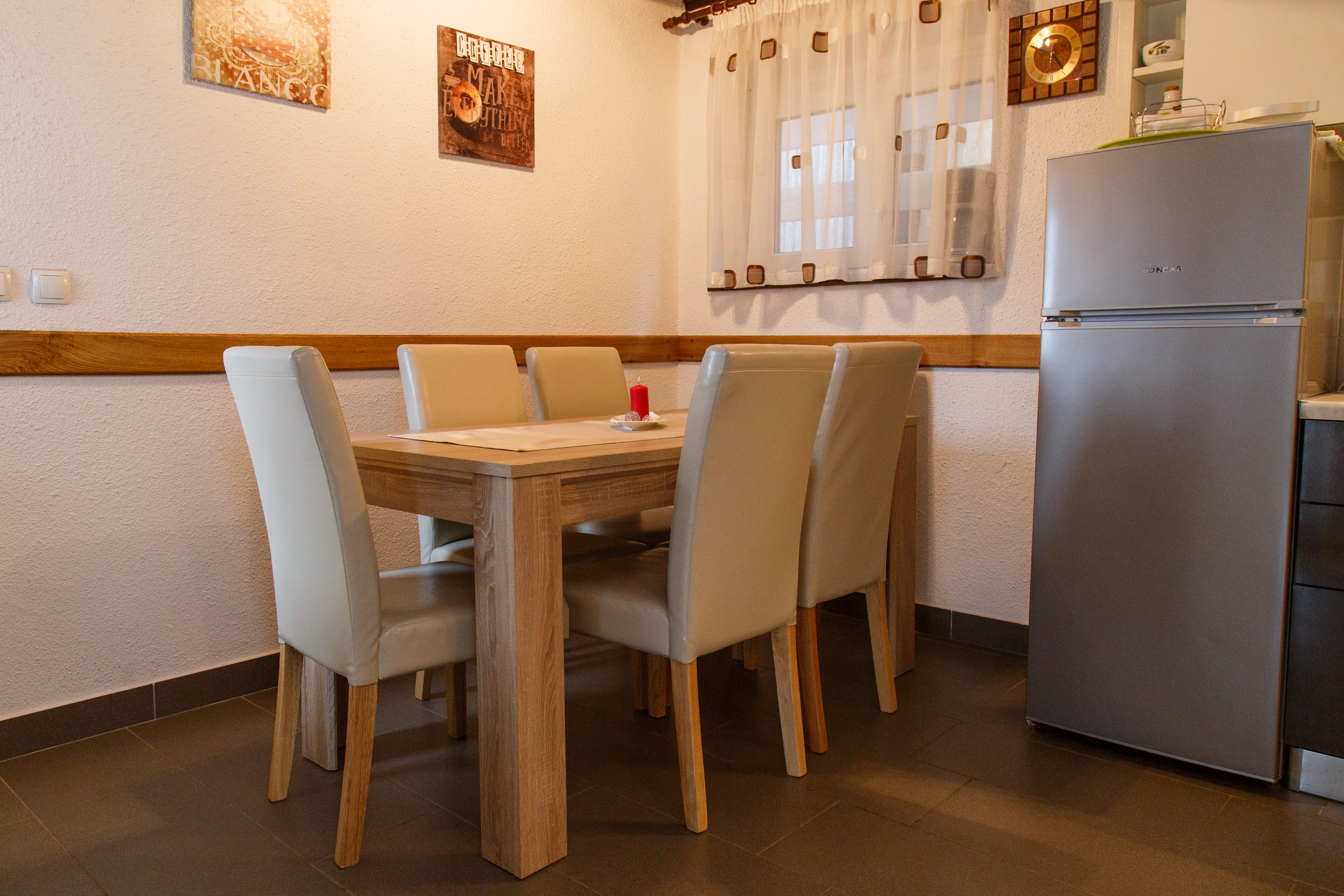 House can accommodate 6 guests. Beds are situated in 2 sleeping rooms, but also in the living room, within 89m2. Guests can use a private terrace to enjoy the warm summer evenings. For full enjoyment and relaxation there is a private barbecue for this accommodation guests only. This accommodation unit welcomes pets at an additional charge. INCLUDED IN THE PRICE: tourist tax, final cleaning, air-conditioning, parking, internet, baby cot, additional bed, iron, ironing board, hairdryer. OBLIGATORY ADDITIONAL COSTS: short stay fee (surcharge depending on a number of booked nights: 30% - 1, 20% - 2, 10% - 3). OPTIONAL ADDITIONAL COSTS: pets (€7.00 per night). The availability of additional services for your chosen dates of stay, as well as their prices (if none are listed) must be checked ahead of time. Any additional services not shown in the price calculation are payable directly to the property owner and only if used by the visitor.