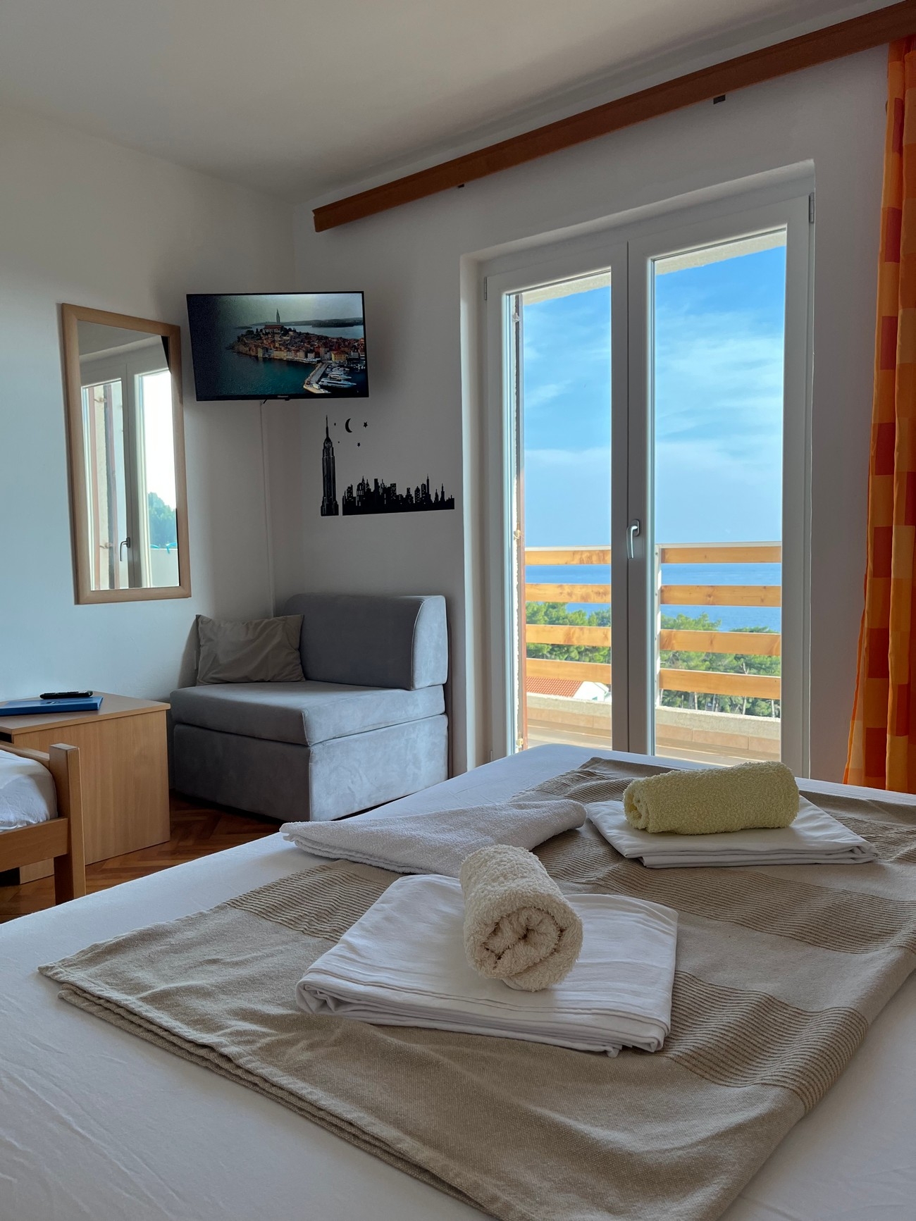 Apartment can accommodate 3 guests. Beds are situated in 1 sleeping rooms, within 35m2. Guests can use a private terrace to enjoy the warm summer evenings. For full enjoyment and relaxation there is a private barbecue for this accommodation guests only. This accommodation unit welcomes pets at an additional charge. INCLUDED IN THE PRICE: tourist tax, final cleaning, air-conditioning, parking, internet, hairdryer. OPTIONAL ADDITIONAL COSTS: pets (€10.00 per night). The availability of additional services for your chosen dates of stay, as well as their prices (if none are listed) must be checked ahead of time. Any additional services not shown in the price calculation are payable directly to the property owner and only if used by the visitor.