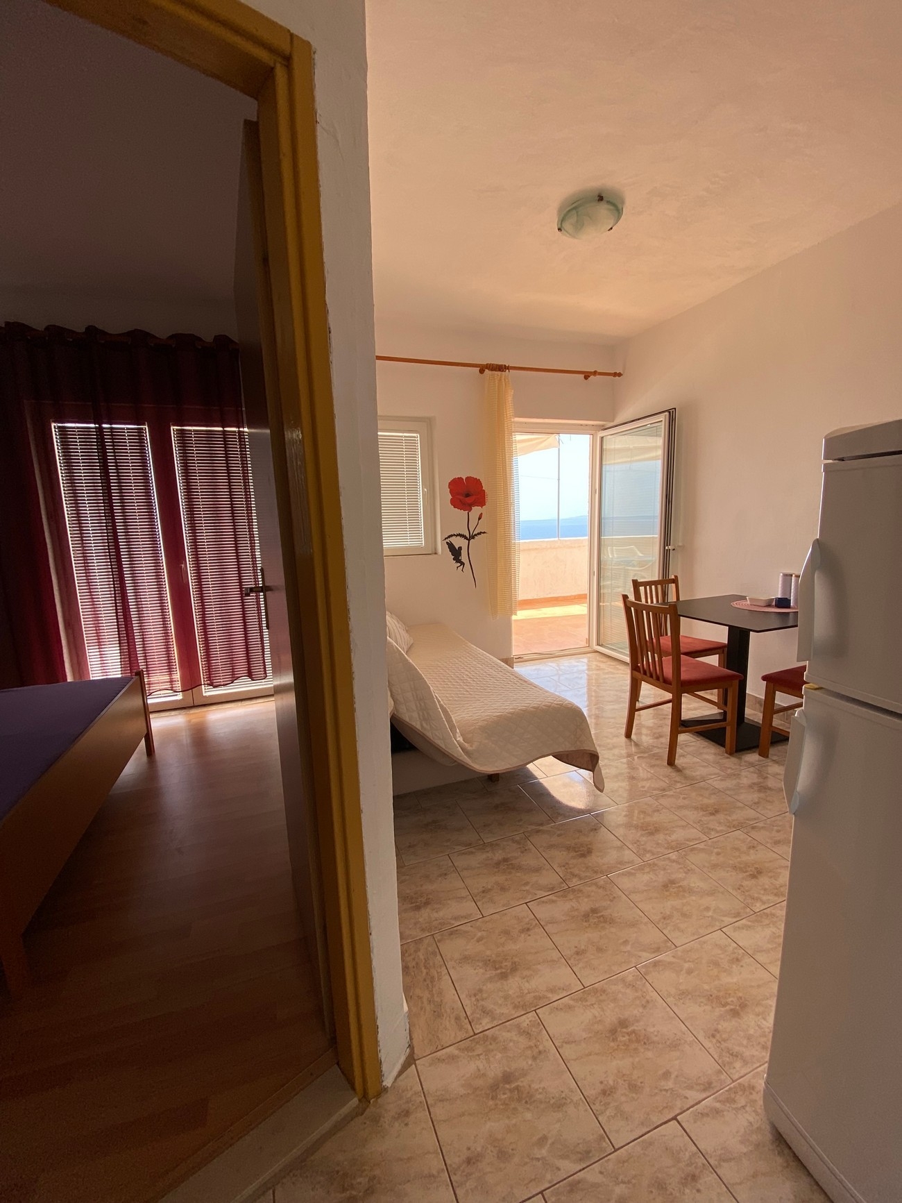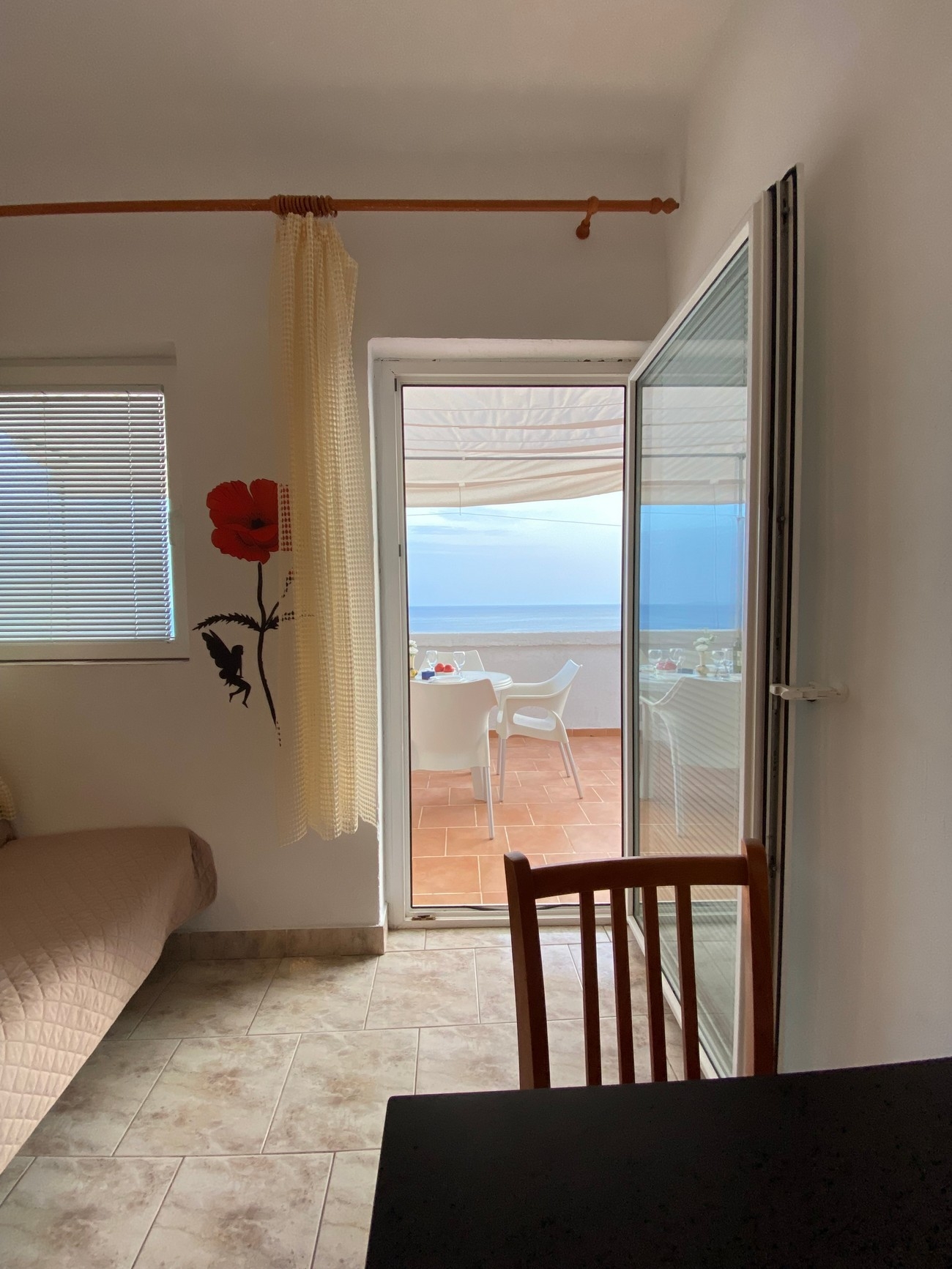 Apartment can accommodate 5 guests. Beds are situated in 2 sleeping rooms, but also in the living room, within 60m2. Guests can use a private terrace to enjoy the warm summer evenings. The apartment offers the sea view. This accommodation unit welcomes pets at an additional charge. INCLUDED IN THE PRICE: tourist tax, final cleaning, air-conditioning, parking, internet, hairdryer. OPTIONAL ADDITIONAL COSTS: pets (€10.00 per night). The availability of additional services for your chosen dates of stay, as well as their prices (if none are listed) must be checked ahead of time. Any additional services not shown in the price calculation are payable directly to the property owner and only if used by the visitor.