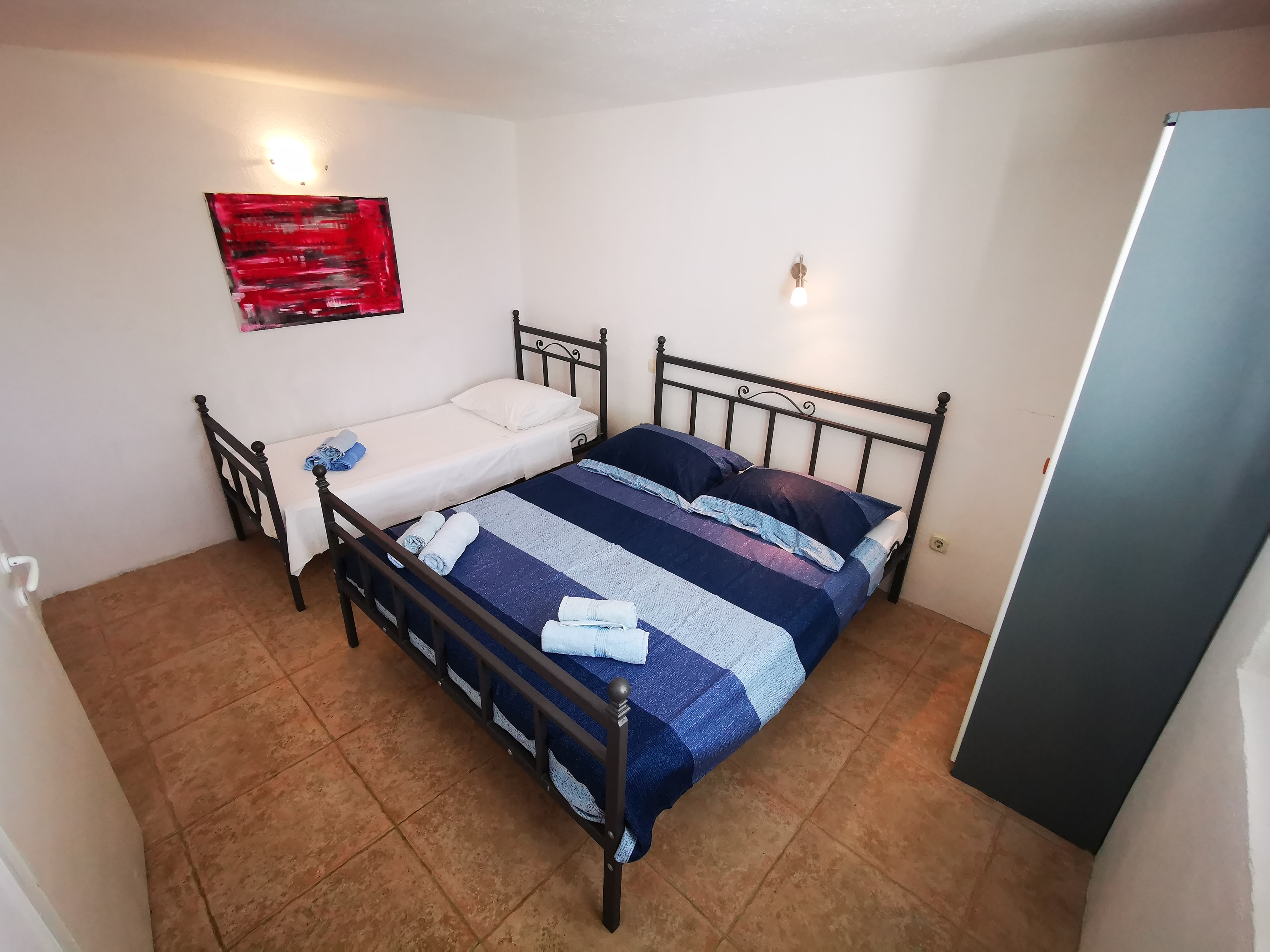 Apartment can accommodate 7 guests. Beds are situated in 2 sleeping rooms, but also in the living room, within 47m2. Guests can use a private terrace to enjoy the warm summer evenings. Food can be prepared using barbecue which is shared with other guests too. This accommodation unit welcomes pets at no additional costs. INCLUDED IN THE PRICE: tourist tax, final cleaning, parking, internet, pets, hairdryer. OPTIONAL ADDITIONAL COSTS: air-conditioning (€5.00 per night), additional bed (€20.00 per night). The availability of additional services for your chosen dates of stay, as well as their prices (if none are listed) must be checked ahead of time. Any additional services not shown in the price calculation are payable directly to the property owner and only if used by the visitor.