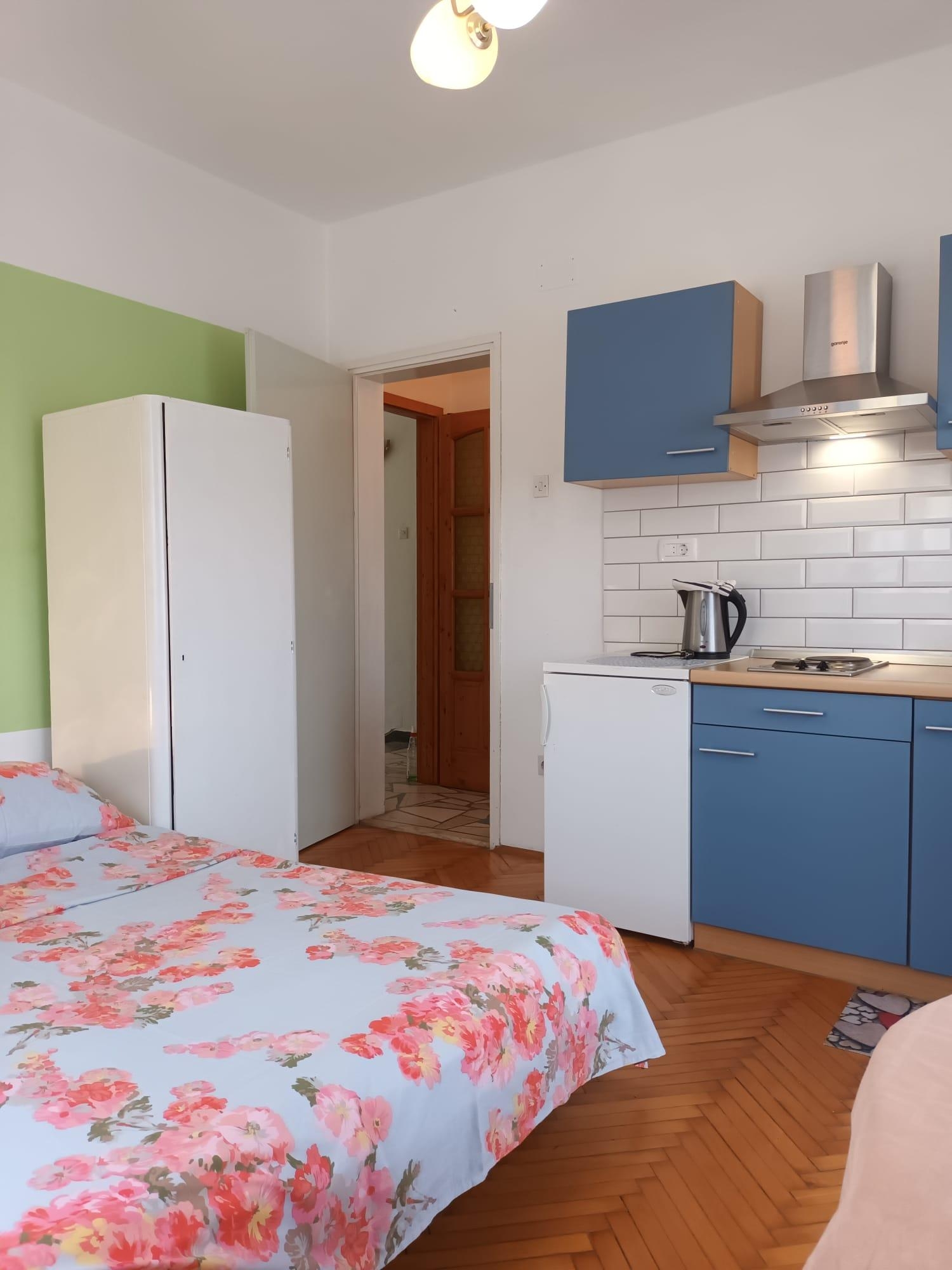 Studio flat can accommodate 2 guests. Beds are situated in 1 sleeping rooms, within 18m2. Guests can use a private balcony to enjoy the warm summer evenings. Food can be prepared using barbecue which is shared with other guests too. This accommodation unit welcomes pets at an additional charge. INCLUDED IN THE PRICE: tourist tax, final cleaning, parking, internet, iron, ironing board, hairdryer. OBLIGATORY ADDITIONAL COSTS: short stay fee (surcharge depending on a number of booked nights: 30% - 1, 20% - 2, 10% - 3). OPTIONAL ADDITIONAL COSTS: air-conditioning (€5.00 per night), laundry (€5.00 washing), pets (€5.00 per night). The availability of additional services for your chosen dates of stay, as well as their prices (if none are listed) must be checked ahead of time. Any additional services not shown in the price calculation are payable directly to the property owner and only if used by the visitor.