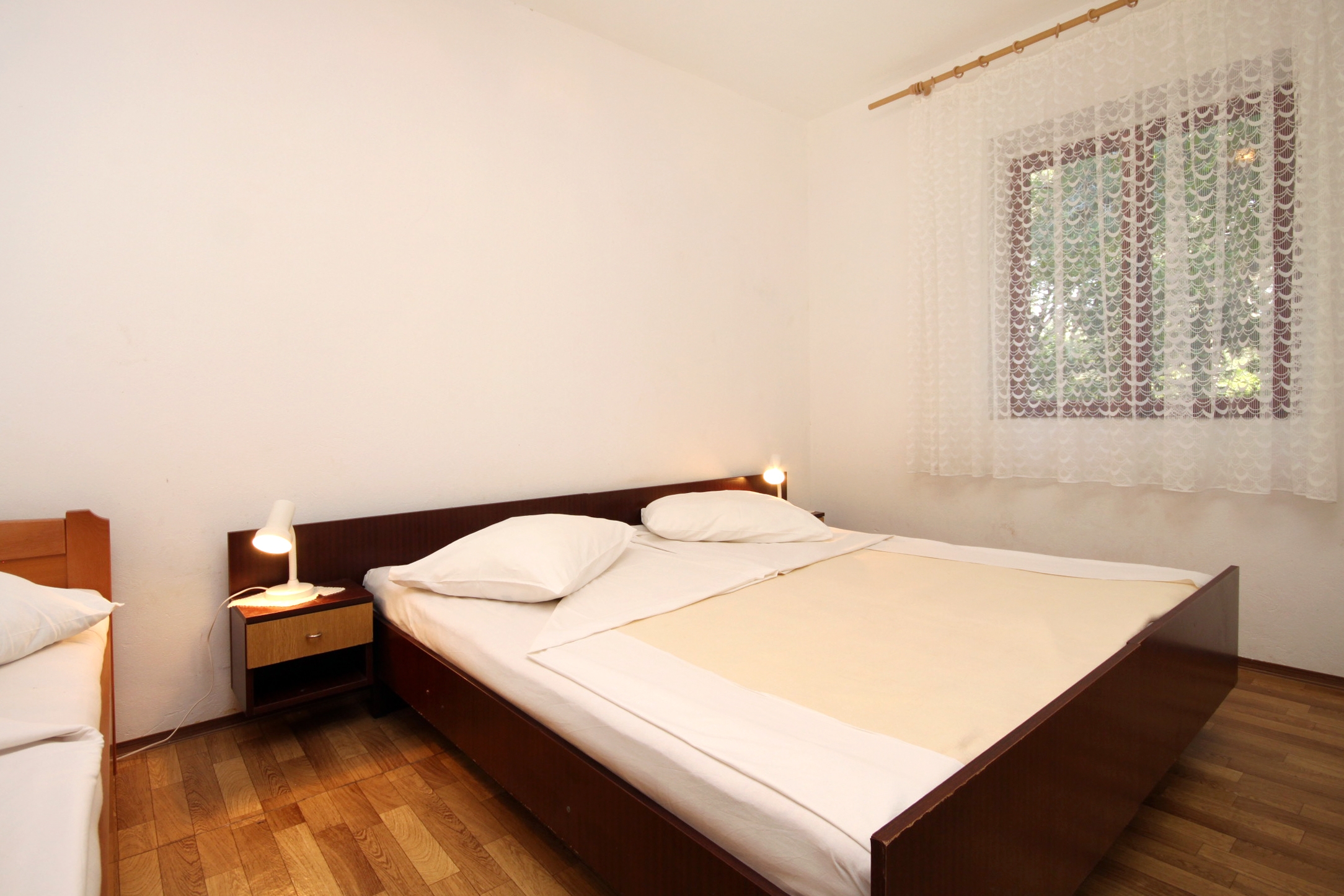 Apartment can accommodate 5 guests. Beds are situated in 2 sleeping rooms, within 31m2. Guests can use a private terrace to enjoy the warm summer evenings. Food can be prepared using barbecue which is shared with other guests too. This accommodation unit welcomes pets at an additional charge. INCLUDED IN THE PRICE: tourist tax, final cleaning, air-conditioning, parking, internet, boat mooring. OBLIGATORY ADDITIONAL COSTS: short stay fee (surcharge depending on a number of booked nights: 30% - 1, 20% - 2, 10% - 3). OPTIONAL ADDITIONAL COSTS: pets (€10.00 per night). The availability of additional services for your chosen dates of stay, as well as their prices (if none are listed) must be checked ahead of time. Any additional services not shown in the price calculation are payable directly to the property owner and only if used by the visitor. Discounts to the base price: free day 14=13 (for reservations of 14 or more days you get one free day for the stay until 31122026).