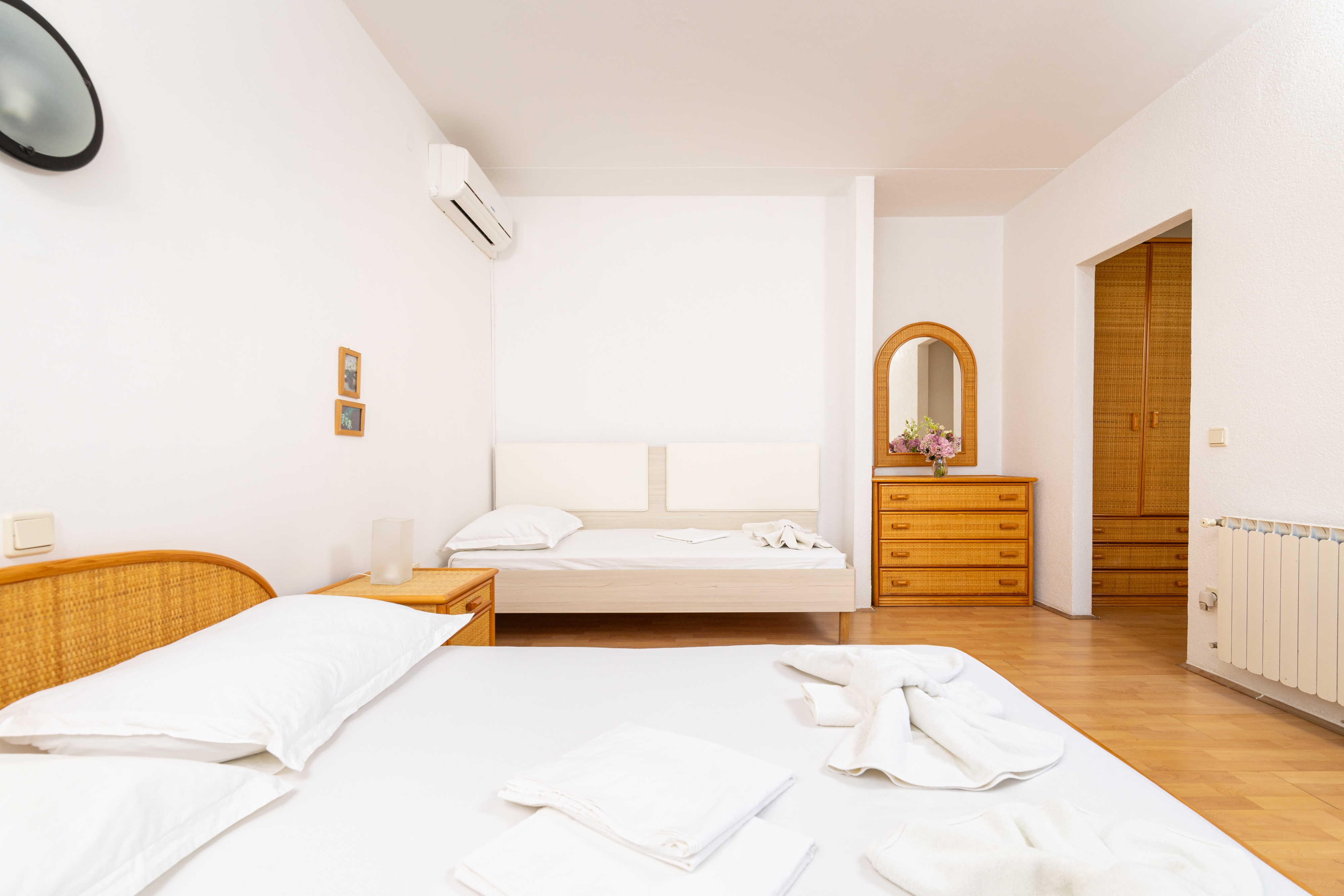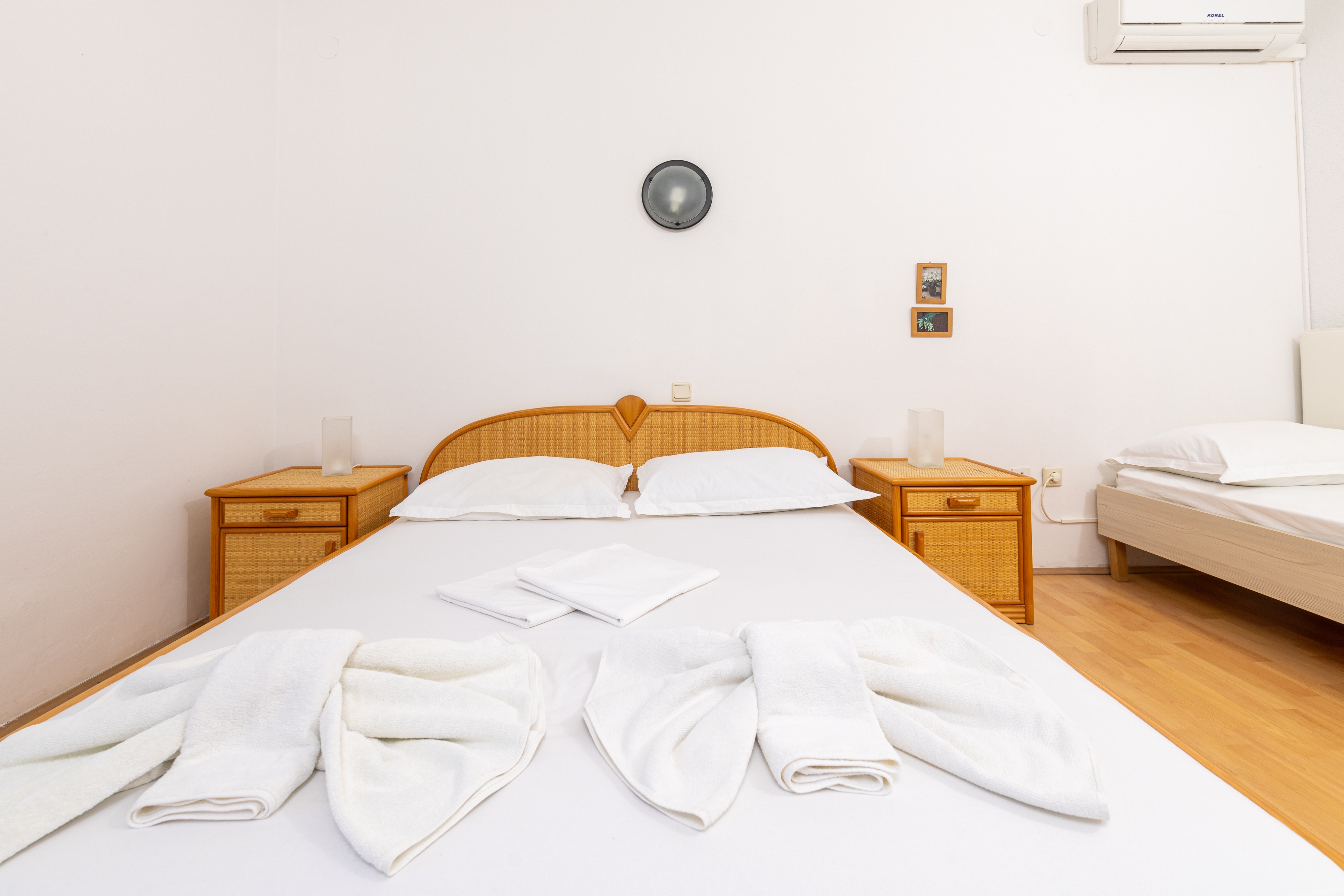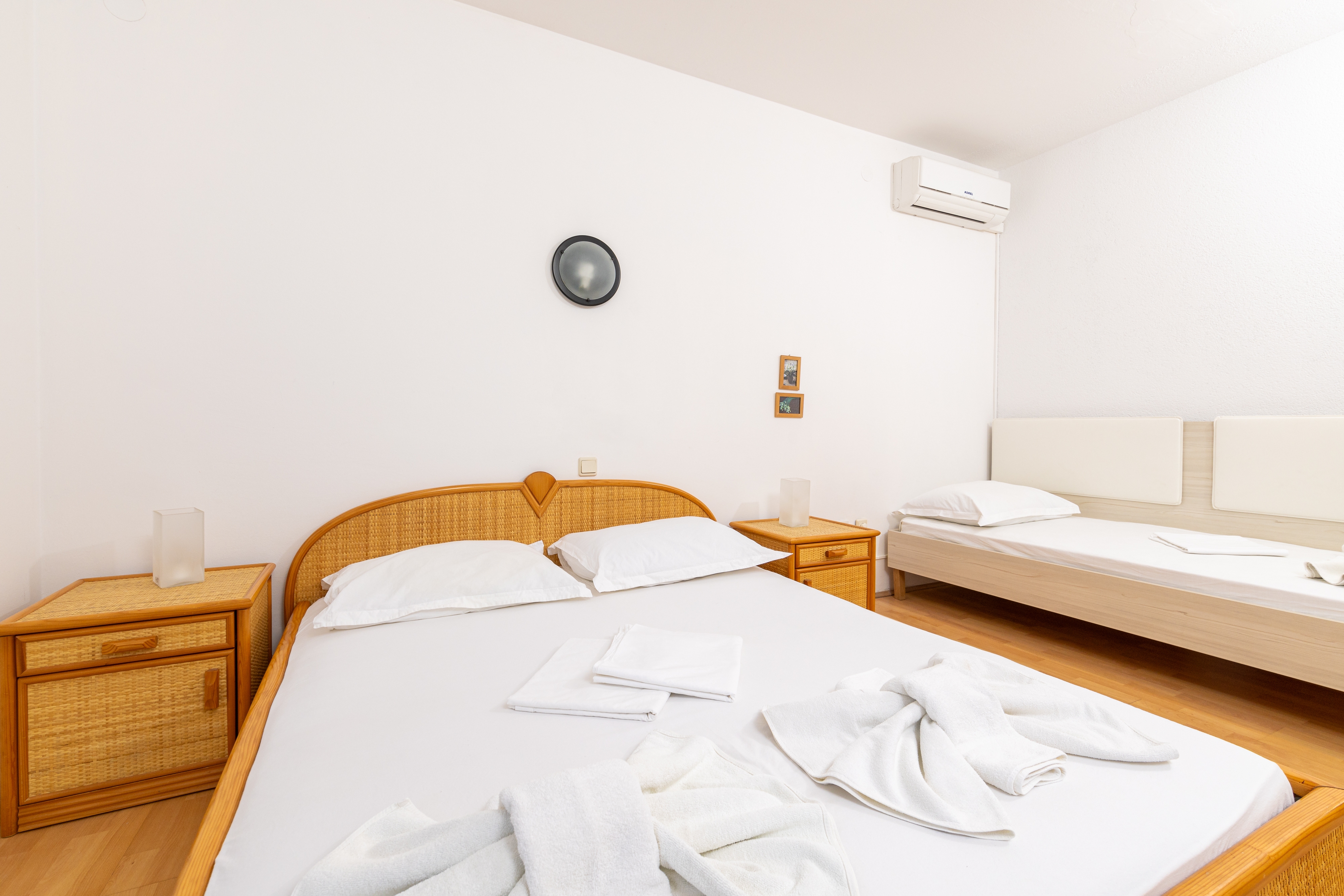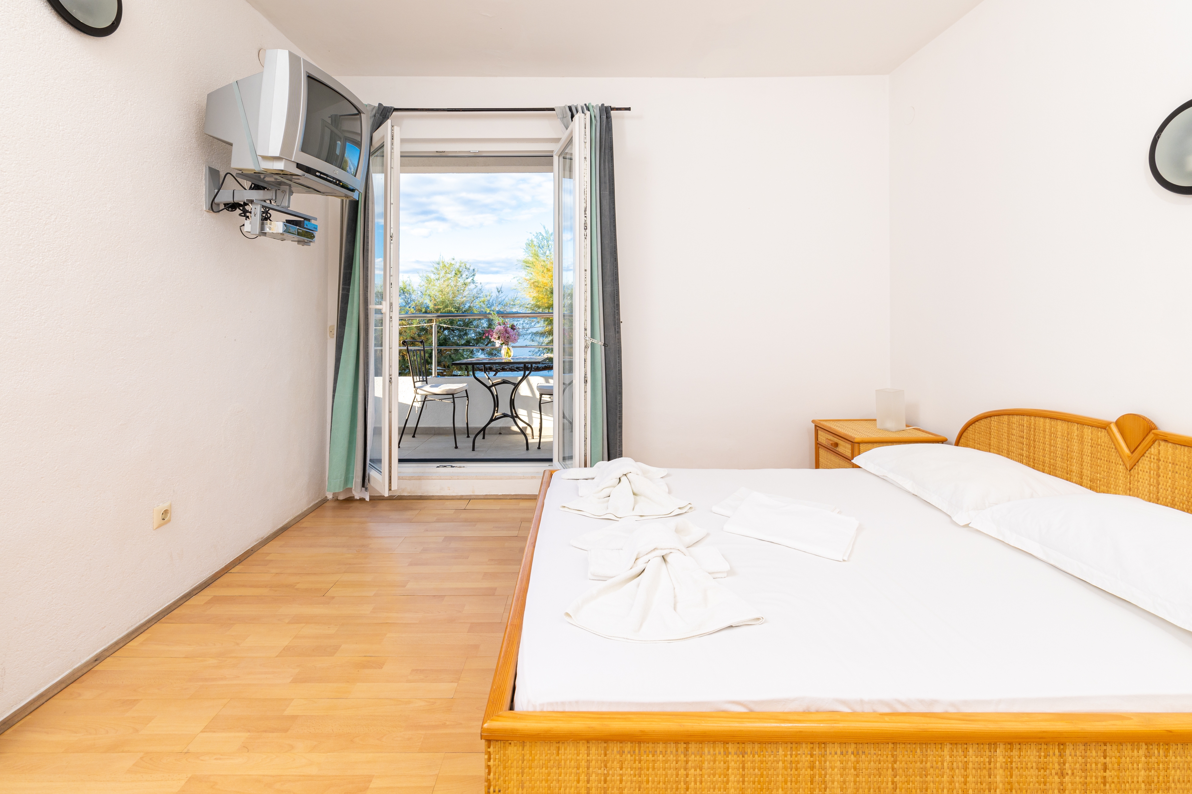 Room can accommodate 3 guests. Beds are situated in 1 sleeping rooms, within 23m2. Guests can use a private balcony to enjoy the warm summer evenings. The room offers the sea view. This accommodation unit welcomes pets at an additional charge. Reserved accommodation unit is a room with its own bathroom and there is no usage of kitchen. INCLUDED IN THE PRICE: half-board, final cleaning, air-conditioning, parking, internet, baby cot, hairdryer. OBLIGATORY ADDITIONAL COSTS: tourist tax (adults €0.93 - €1.80 nightperson, discount for children aged 12 - 17). OPTIONAL ADDITIONAL COSTS: boat (€65.00 per night), pets (€13.00 per night). The availability of additional services for your chosen dates of stay, as well as their prices (if none are listed) must be checked ahead of time. Any additional services not shown in the price calculation are payable directly to the property owner and only if used by the visitor.