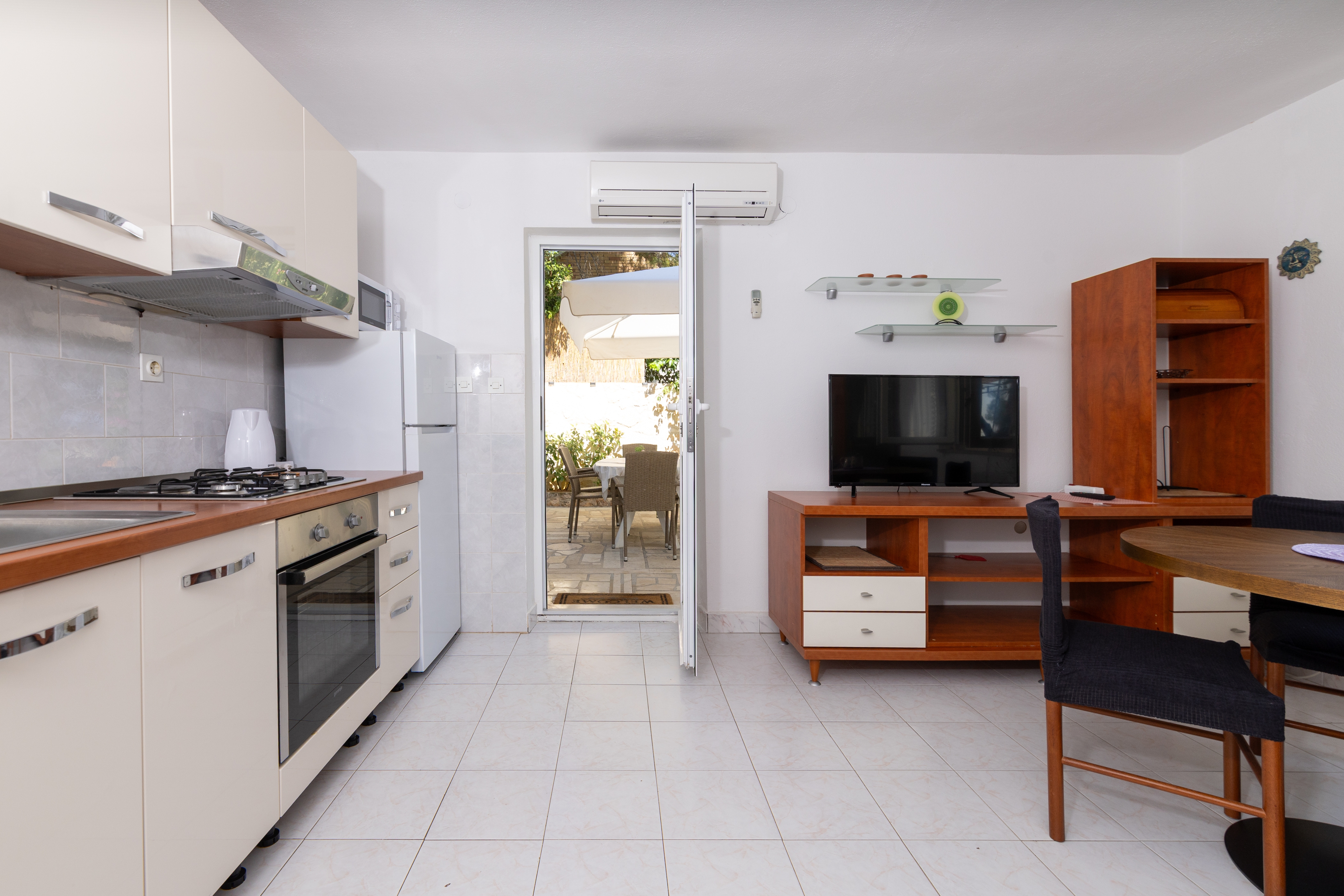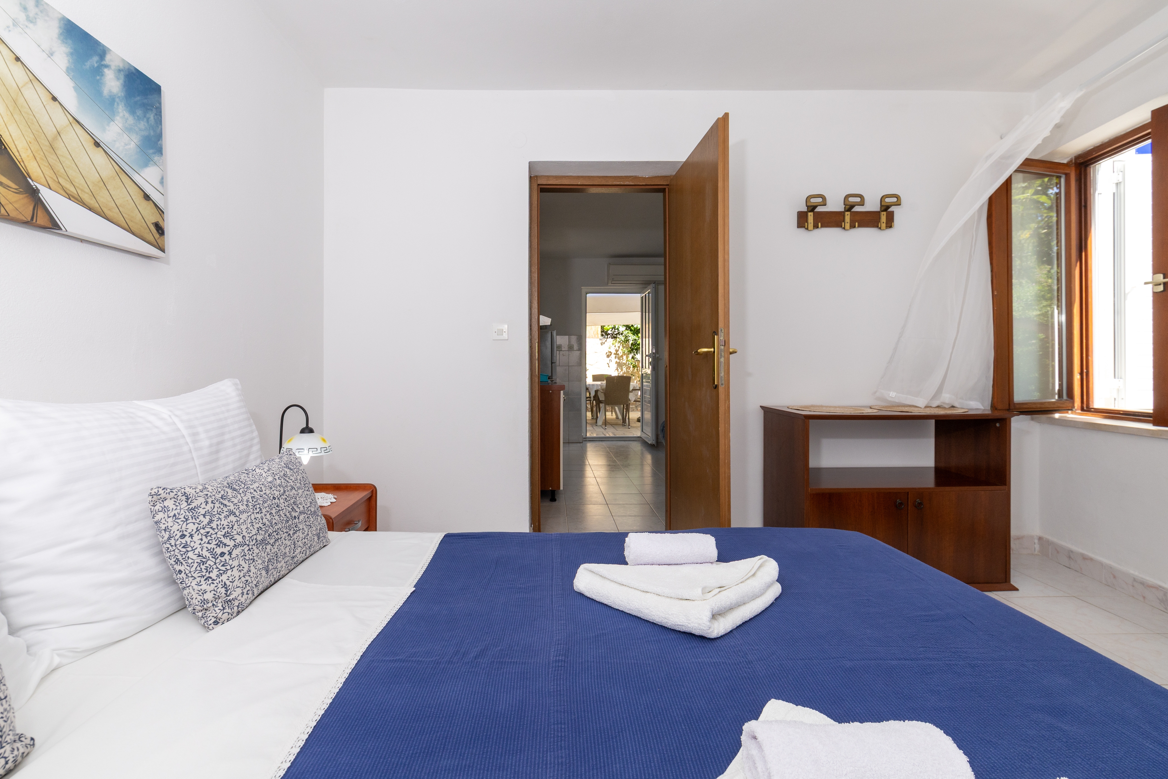 Apartment can accommodate 5 guests. Beds are situated in 2 sleeping rooms, but also in the dining room, within 43m2. Guests can use a private terrace to enjoy the warm summer evenings. The apartment offers the sea view. For full enjoyment and relaxation there is a private barbecue for this accommodation guests only. INCLUDED IN THE PRICE: tourist tax, final cleaning, air-conditioning, parking, internet, laundry, baby cot, iron, ironing board, hairdryer. OBLIGATORY ADDITIONAL COSTS: short stay fee (surcharge depending on a number of booked nights: 30% - 1, 20% - 2, 10% - 3). The availability of additional services for your chosen dates of stay, as well as their prices (if none are listed) must be checked ahead of time. Any additional services not shown in the price calculation are payable directly to the property owner and only if used by the visitor. Discounts to the base price: free day 21=19 (for reservations of 21 or more days you get 2 free days for the stay until 31122026).
