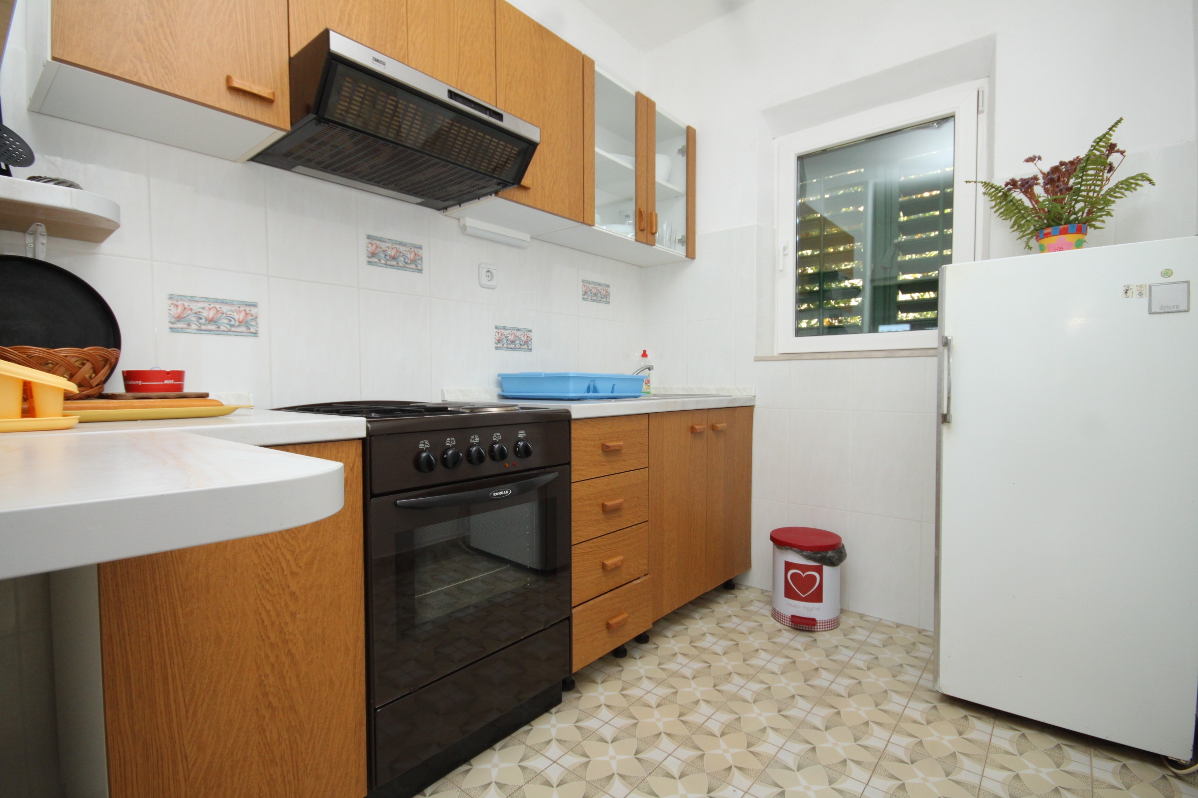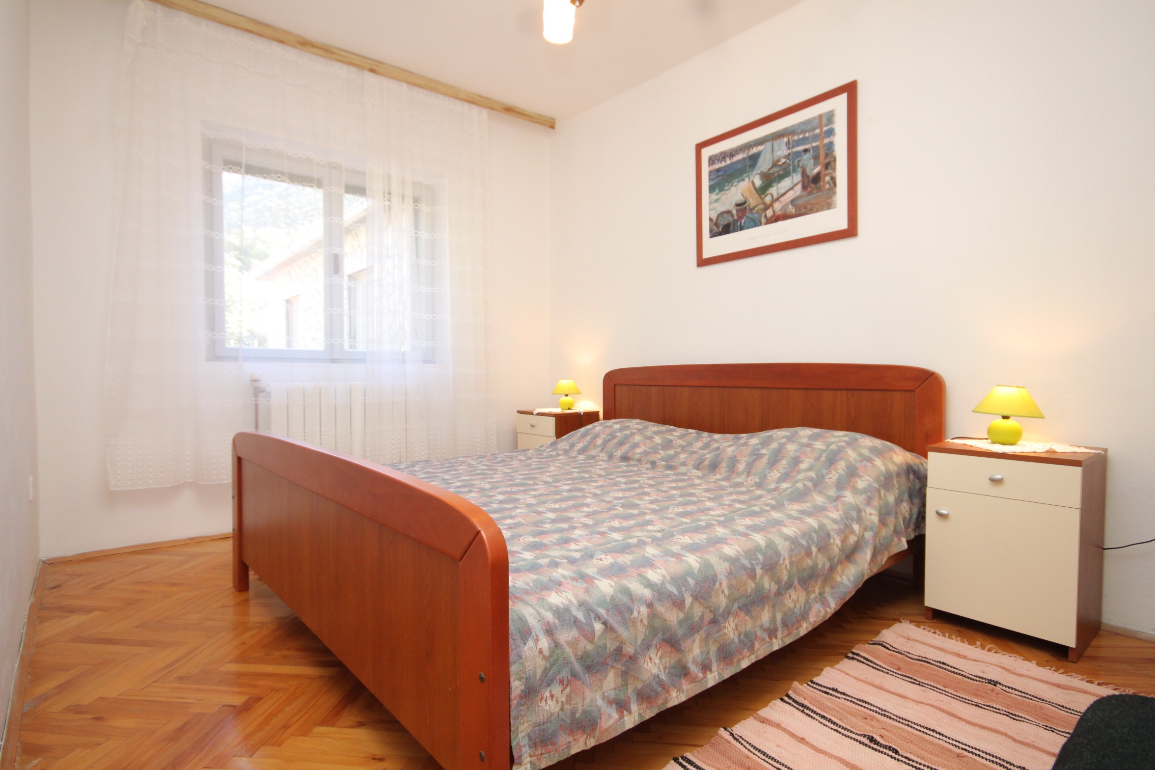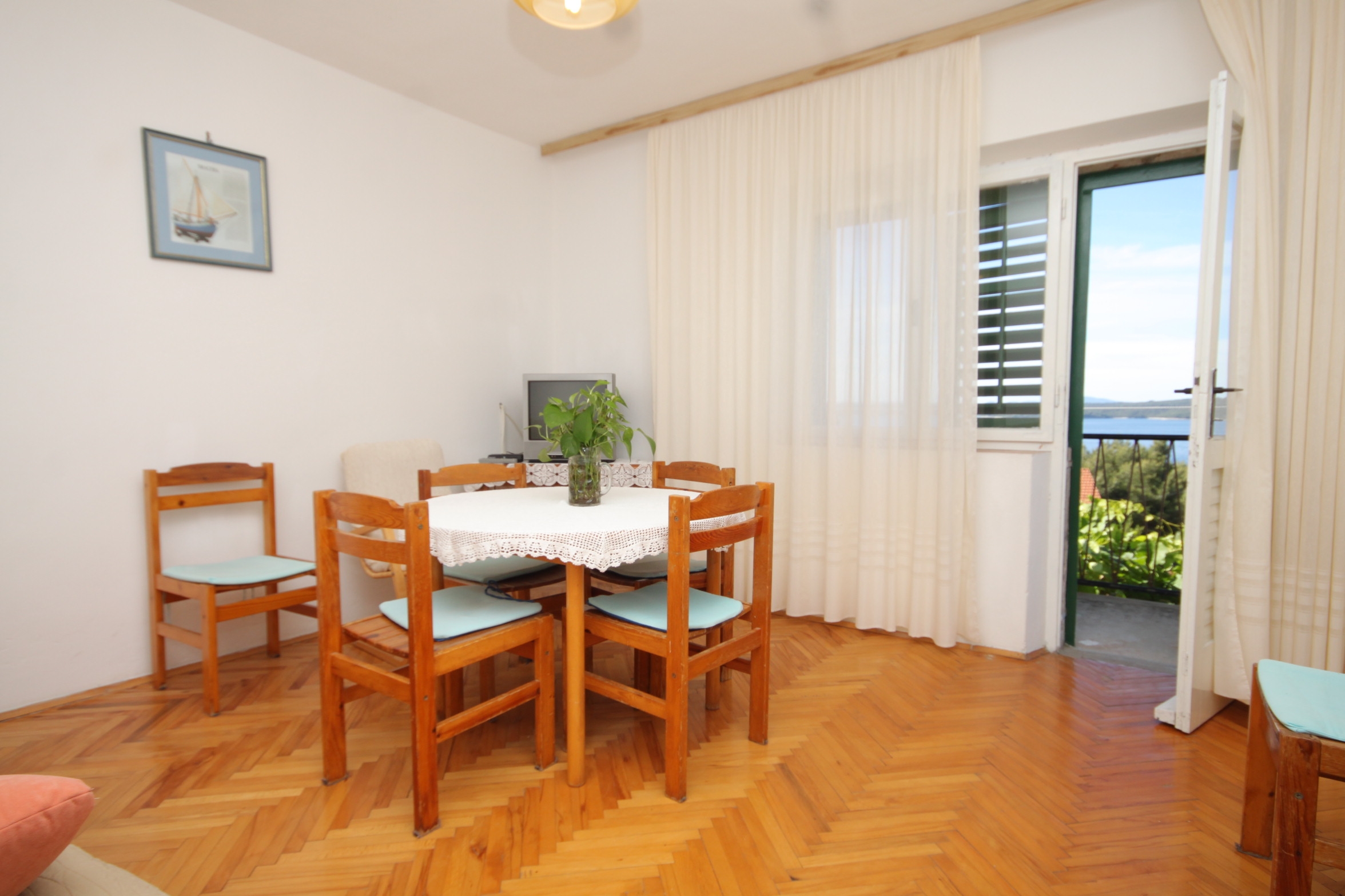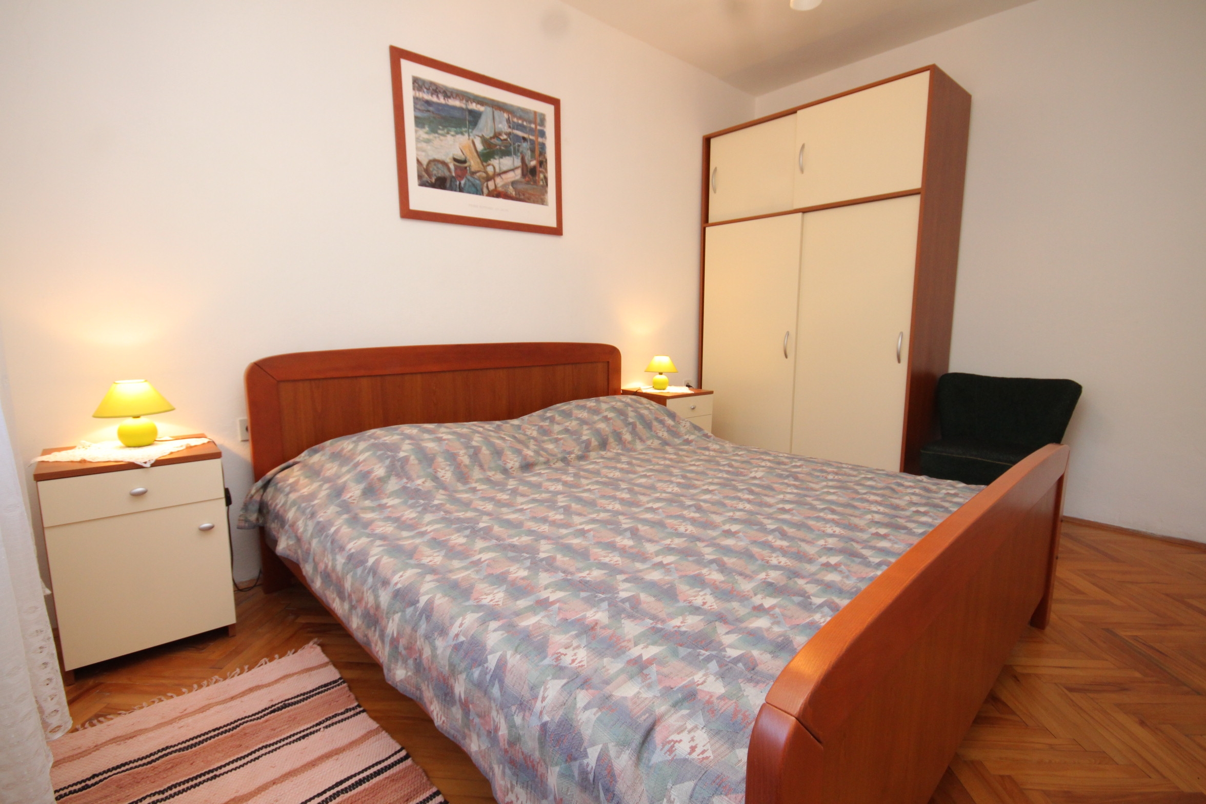 Apartment can accommodate 5 guests. Beds are situated in 2 sleeping rooms, but also in the living room, within 58m2. Guests can use a private terrace to enjoy the warm summer evenings. The apartment offers the sea view. Food can be prepared using barbecue which is shared with other guests too. This accommodation unit welcomes pets at an additional charge. INCLUDED IN THE PRICE: tourist tax, final cleaning, air-conditioning, parking, internet. OBLIGATORY ADDITIONAL COSTS: short stay fee (surcharge depending on a number of booked nights: 30% - 1, 20% - 2, 10% - 3). OPTIONAL ADDITIONAL COSTS: pets (€10.00 per night). The availability of additional services for your chosen dates of stay, as well as their prices (if none are listed) must be checked ahead of time. Any additional services not shown in the price calculation are payable directly to the property owner and only if used by the visitor.