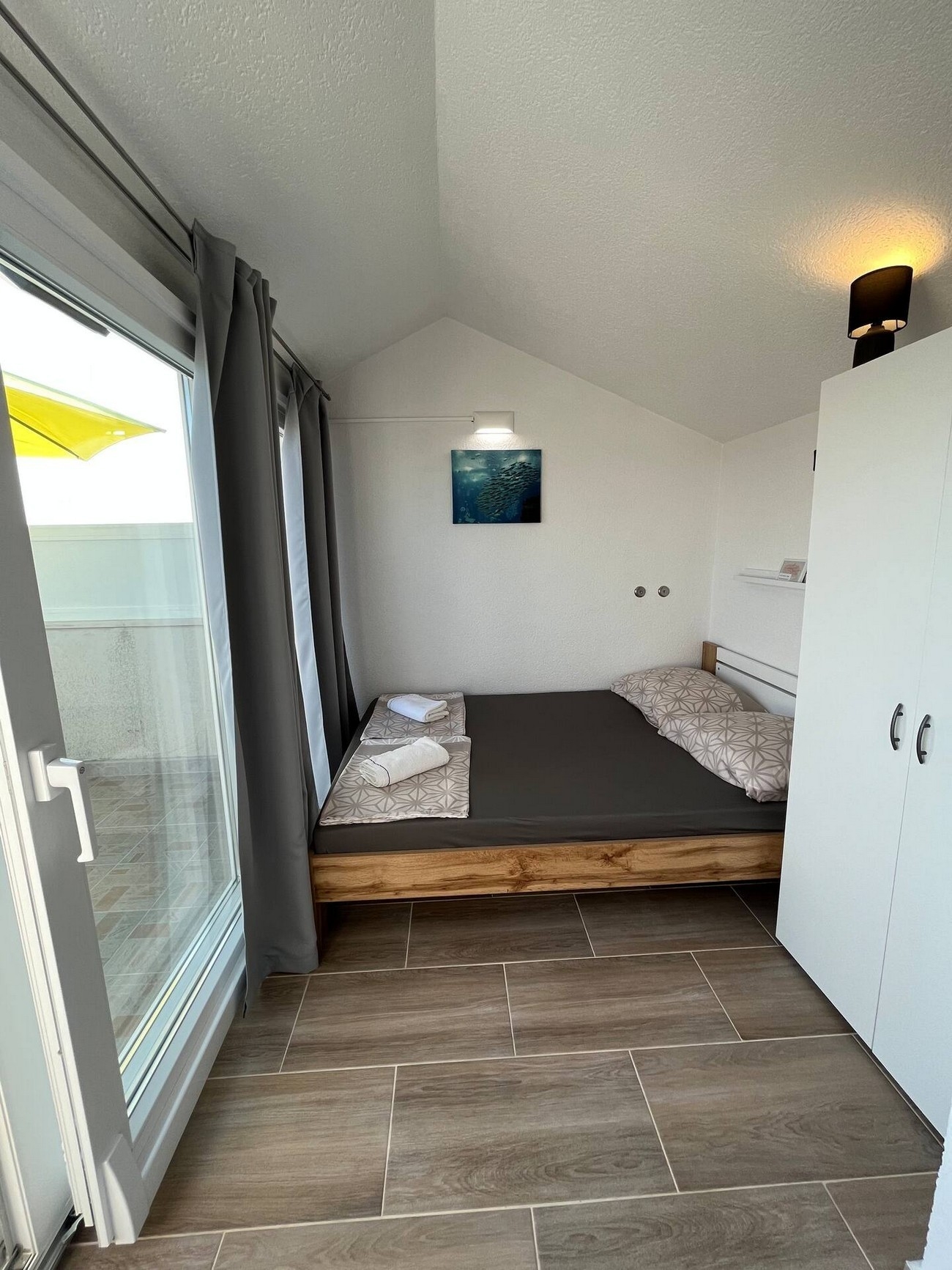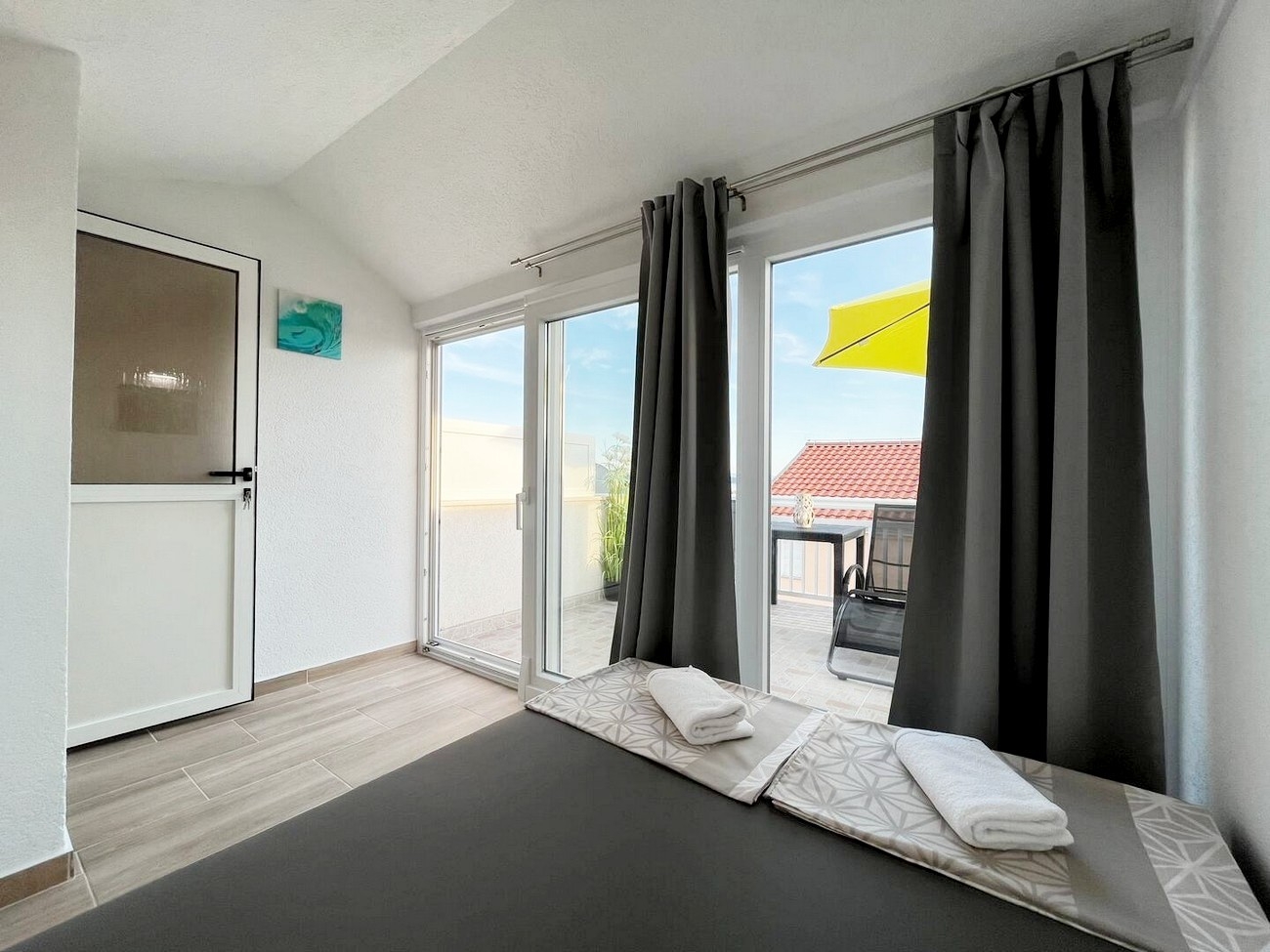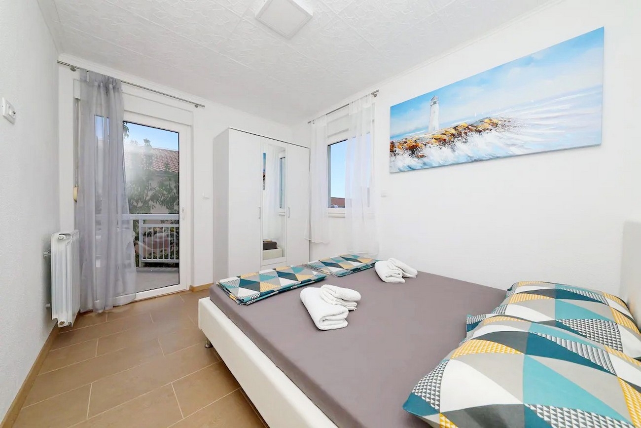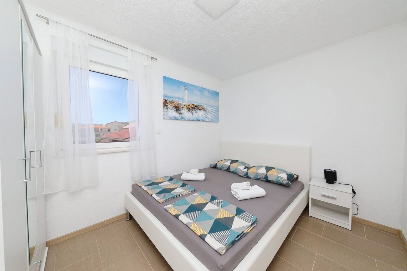 Apartment can accommodate 6 guests. Beds are situated in 2 sleeping rooms, but also in the living room, within 53m2. Guests can use a private terrace to enjoy the warm summer evenings. The apartment offers the sea view. For full enjoyment and relaxation there is a private barbecue for this accommodation guests only. INCLUDED IN THE PRICE: tourist tax, final cleaning, air-conditioning, parking, internet, iron, ironing board, hairdryer, portable barbecue. OBLIGATORY ADDITIONAL COSTS: short stay fee (surcharge depending on a number of booked nights: 30% - 1, 20% - 2, 10% - 3). The availability of additional services for your chosen dates of stay, as well as their prices (if none are listed) must be checked ahead of time. Any additional services not shown in the price calculation are payable directly to the property owner and only if used by the visitor.