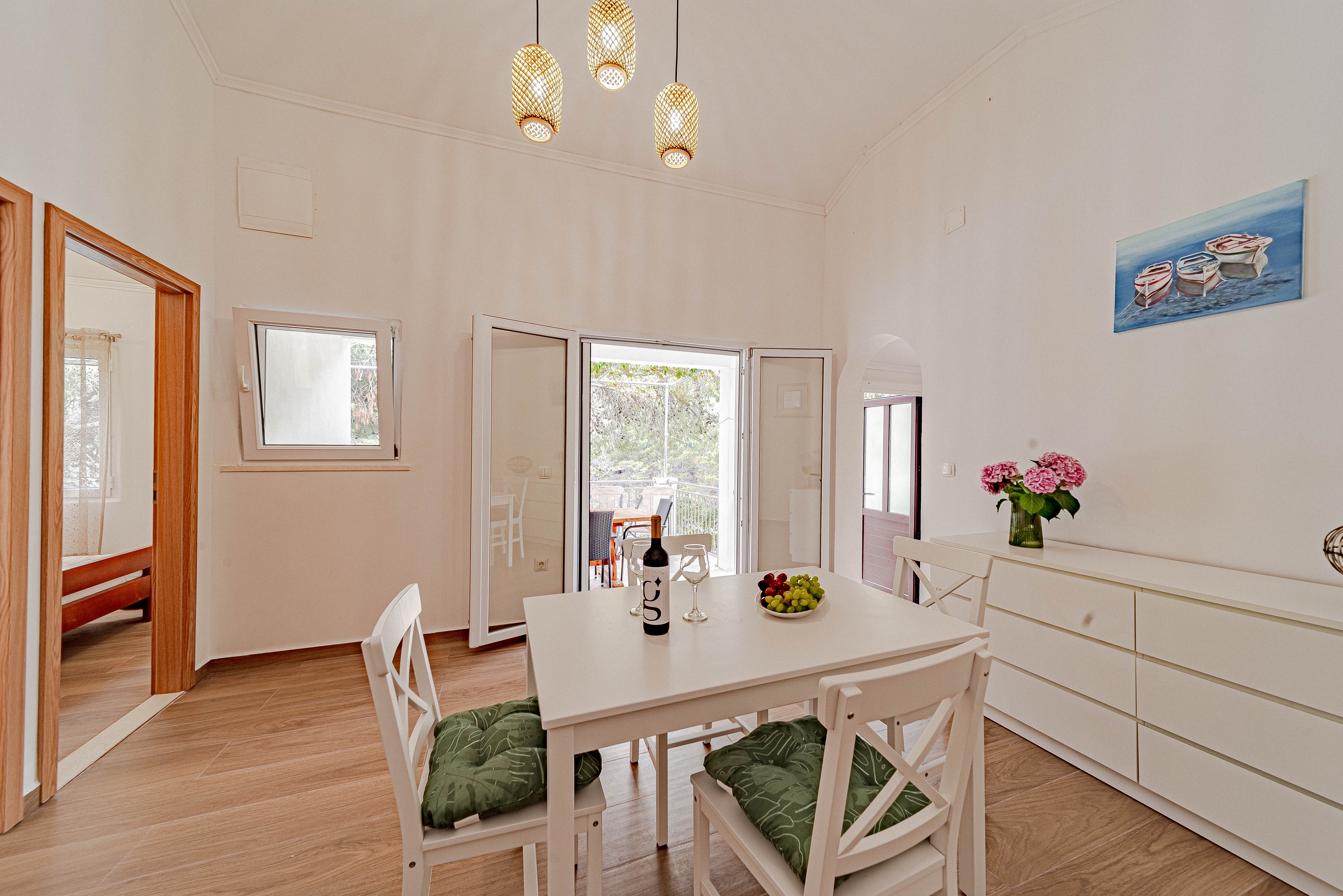 Apartment can accommodate 4 guests. Beds are situated in 2 sleeping rooms, within 37m2. Guests can use a private terrace to enjoy the warm summer evenings. The apartment offers the sea view. Food can be prepared using barbecue which is shared with other guests too. INCLUDED IN THE PRICE: tourist tax, final cleaning, parking, boat mooring, additional bed, portable barbecue, sunshade, sunchairs. OBLIGATORY ADDITIONAL COSTS: short stay fee (surcharge depending on a number of booked nights: 30% - 1, 20% - 2, 10% - 3). The availability of additional services for your chosen dates of stay, as well as their prices (if none are listed) must be checked ahead of time. Any additional services not shown in the price calculation are payable directly to the property owner and only if used by the visitor.