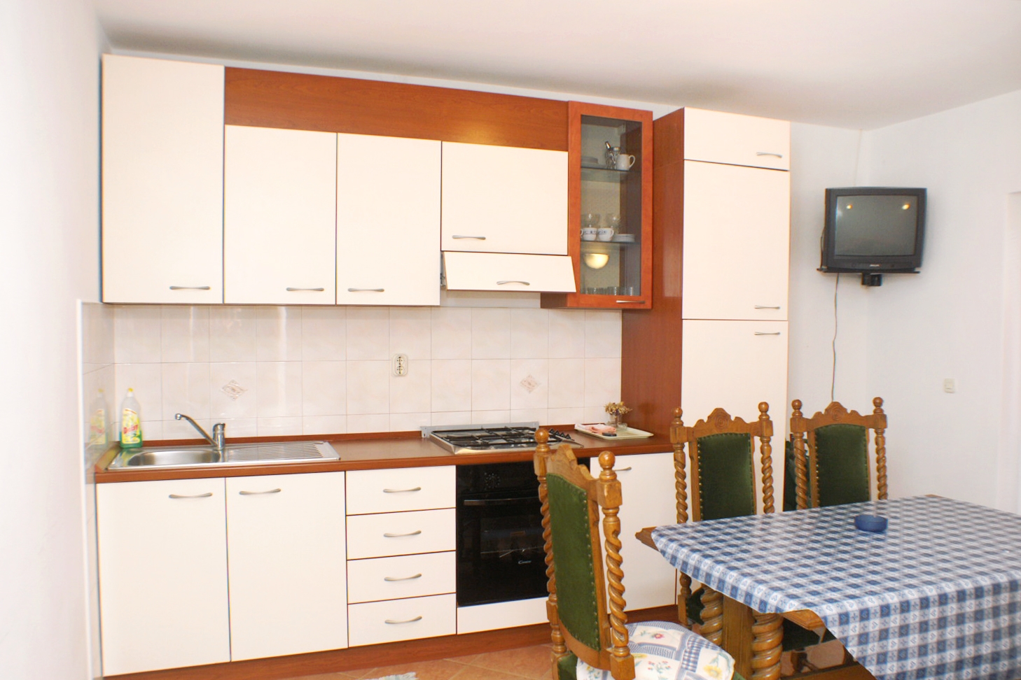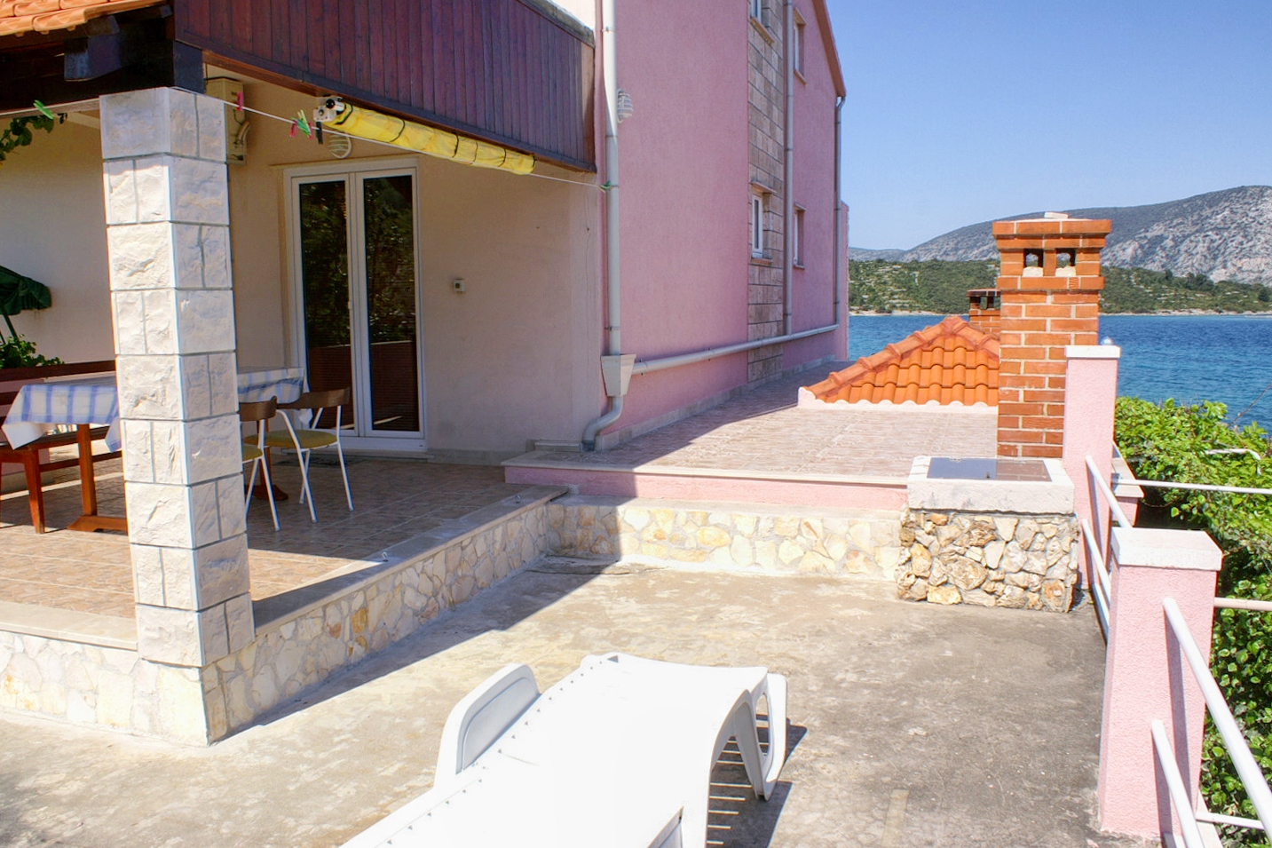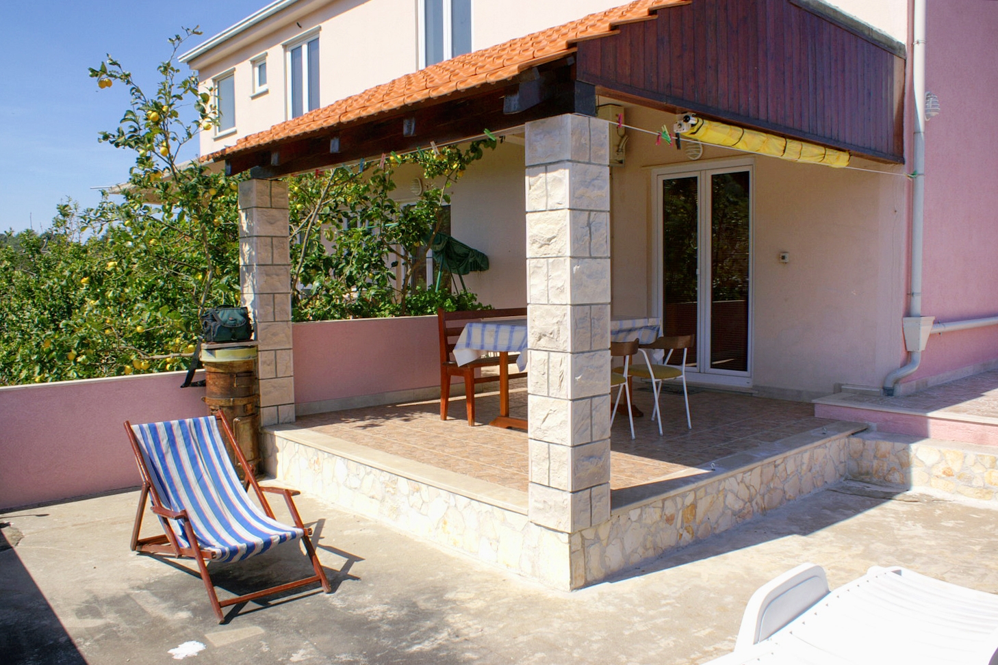 Apartment can accommodate 6 guests. Beds are situated in 2 sleeping rooms, but also in the dining room, within 41m2. Guests can use a private terrace to enjoy the warm summer evenings. The apartment offers the sea view. Food can be prepared using barbecue which is shared with other guests too. INCLUDED IN THE PRICE: tourist tax, final cleaning, air-conditioning, parking, internet, laundry, boat mooring, iron, ironing board, hairdryer, sunshade, sunchairs. OBLIGATORY ADDITIONAL COSTS: short stay fee (surcharge depending on a number of booked nights: 30% - 1, 20% - 2, 10% - 3). The availability of additional services for your chosen dates of stay, as well as their prices (if none are listed) must be checked ahead of time. Any additional services not shown in the price calculation are payable directly to the property owner and only if used by the visitor.