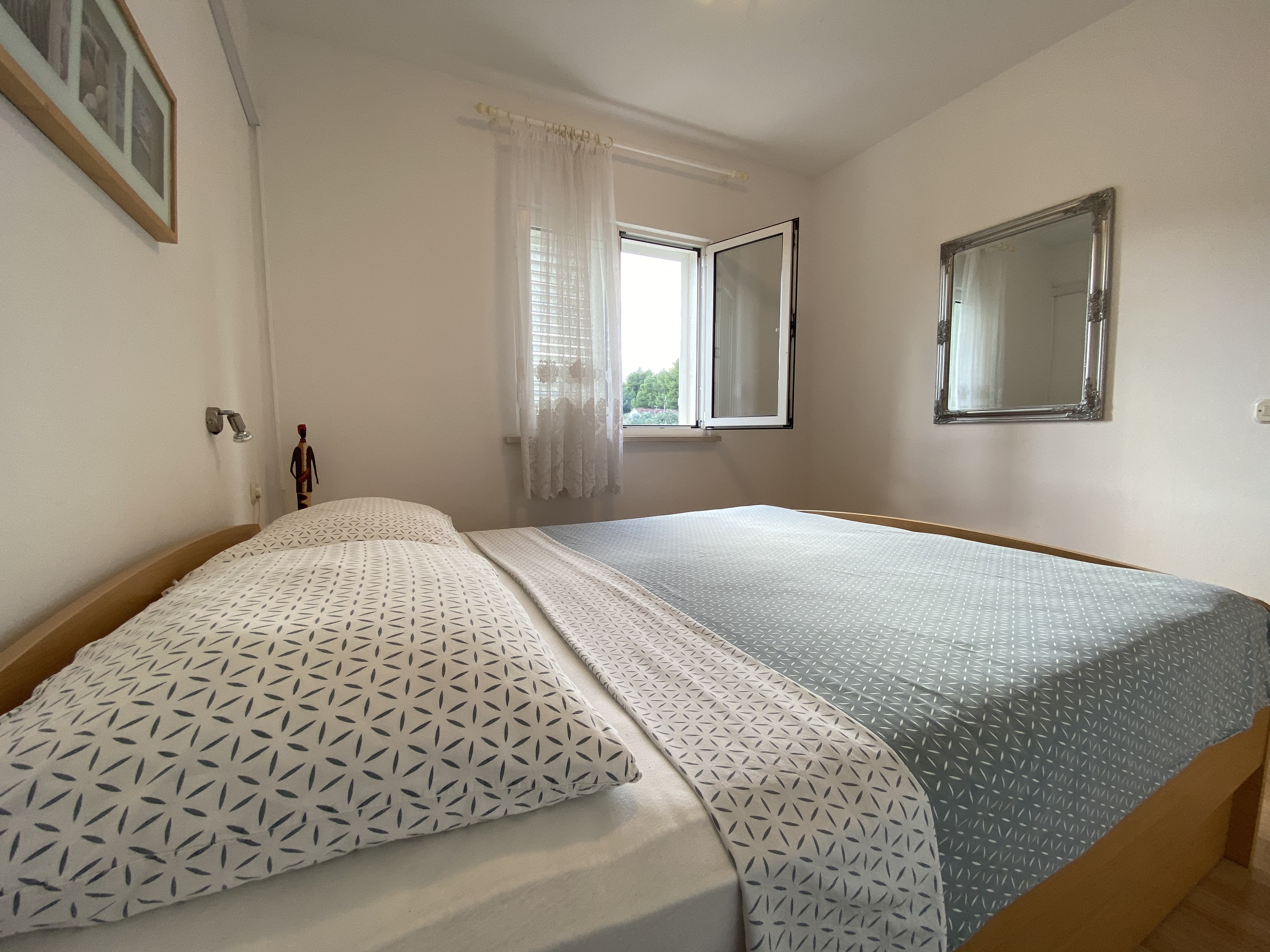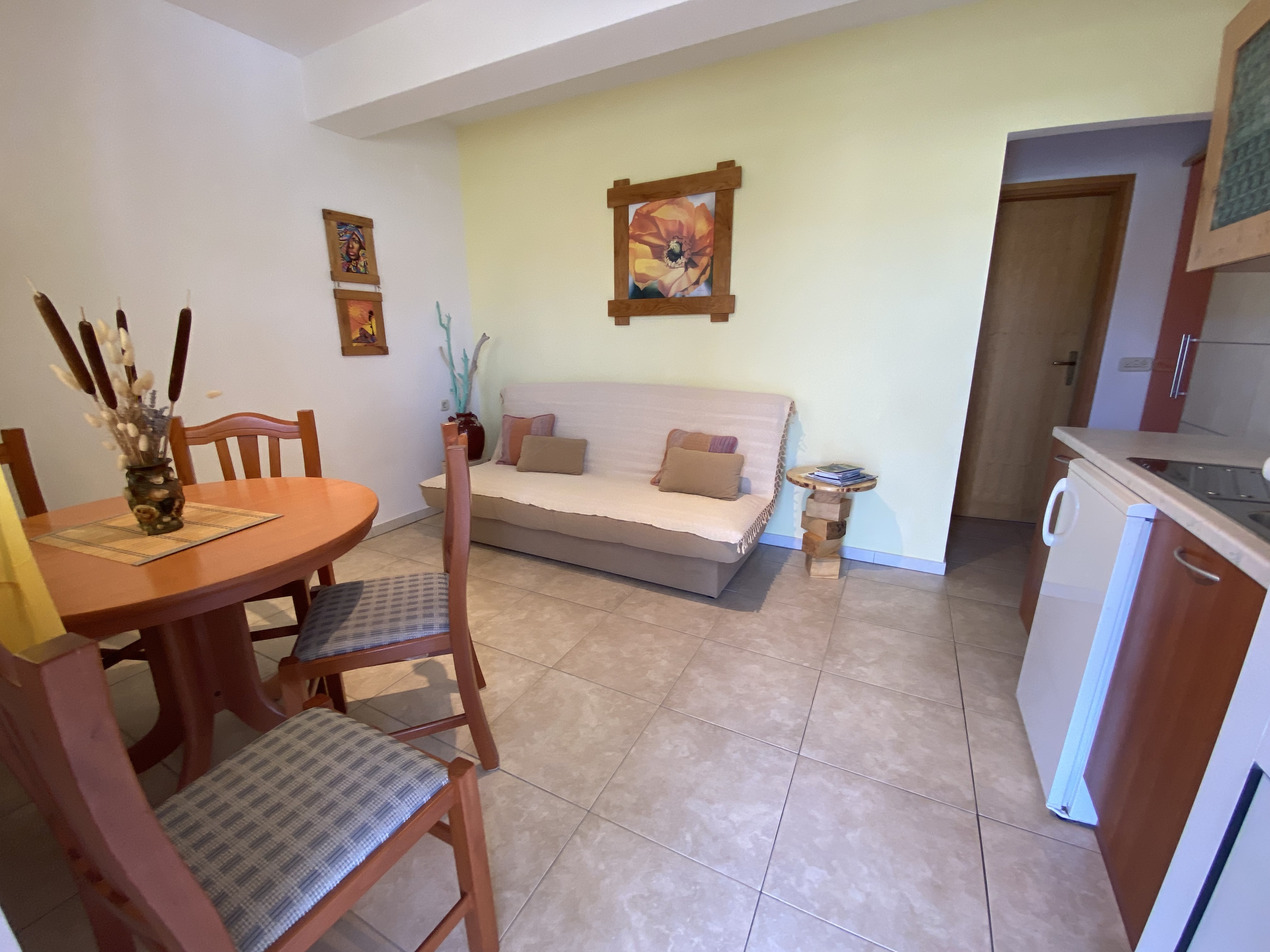 Apartment can accommodate 3 guests. Beds are situated in 1 sleeping rooms, but also in the living room, within 26m2. Guests can use a private terrace to enjoy the warm summer evenings. The apartment offers the sea view. Food can be prepared using barbecue which is shared with other guests too. This accommodation unit welcomes pets at no additional costs. Other guests or hosts pass through the terrace of the booked accommodation unit. INCLUDED IN THE PRICE: tourist tax, final cleaning, air-conditioning, parking, internet, boat mooring, pets, baby cot, iron, ironing board, hairdryer. OBLIGATORY ADDITIONAL COSTS: short stay fee (surcharge depending on a number of booked nights: 30% - 1, 20% - 2, 10% - 3). OPTIONAL ADDITIONAL COSTS: breakfast (€10.00, a 50% discount for children aged 4 to 12 years, Children up to age 4 free of charge), bicycle (€10.00 daily (per piece)). The availability of additional services for your chosen dates of stay, as well as their prices (if none are listed) must be checked ahead of time. Any additional services not shown in the price calculation are payable directly to the property owner and only if used by the visitor.