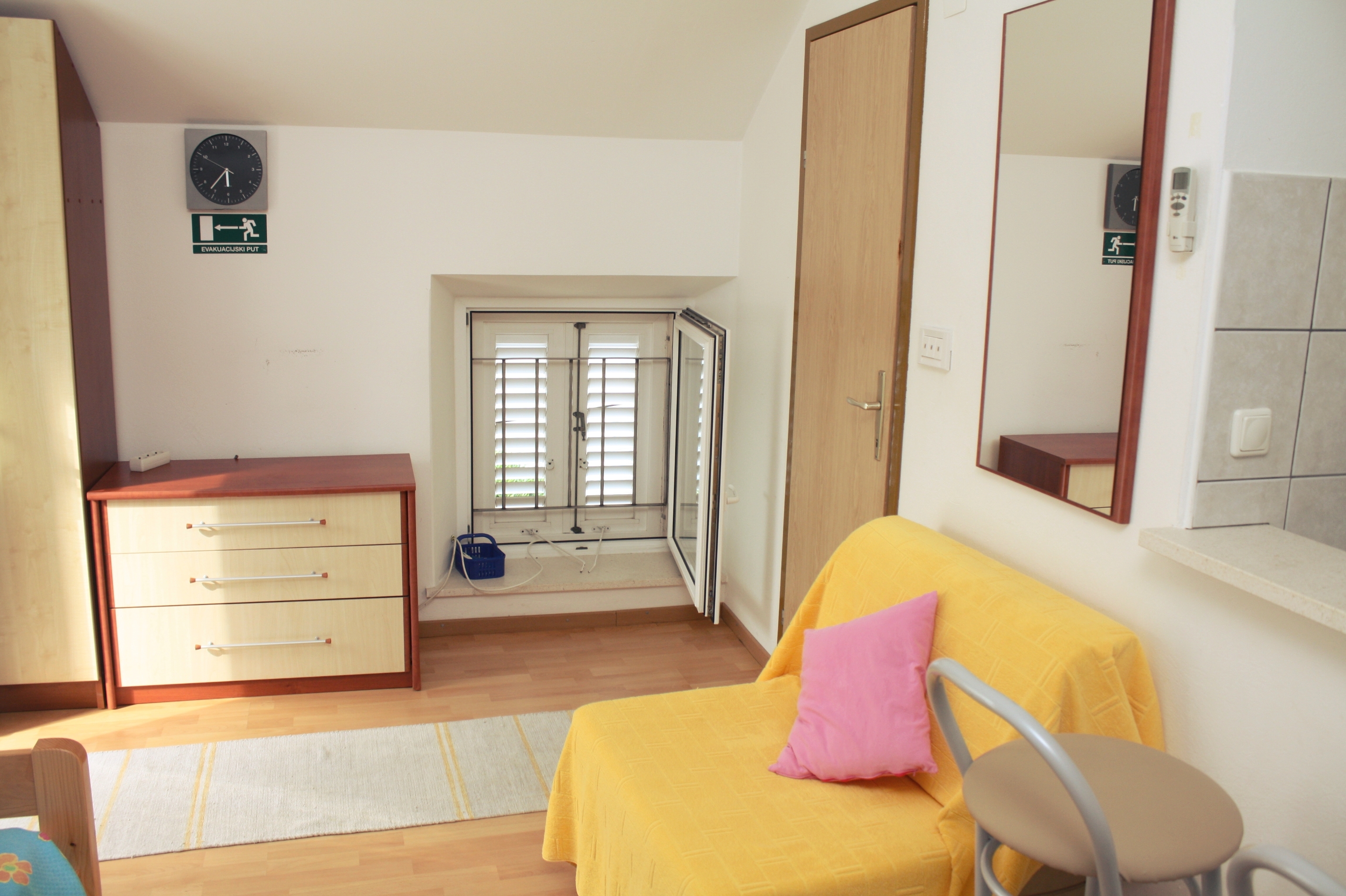 Studio flat can accommodate 2 guests. Beds are situated in 1 sleeping rooms, within 26m2. Guests can use a private balcony to enjoy the warm summer evenings. The studio offers the sea view. Food can be prepared using barbecue which is shared with other guests too. This accommodation unit welcomes pets at no additional costs. INCLUDED IN THE PRICE: tourist tax, final cleaning, air-conditioning, parking, internet, pets, iron. OBLIGATORY ADDITIONAL COSTS: short stay fee (surcharge depending on a number of booked nights: 30% - 1, 20% - 2, 10% - 3). The availability of additional services for your chosen dates of stay, as well as their prices (if none are listed) must be checked ahead of time. Any additional services not shown in the price calculation are payable directly to the property owner and only if used by the visitor.