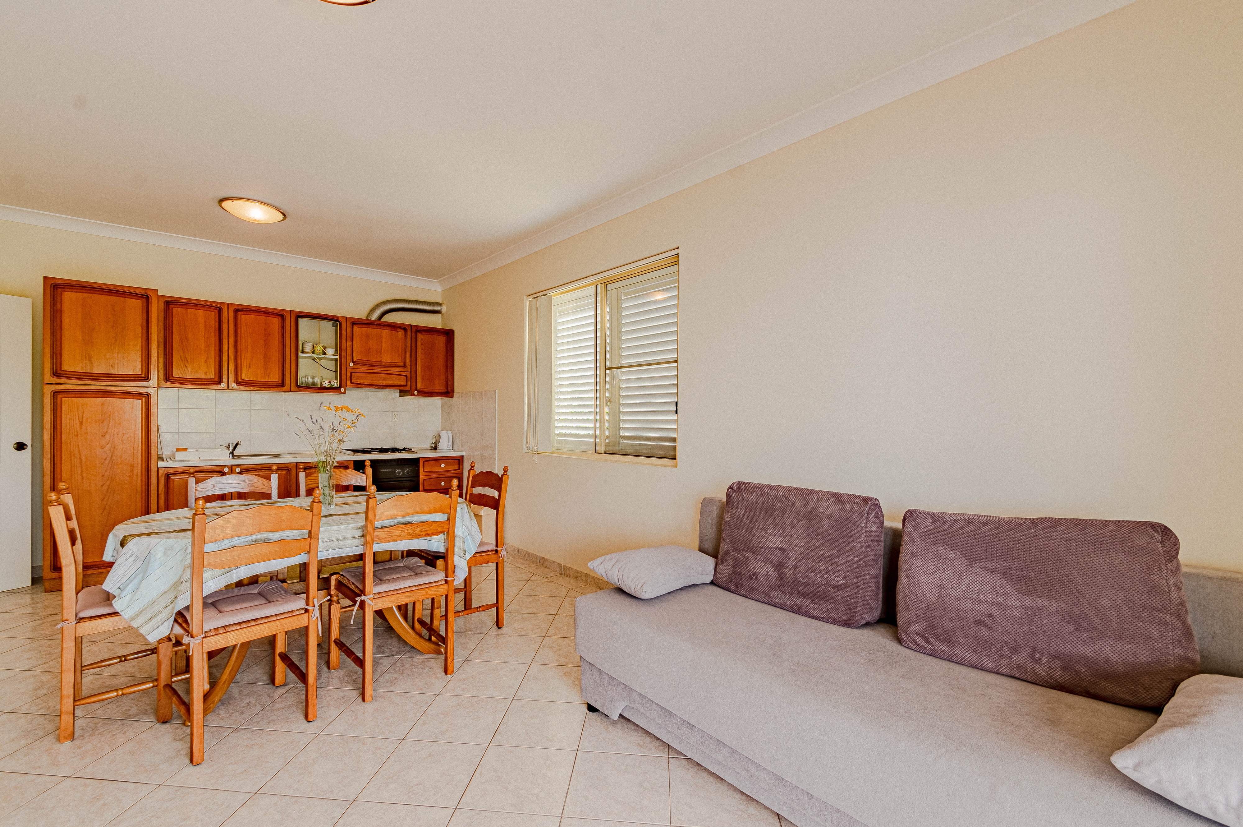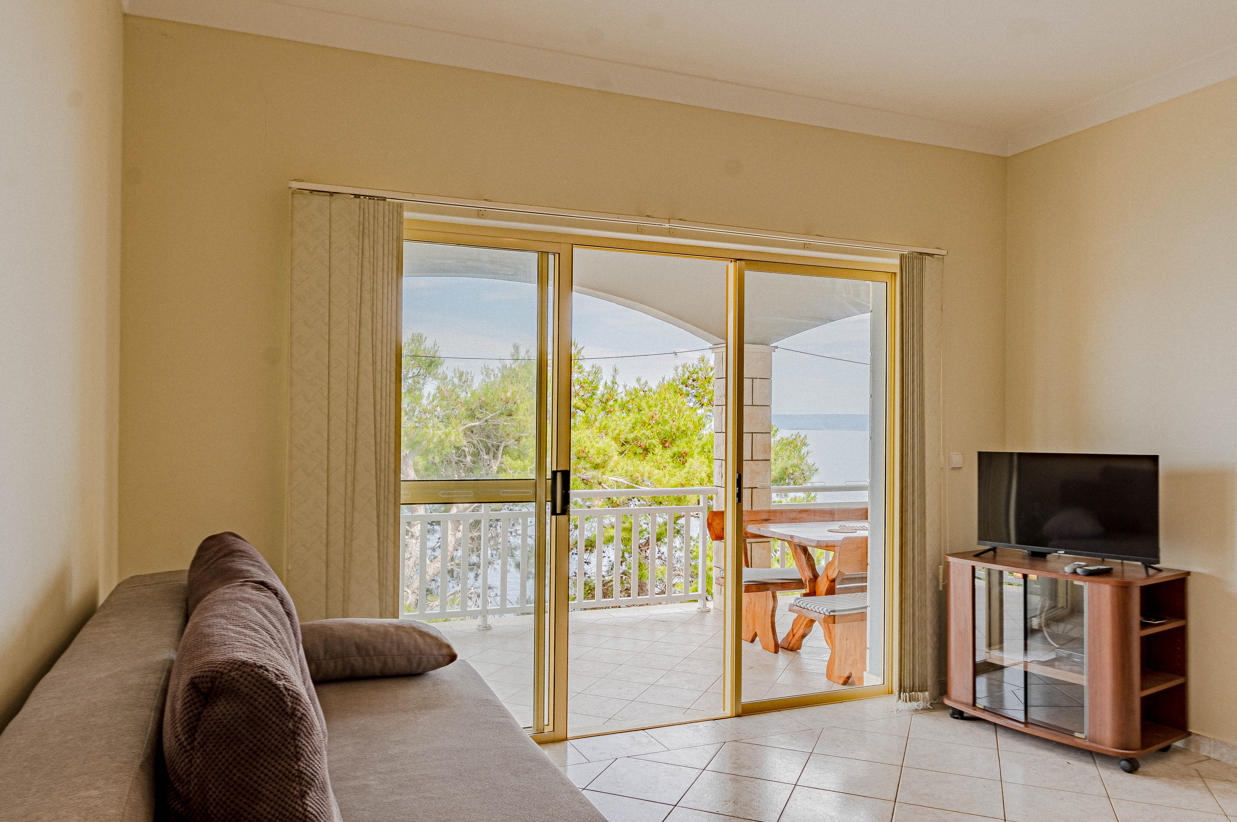 Apartment can accommodate 6 guests. Beds are situated in 2 sleeping rooms, but also in the living room, within 57m2. Guests can use a private terrace to enjoy the warm summer evenings. The apartment offers the sea view. Food can be prepared using barbecue which is shared with other guests too. INCLUDED IN THE PRICE: tourist tax, final cleaning, air-conditioning, parking, internet, hairdryer. OBLIGATORY ADDITIONAL COSTS: short stay fee (surcharge depending on a number of booked nights: 30% - 1, 20% - 2, 10% - 3). OPTIONAL ADDITIONAL COSTS: laundry (€5.00 washing). The availability of additional services for your chosen dates of stay, as well as their prices (if none are listed) must be checked ahead of time. Any additional services not shown in the price calculation are payable directly to the property owner and only if used by the visitor.