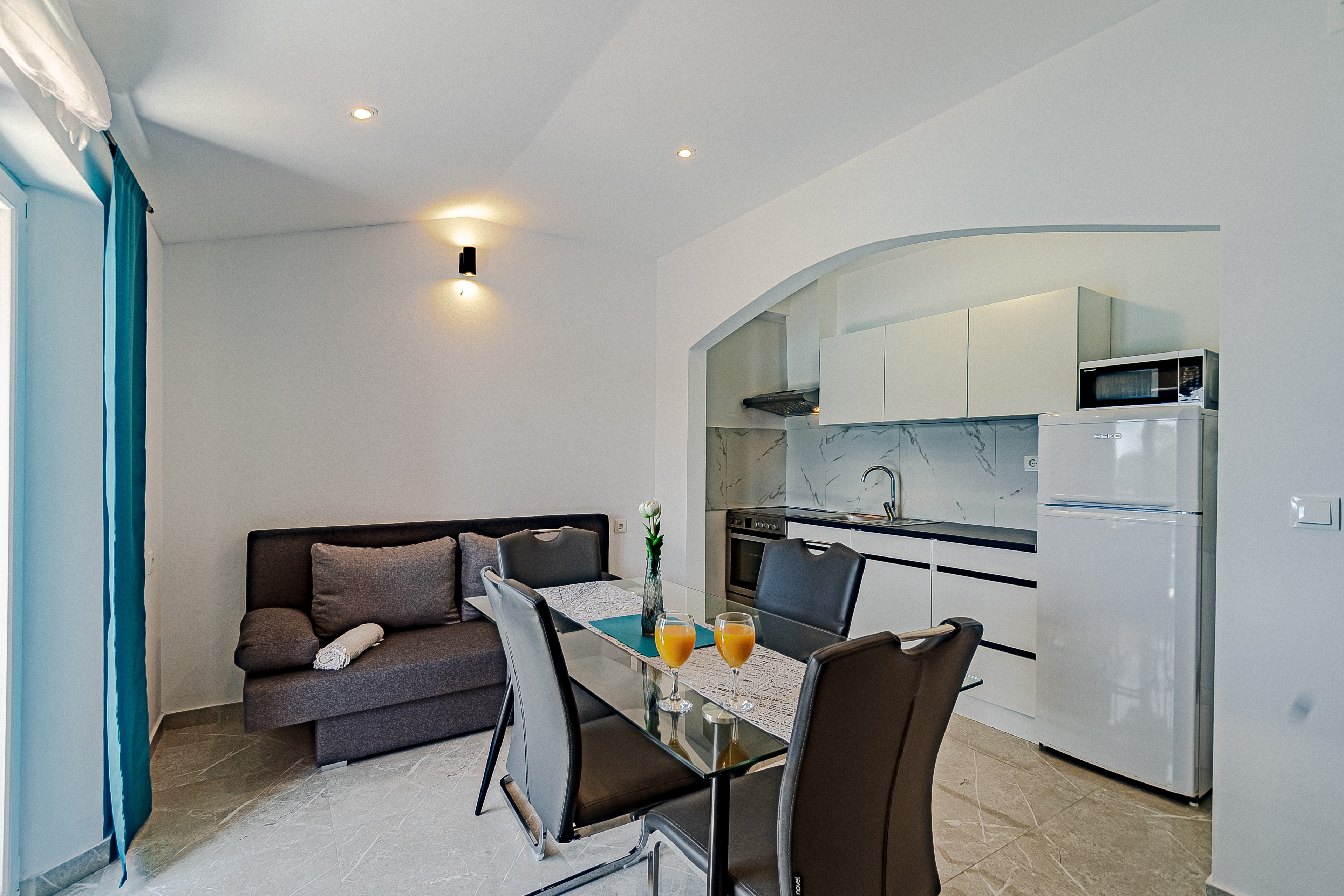 Apartment can accommodate 4 guests. Beds are situated in 2 sleeping rooms, within 46m2. Guests can use a private terrace to enjoy the warm summer evenings. The apartment offers the sea view. Food can be prepared using barbecue which is shared with other guests too. INCLUDED IN THE PRICE: tourist tax, final cleaning, air-conditioning, parking, internet, baby cot, iron, ironing board, hairdryer, sunshade. OBLIGATORY ADDITIONAL COSTS: short stay fee (surcharge depending on a number of booked nights: 30% - 1, 20% - 2, 10% - 3). The availability of additional services for your chosen dates of stay, as well as their prices (if none are listed) must be checked ahead of time. Any additional services not shown in the price calculation are payable directly to the property owner and only if used by the visitor. Discounts to the base price: free day 21=19 (for reservations of 21 or more days you get 2 free days for the stay until 31122026).