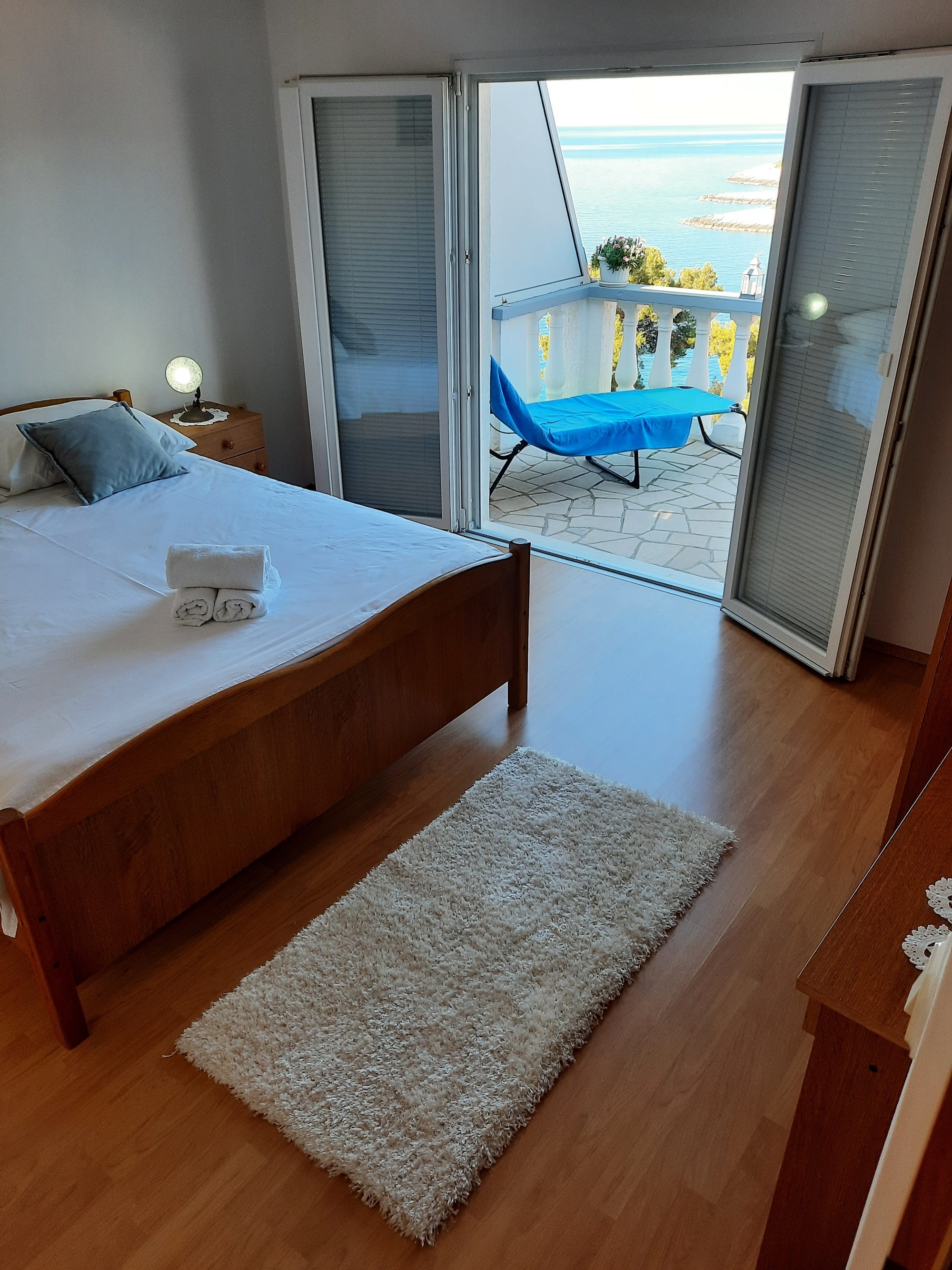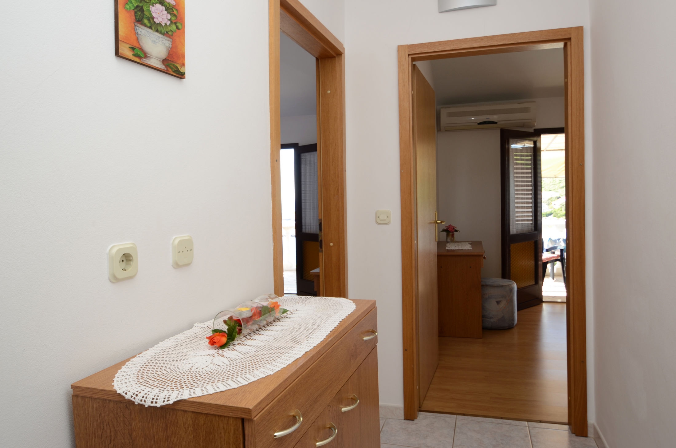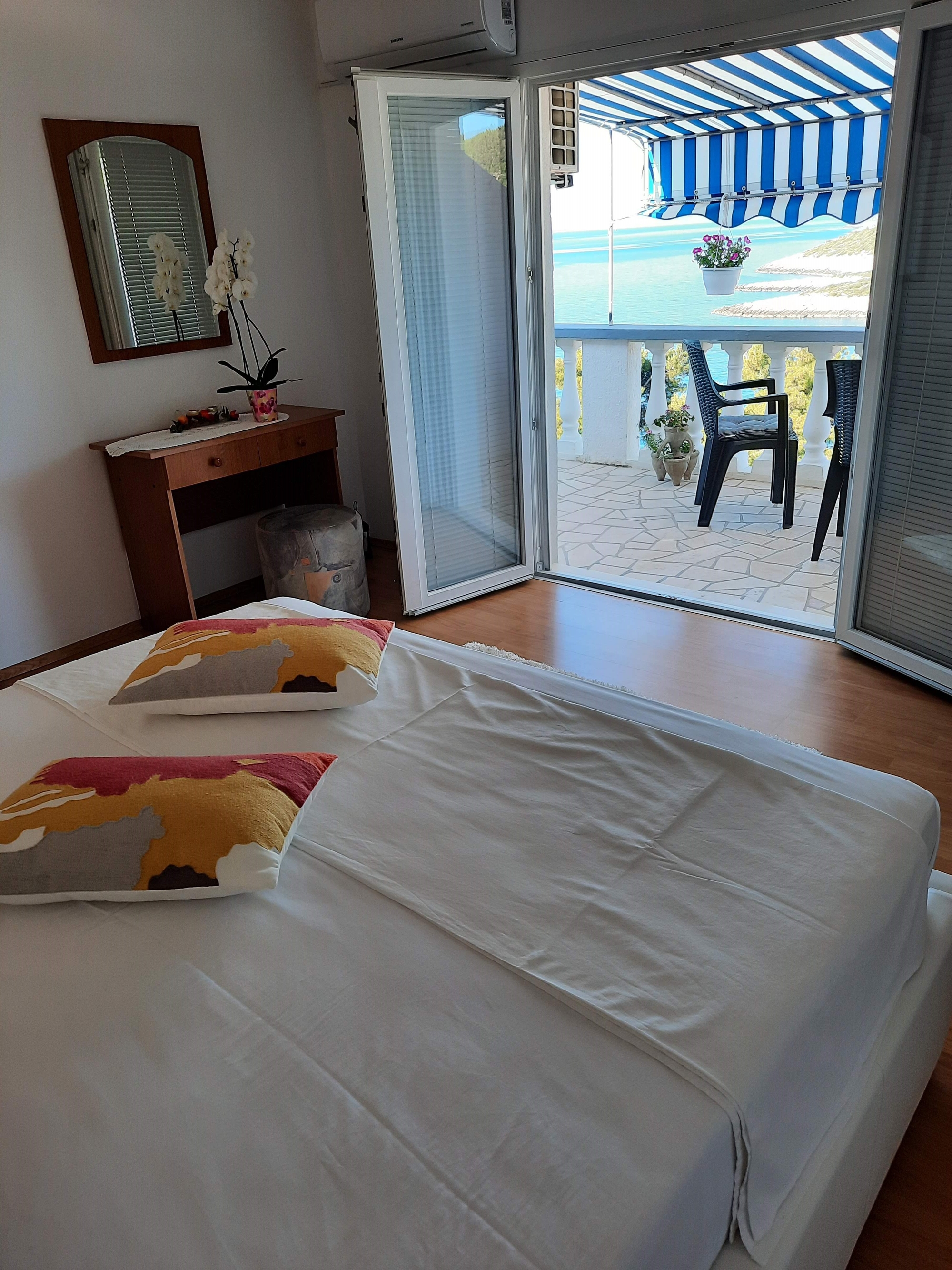 Apartment can accommodate 4 guests. Beds are situated in 2 sleeping rooms, within 54m2. Guests can use a private terrace to enjoy the warm summer evenings. The apartment offers the sea view. Food can be prepared using barbecue which is shared with other guests too. INCLUDED IN THE PRICE: tourist tax, final cleaning, air-conditioning, parking, internet, boat mooring, baby cot, iron, hairdryer. OBLIGATORY ADDITIONAL COSTS: short stay fee (surcharge depending on a number of booked nights: 30% - 1, 20% - 2, 10% - 3). OPTIONAL ADDITIONAL COSTS: laundry (€10.00 washing). The availability of additional services for your chosen dates of stay, as well as their prices (if none are listed) must be checked ahead of time. Any additional services not shown in the price calculation are payable directly to the property owner and only if used by the visitor. Discounts to the base price: free day 14=13 (for reservations of 14 or more days you get one free day for the stay until 31122026).