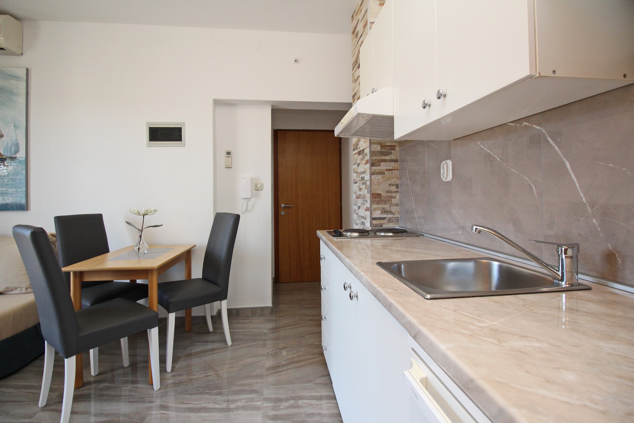 Apartment can accommodate 2 guests. Beds are situated in 1 sleeping rooms, within 31m2. Guests can use a private terrace to enjoy the warm summer evenings. Food can be prepared using barbecue which is shared with other guests too. This accommodation unit welcomes pets at an additional charge. INCLUDED IN THE PRICE: tourist tax, final cleaning, air-conditioning, parking, internet. OBLIGATORY ADDITIONAL COSTS: short stay fee (surcharge depending on a number of booked nights: 30% - 1, 20% - 2, 10% - 3). OPTIONAL ADDITIONAL COSTS: pets (€10.00 per night). The availability of additional services for your chosen dates of stay, as well as their prices (if none are listed) must be checked ahead of time. Any additional services not shown in the price calculation are payable directly to the property owner and only if used by the visitor.