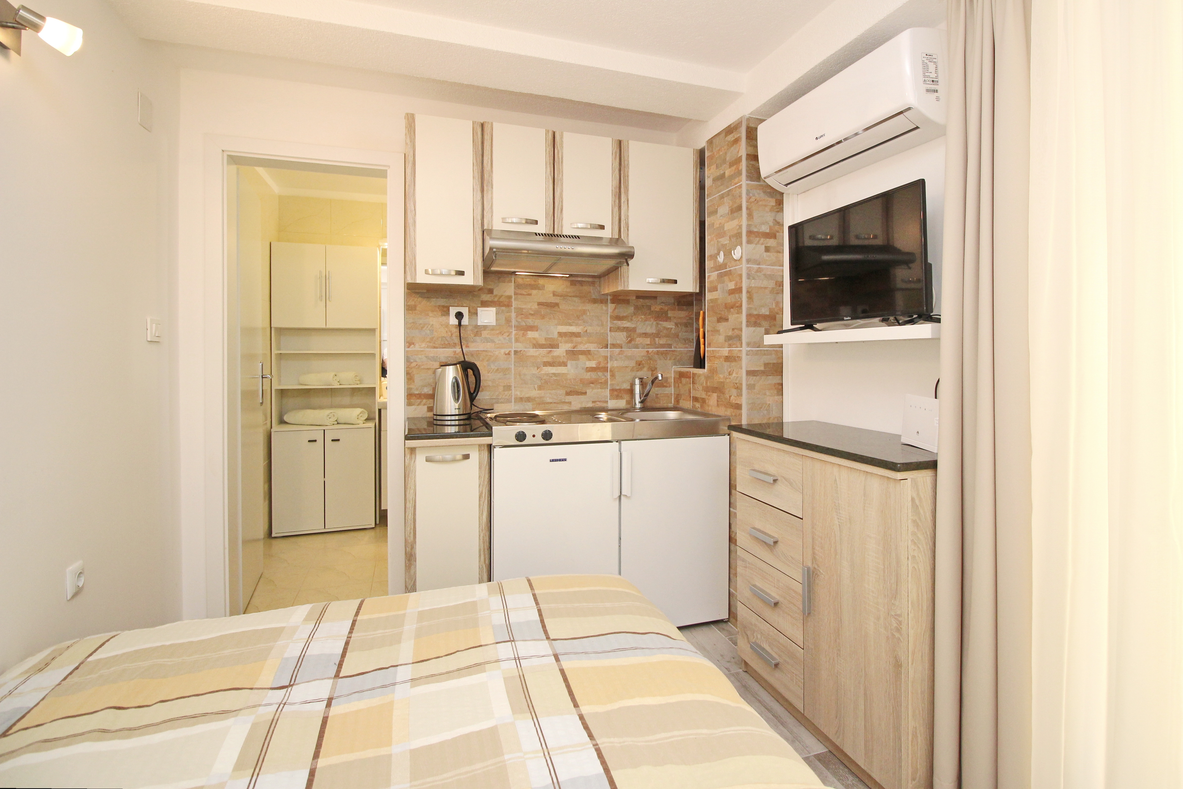 Studio flat can accommodate 2 guests. Beds are situated in 1 sleeping rooms, within 20m2. Guests can use a private terrace to enjoy the warm summer evenings. INCLUDED IN THE PRICE: tourist tax, final cleaning, air-conditioning, parking, internet. OBLIGATORY ADDITIONAL COSTS: short stay fee (surcharge depending on a number of booked nights: 30% - 1, 20% - 2, 10% - 3). The availability of additional services for your chosen dates of stay, as well as their prices (if none are listed) must be checked ahead of time. Any additional services not shown in the price calculation are payable directly to the property owner and only if used by the visitor.