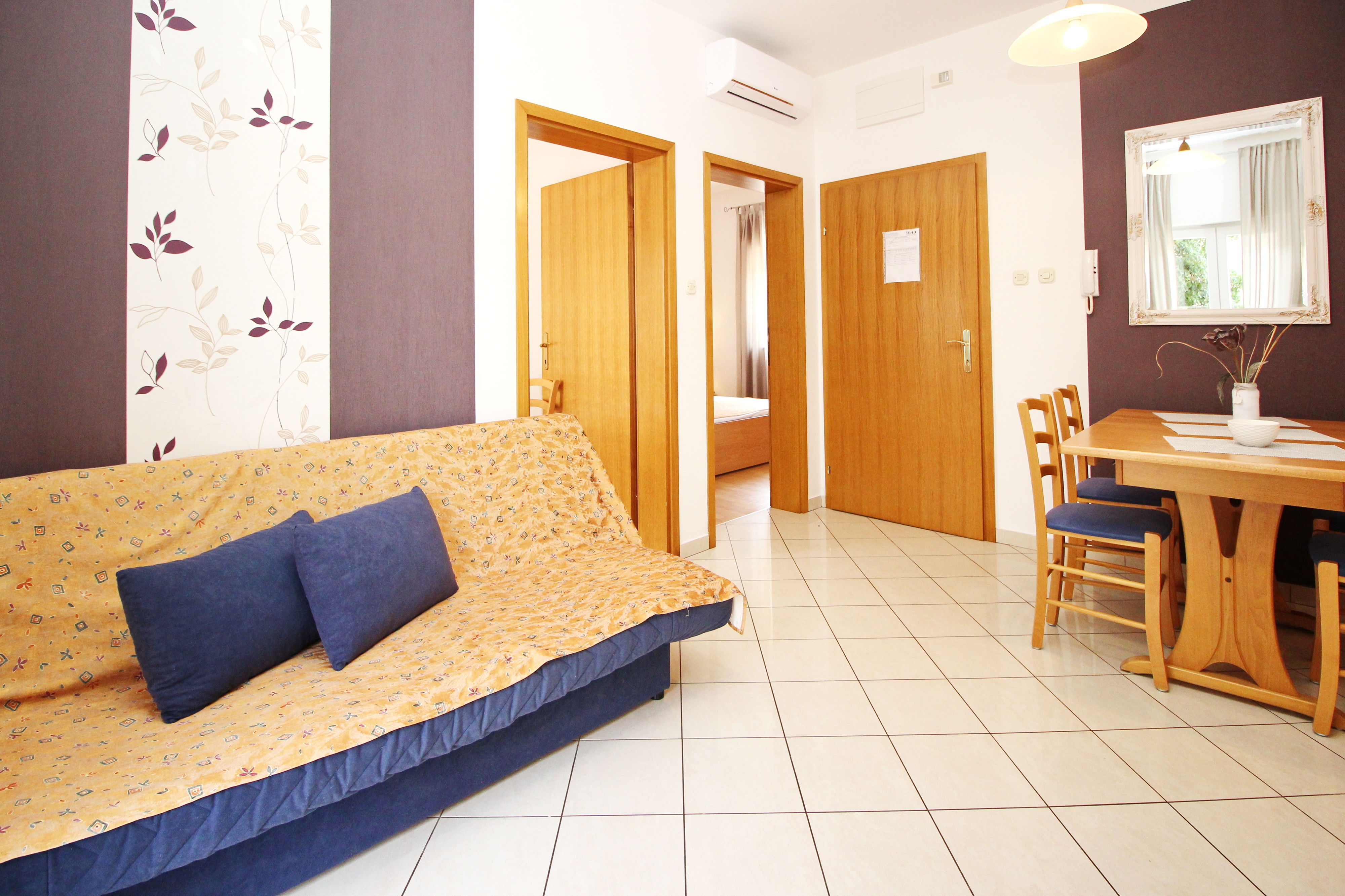Apartment can accommodate 6 guests. Beds are situated in 3 sleeping rooms, within 60m2. Guests can use a private terrace to enjoy the warm summer evenings. This accommodation unit welcomes pets at an additional charge. INCLUDED IN THE PRICE: tourist tax, final cleaning, air-conditioning, parking, internet. OBLIGATORY ADDITIONAL COSTS: short stay fee (surcharge depending on a number of booked nights: 30% - 1, 20% - 2, 10% - 3). OPTIONAL ADDITIONAL COSTS: pets (€10.00 per night). The availability of additional services for your chosen dates of stay, as well as their prices (if none are listed) must be checked ahead of time. Any additional services not shown in the price calculation are payable directly to the property owner and only if used by the visitor.