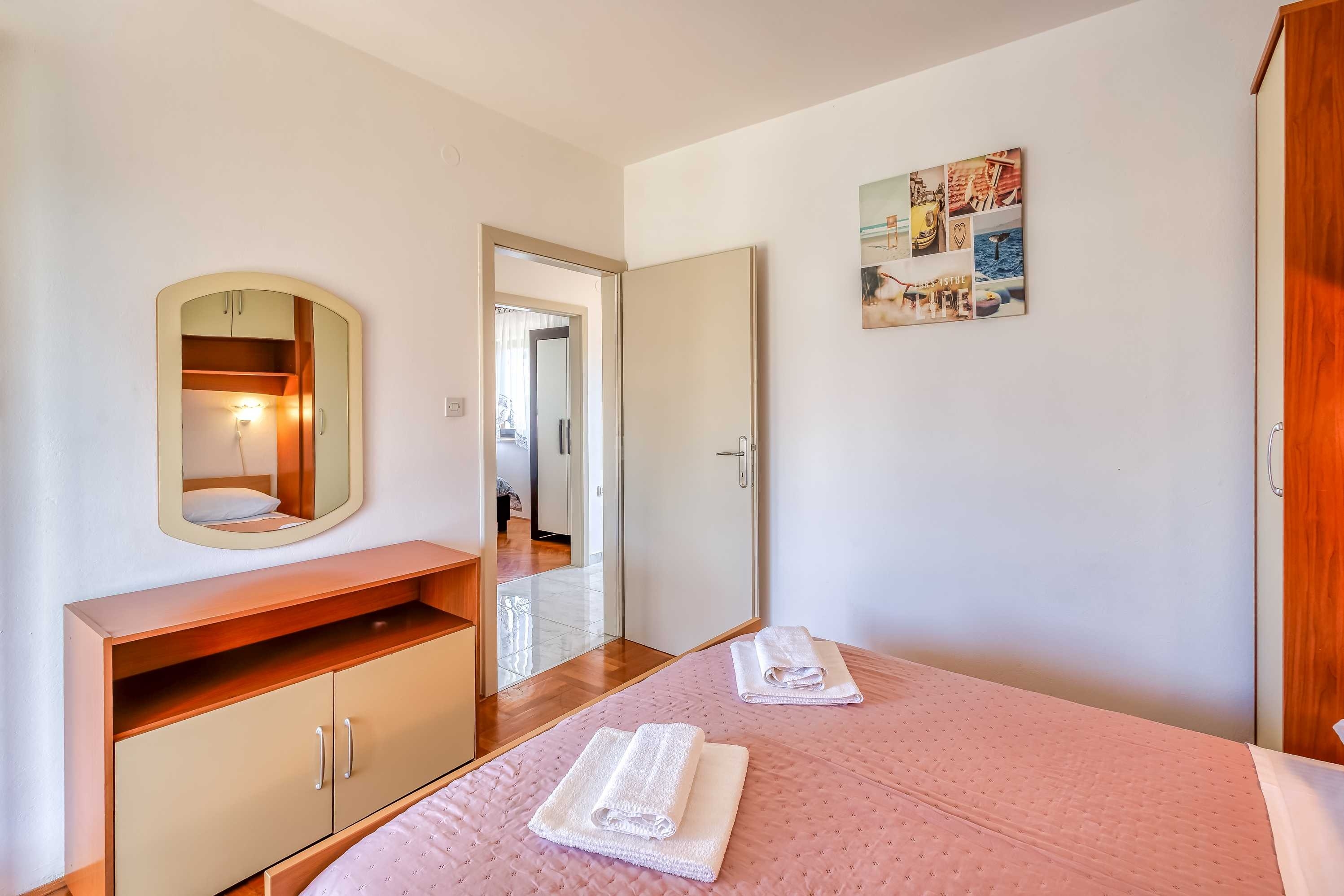 Apartment can accommodate 4 guests. Beds are situated in 2 sleeping rooms, within 55m2. Guests can use a private balcony to enjoy the warm summer evenings. Food can be prepared using barbecue which is shared with other guests too. INCLUDED IN THE PRICE: tourist tax, final cleaning, air-conditioning, parking, internet, baby cot, iron, ironing board, hairdryer. The availability of additional services for your chosen dates of stay, as well as their prices (if none are listed) must be checked ahead of time. Any additional services not shown in the price calculation are payable directly to the property owner and only if used by the visitor.