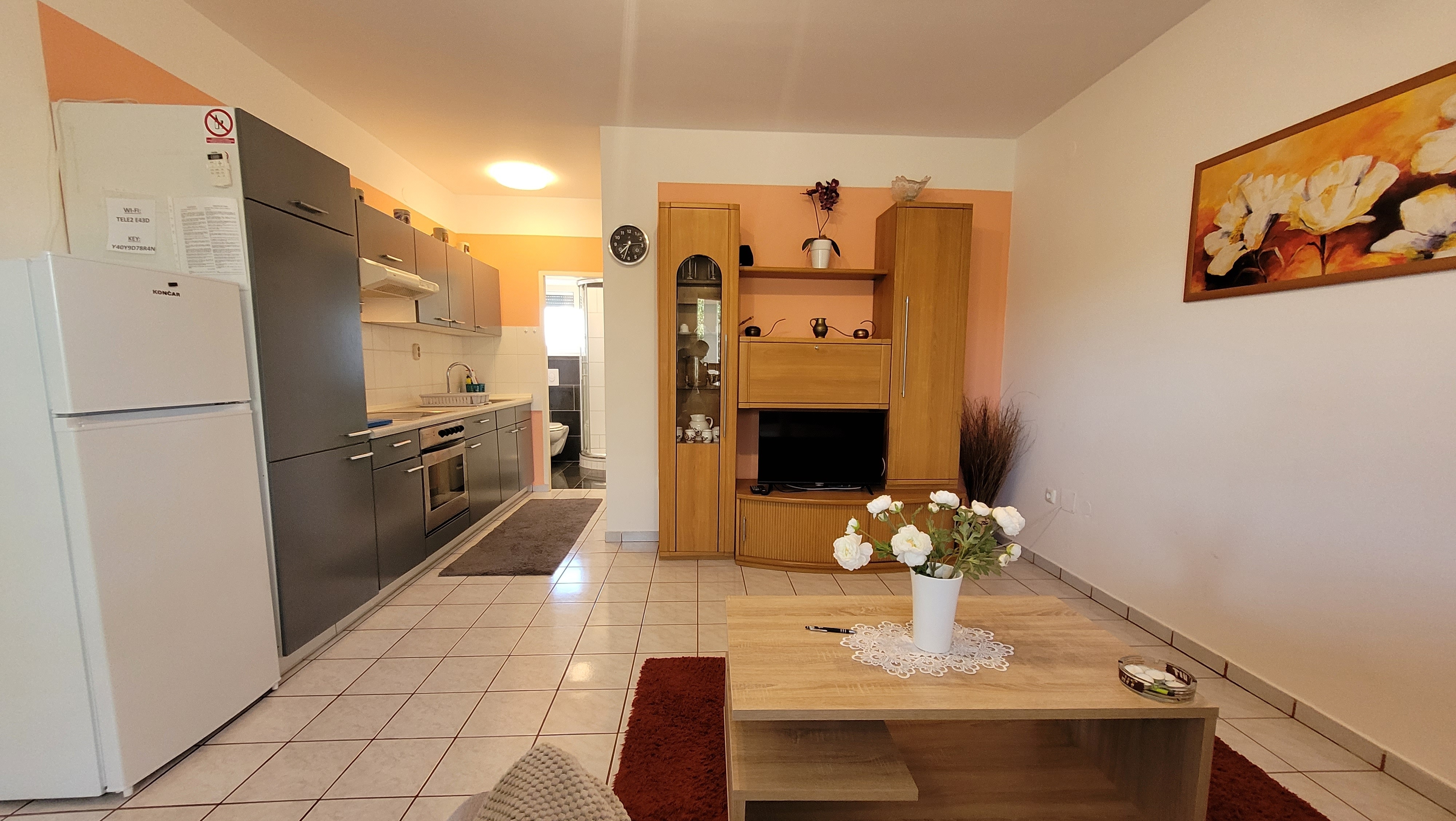 Apartment can accommodate 4 guests. Beds are situated in 1 sleeping rooms, but also in the living room, within 32m2. Food can be prepared using barbecue which is shared with other guests too. Reserved accommodation unit has a shared terrace. INCLUDED IN THE PRICE: tourist tax, final cleaning, air-conditioning, parking, internet. OBLIGATORY ADDITIONAL COSTS: short stay fee (surcharge depending on a number of booked nights: 30% - 1, 20% - 2, 10% - 3). The availability of additional services for your chosen dates of stay, as well as their prices (if none are listed) must be checked ahead of time. Any additional services not shown in the price calculation are payable directly to the property owner and only if used by the visitor.