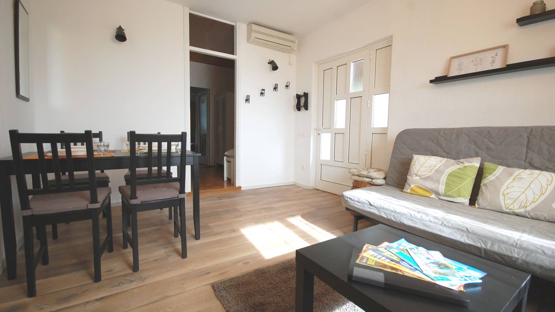 Apartment can accommodate 3 guests. Beds are situated in 1 sleeping rooms, but also in the living room, within 30m2. Guests can use a private terrace to enjoy the warm summer evenings. For full enjoyment and relaxation there is a private barbecue for this accommodation guests only. INCLUDED IN THE PRICE: tourist tax, final cleaning, air-conditioning, parking, internet. The availability of additional services for your chosen dates of stay, as well as their prices (if none are listed) must be checked ahead of time. Any additional services not shown in the price calculation are payable directly to the property owner and only if used by the visitor.