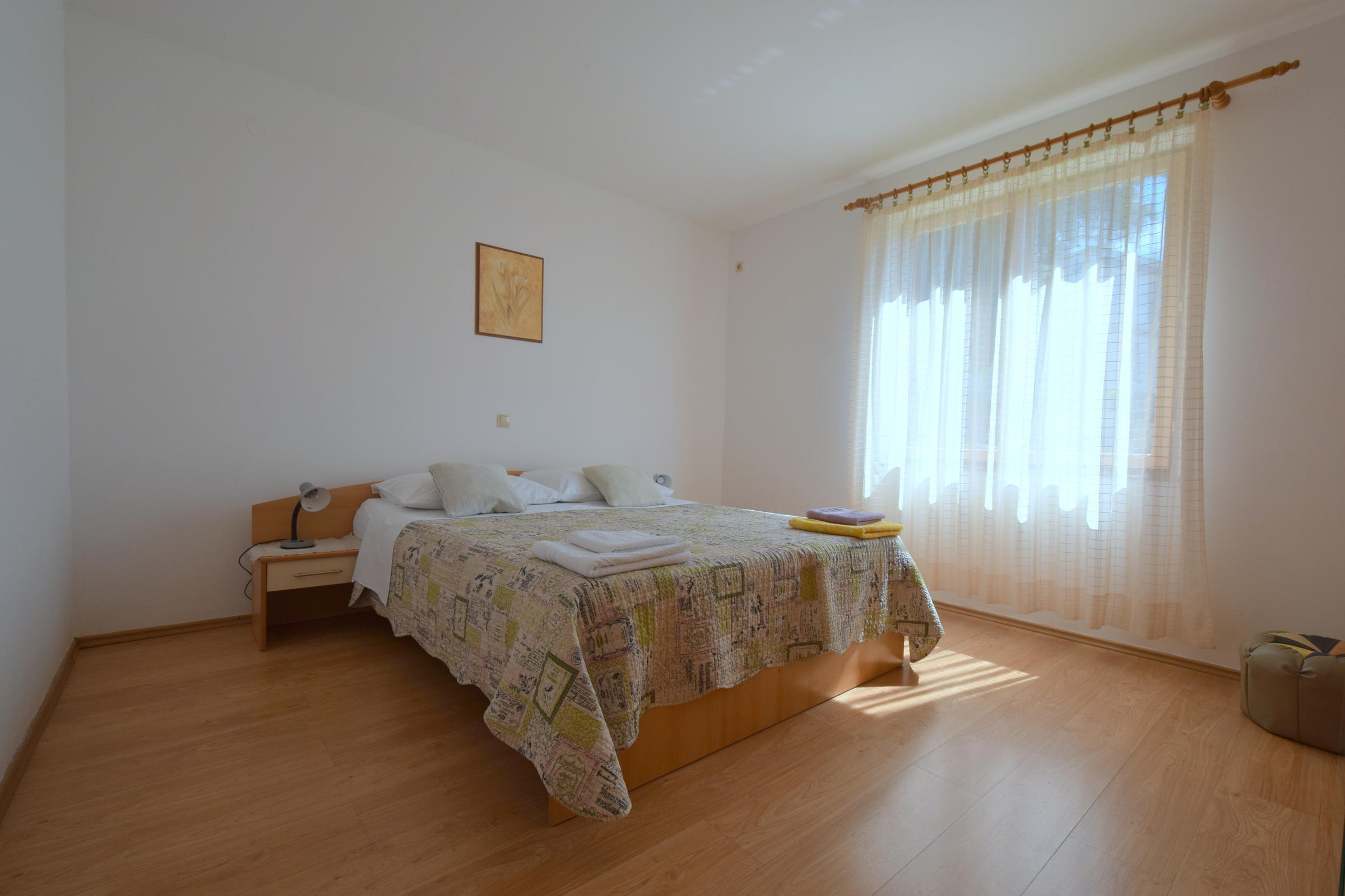 Apartment can accommodate 6 guests. Beds are situated in 3 sleeping rooms, within 69m2. Guests can use a private terrace to enjoy the warm summer evenings. Food can be prepared using barbecue which is shared with other guests too. This accommodation unit welcomes pets at an additional charge. INCLUDED IN THE PRICE: tourist tax, final cleaning, air-conditioning, parking, internet. OBLIGATORY ADDITIONAL COSTS: short stay fee (surcharge depending on a number of booked nights: 30% - 1, 20% - 2, 10% - 3). OPTIONAL ADDITIONAL COSTS: pets (€10.00 per night). The availability of additional services for your chosen dates of stay, as well as their prices (if none are listed) must be checked ahead of time. Any additional services not shown in the price calculation are payable directly to the property owner and only if used by the visitor.