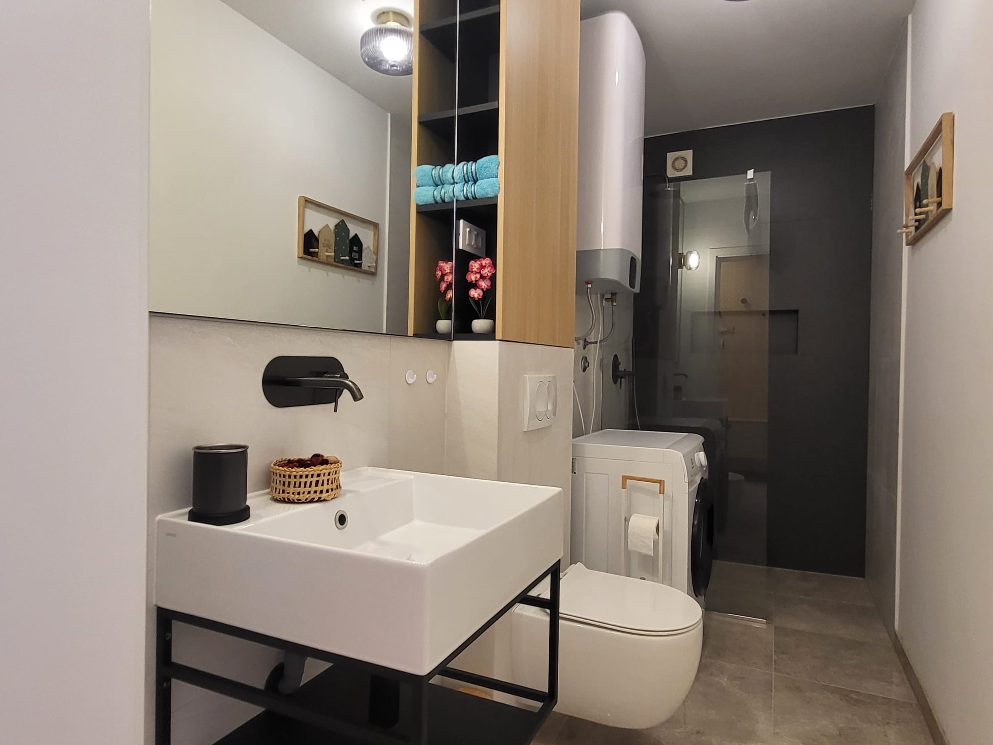 Apartment can accommodate 4 guests. Beds are situated in 1 sleeping rooms, but also in the living room, within 32m2. Guests can use a private terrace to enjoy the warm summer evenings. INCLUDED IN THE PRICE: tourist tax, final cleaning, air-conditioning, parking, internet, hairdryer. The availability of additional services for your chosen dates of stay, as well as their prices (if none are listed) must be checked ahead of time. Any additional services not shown in the price calculation are payable directly to the property owner and only if used by the visitor.