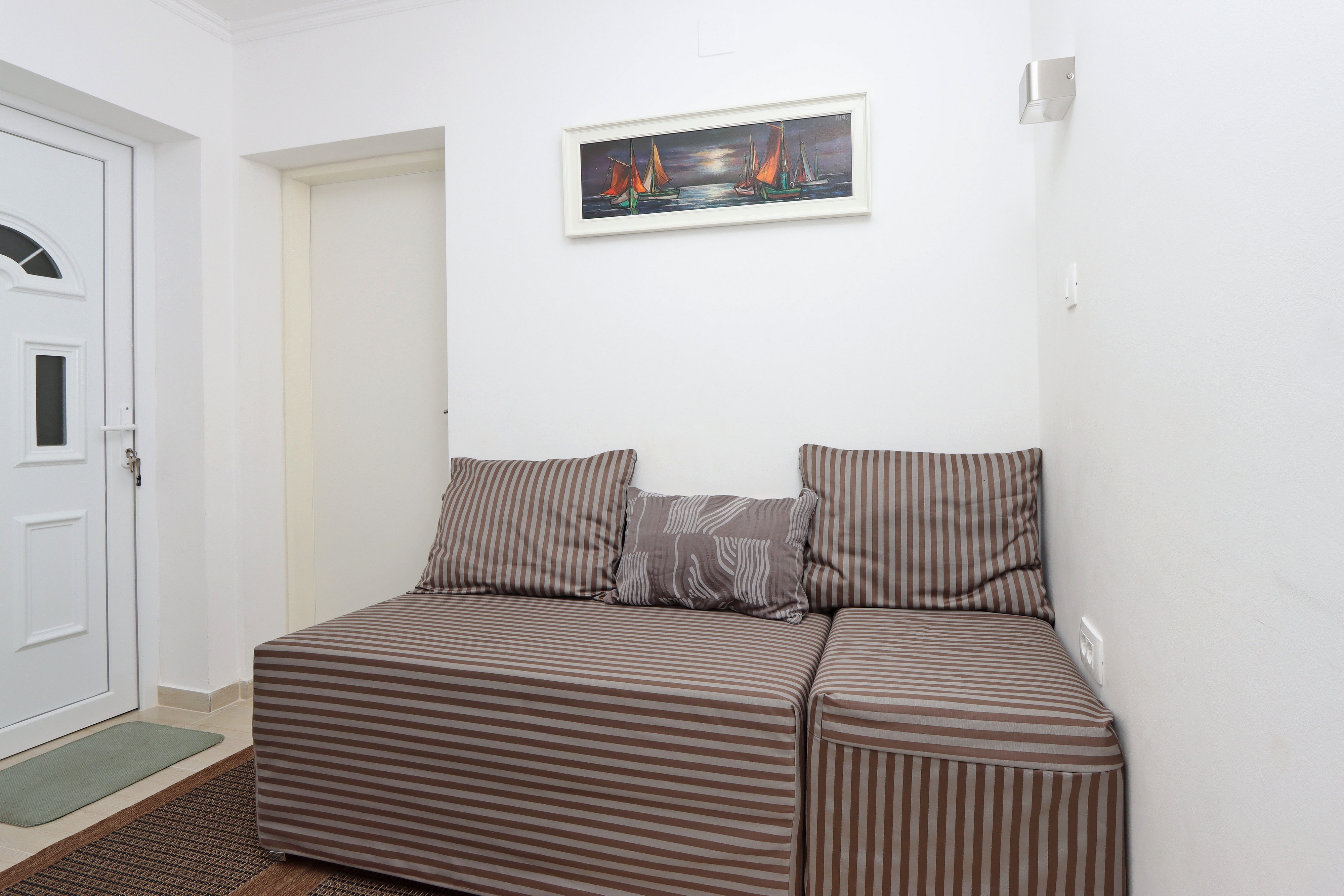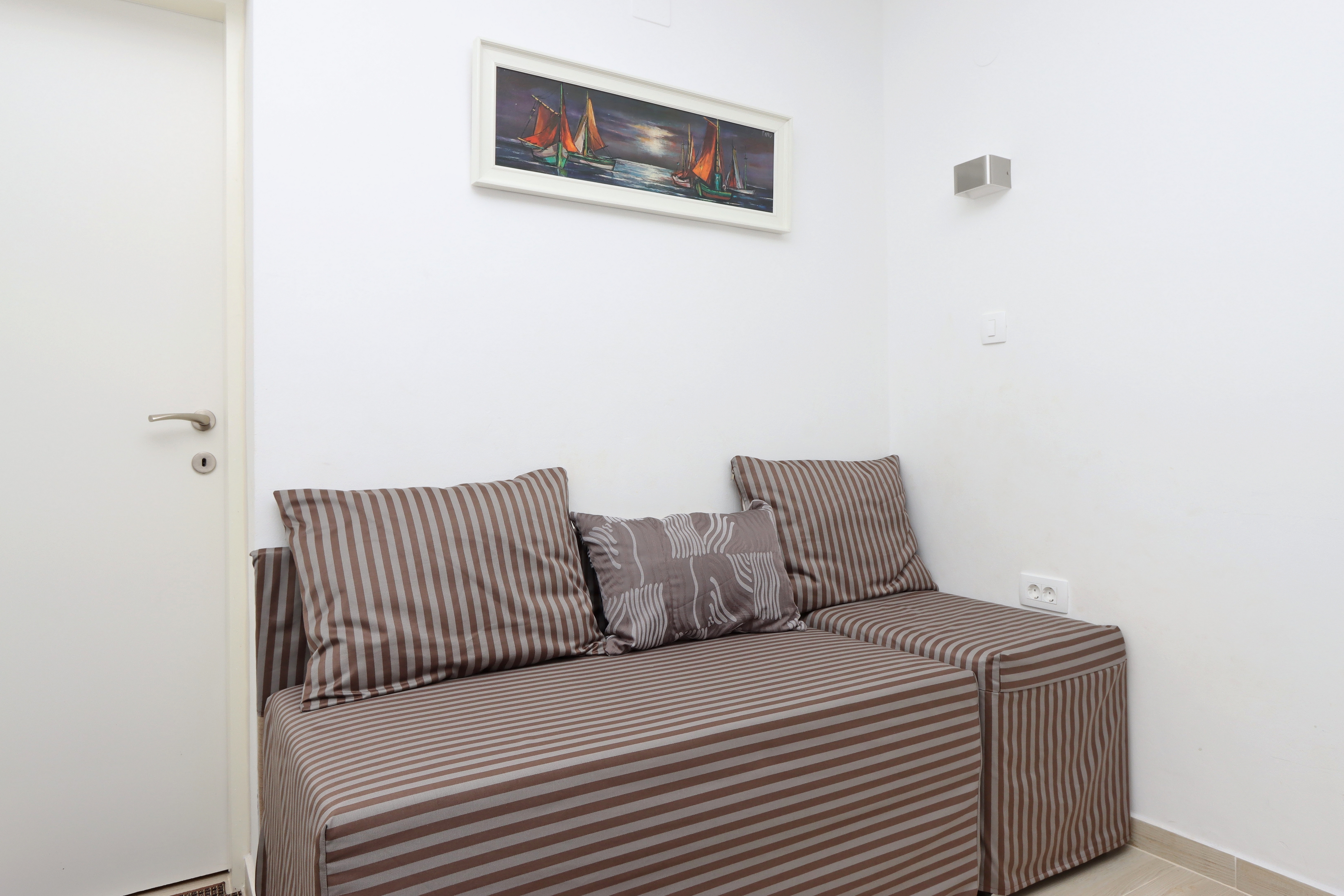 Apartment can accommodate 5 guests. Beds are situated in 2 sleeping rooms, within 54m2. Guests can use a private terrace to enjoy the warm summer evenings. Food can be prepared using barbecue which is shared with other guests too. INCLUDED IN THE PRICE: tourist tax, final cleaning, parking, internet, ironing board, portable barbecue. OBLIGATORY ADDITIONAL COSTS: short stay fee (surcharge depending on a number of booked nights: 30% - 1, 20% - 2, 10% - 3). The availability of additional services for your chosen dates of stay, as well as their prices (if none are listed) must be checked ahead of time. Any additional services not shown in the price calculation are payable directly to the property owner and only if used by the visitor.