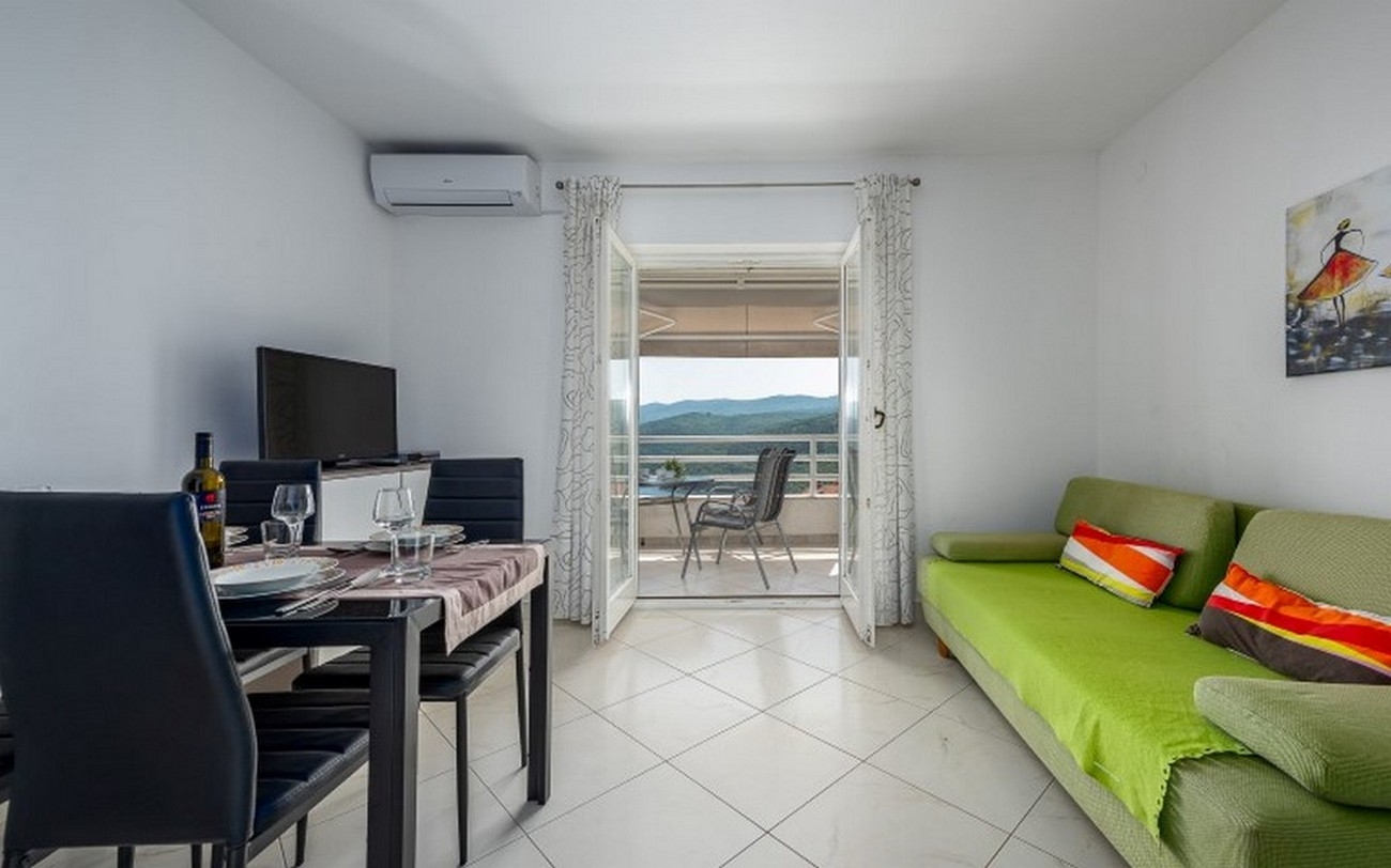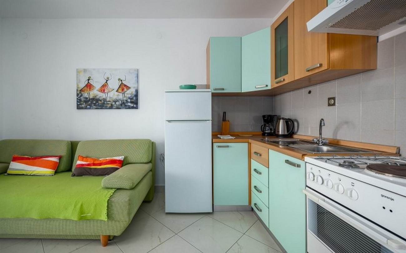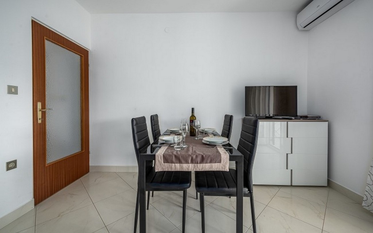 Apartment can accommodate 4 guests. Beds are situated in 1 sleeping rooms, but also in the living room, within 35m2. Guests can use a private terrace to enjoy the warm summer evenings. The apartment offers the sea view. Food can be prepared using barbecue which is shared with other guests too. This accommodation unit welcomes pets at an additional charge. INCLUDED IN THE PRICE: tourist tax, final cleaning, air-conditioning, internet, hairdryer, portable barbecue. OBLIGATORY ADDITIONAL COSTS: short stay fee (surcharge depending on a number of booked nights: 30% - 1, 20% - 2, 10% - 3). OPTIONAL ADDITIONAL COSTS: garage (€6.00 per night), pets (€10.00 per night). The availability of additional services for your chosen dates of stay, as well as their prices (if none are listed) must be checked ahead of time. Any additional services not shown in the price calculation are payable directly to the property owner and only if used by the visitor.