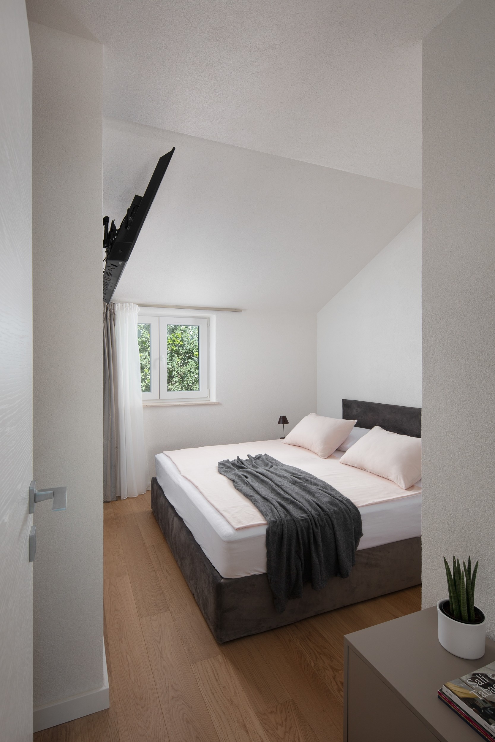 Apartment can accommodate 5 guests. Beds are situated in 2 sleeping rooms, but also in the living room, within 69m2. Guests can use a private terrace to enjoy the warm summer evenings. The apartment offers the sea view. Food can be prepared using barbecue which is shared with other guests too. This accommodation unit welcomes pets at no additional costs. INCLUDED IN THE PRICE: tourist tax, final cleaning, air-conditioning, central heating, parking, internet, boat mooring, pets, bicycle, baby cot, iron, ironing board, hairdryer, sunshade, sunchairs. OBLIGATORY ADDITIONAL COSTS: short stay fee (surcharge depending on a number of booked nights: 30% - 1, 20% - 2, 10% - 3). The availability of additional services for your chosen dates of stay, as well as their prices (if none are listed) must be checked ahead of time. Any additional services not shown in the price calculation are payable directly to the property owner and only if used by the visitor.