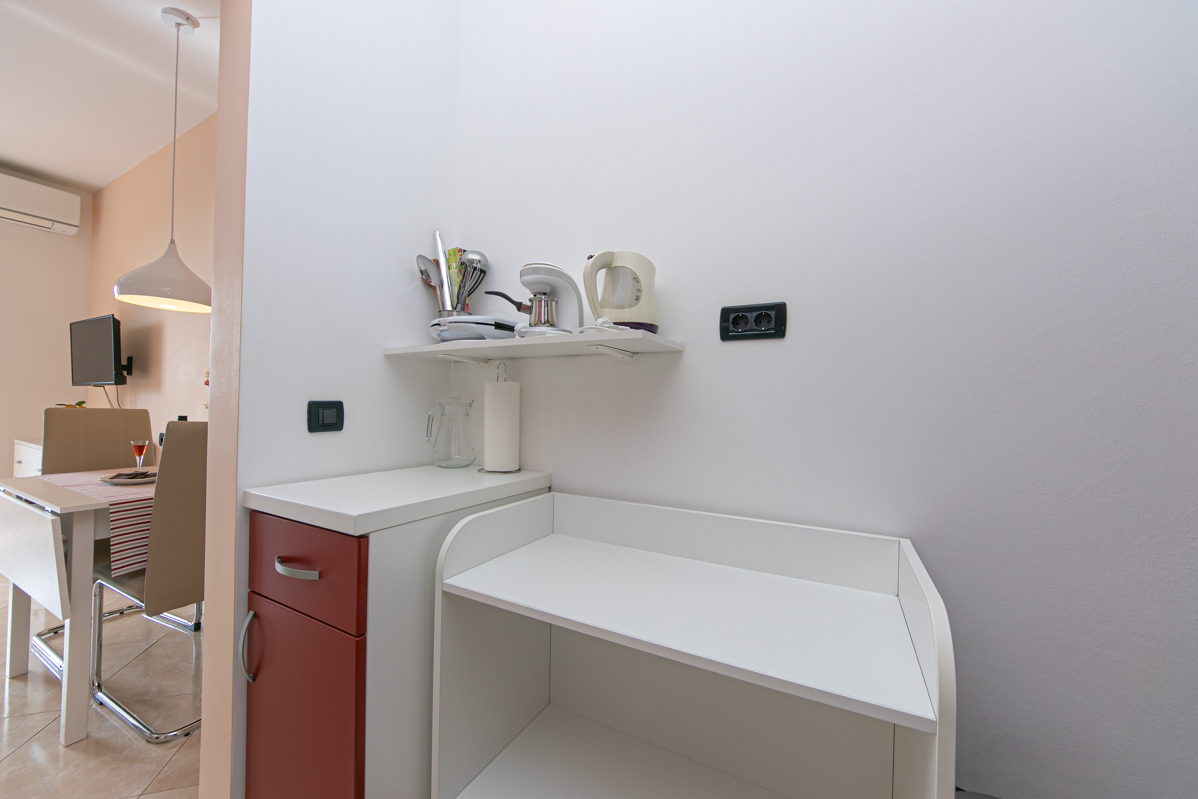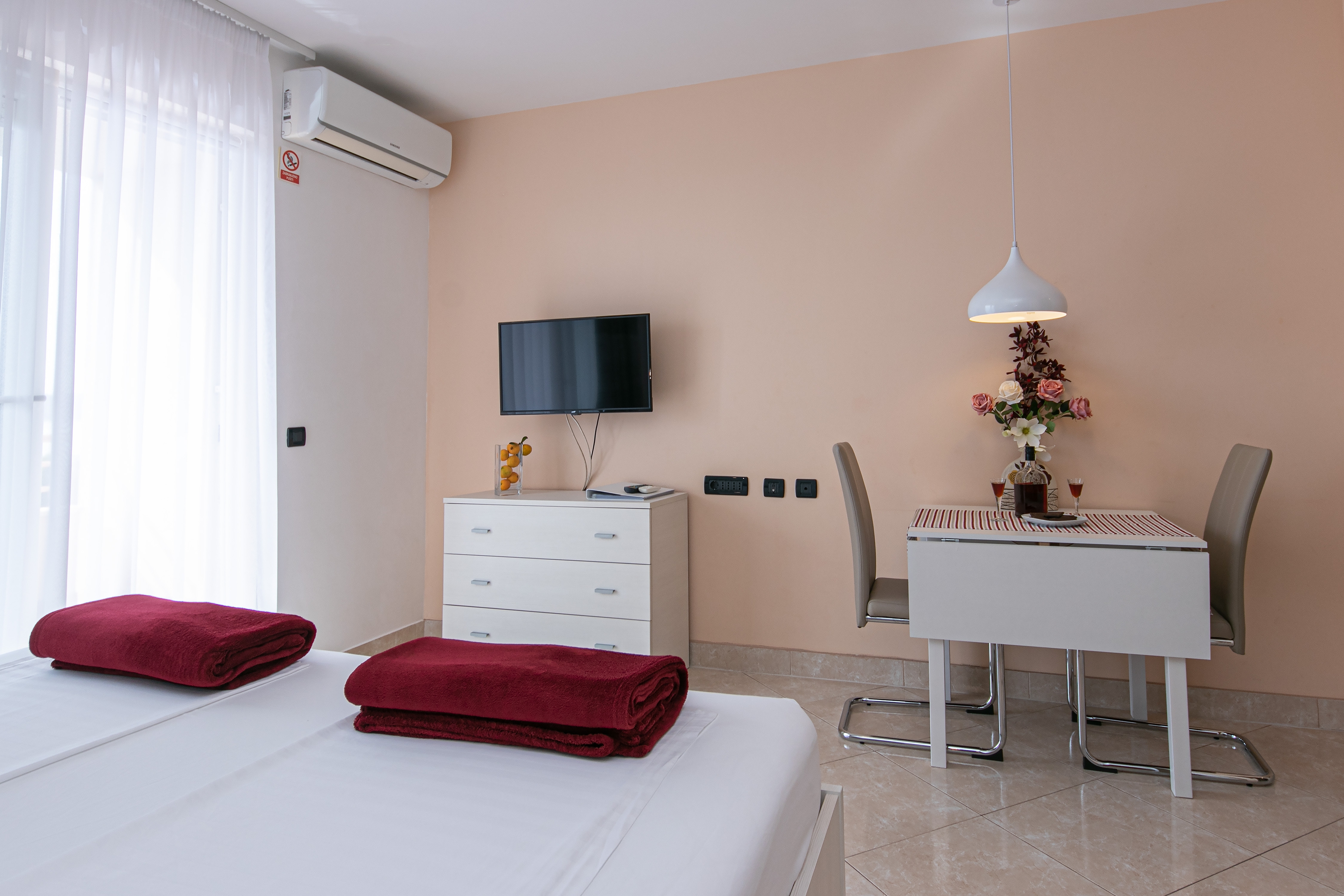 Studio flat can accommodate 2 guests. Beds are situated in 1 sleeping rooms, within 24m2. Guests can use a private terrace to enjoy the warm summer evenings. The studio offers the sea view. Food can be prepared using barbecue which is shared with other guests too. Shared pool is on disposal during stay. This accommodation unit welcomes pets at an additional charge. INCLUDED IN THE PRICE: tourist tax, final cleaning, air-conditioning, pool, parking, internet, laundry, baby cot, iron, ironing board, hairdryer. OPTIONAL ADDITIONAL COSTS: pets (€10.00 per night). The availability of additional services for your chosen dates of stay, as well as their prices (if none are listed) must be checked ahead of time. Any additional services not shown in the price calculation are payable directly to the property owner and only if used by the visitor. Discounts to the base price: free day 14=13 (for reservations of 14 or more days you get one free day for the stay until 31122026).