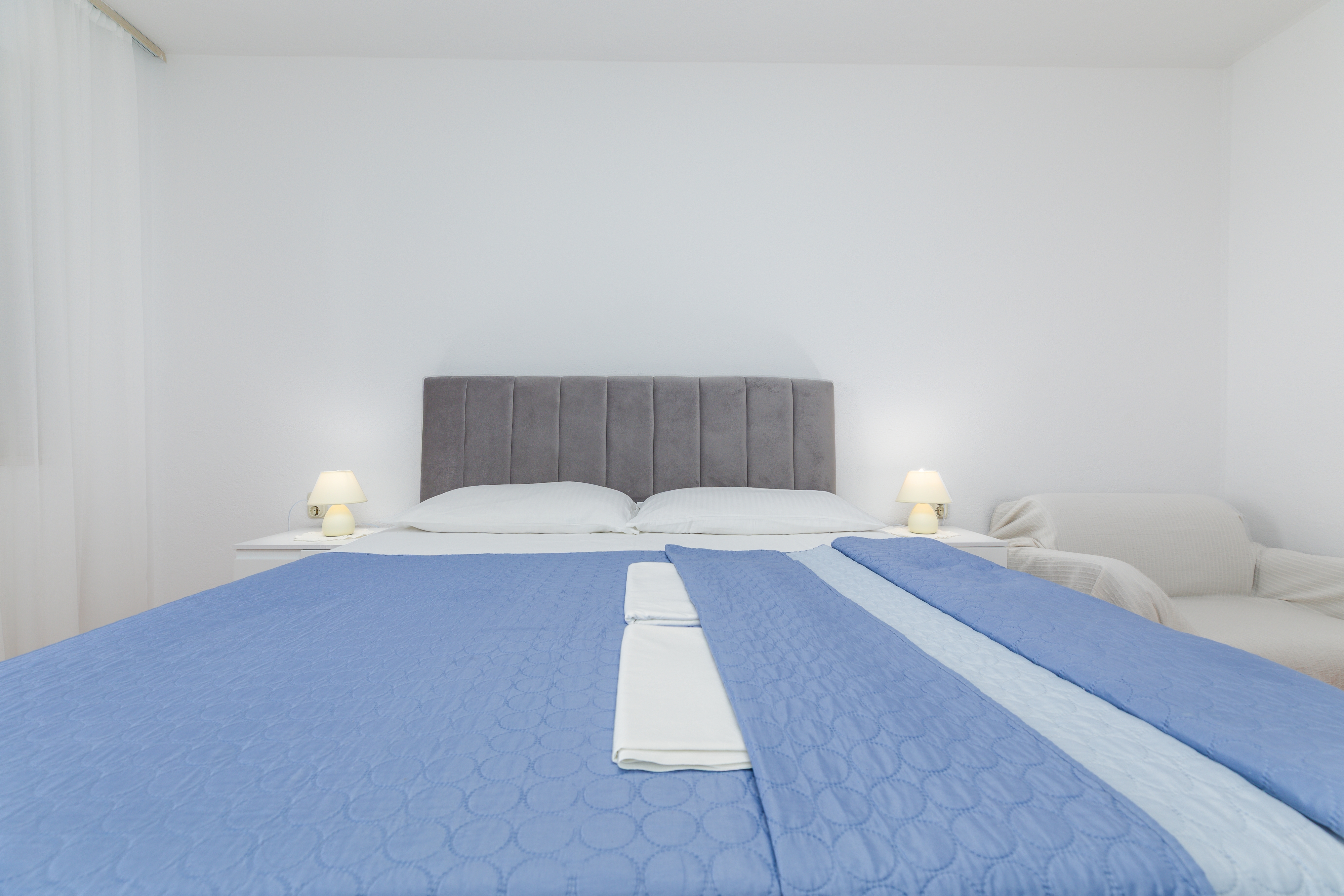 Studio flat can accommodate 3 guests. Beds are situated in 1 sleeping rooms, within 20m2. Guests can use a private terrace to enjoy the warm summer evenings. The studio offers the sea view. INCLUDED IN THE PRICE: tourist tax, final cleaning, air-conditioning, parking, internet, baby cot, iron, ironing board, hairdryer. The availability of additional services for your chosen dates of stay, as well as their prices (if none are listed) must be checked ahead of time. Any additional services not shown in the price calculation are payable directly to the property owner and only if used by the visitor.