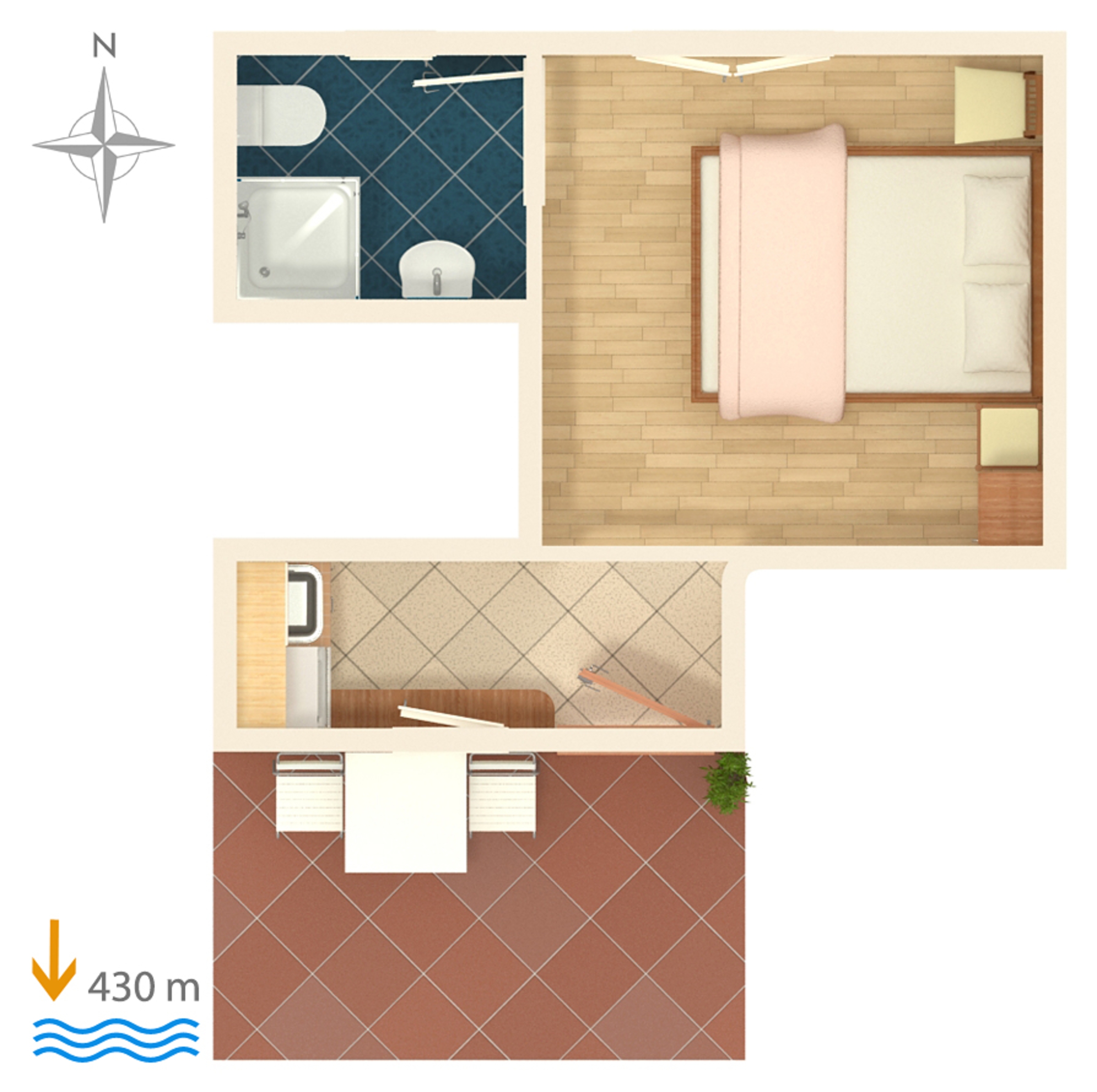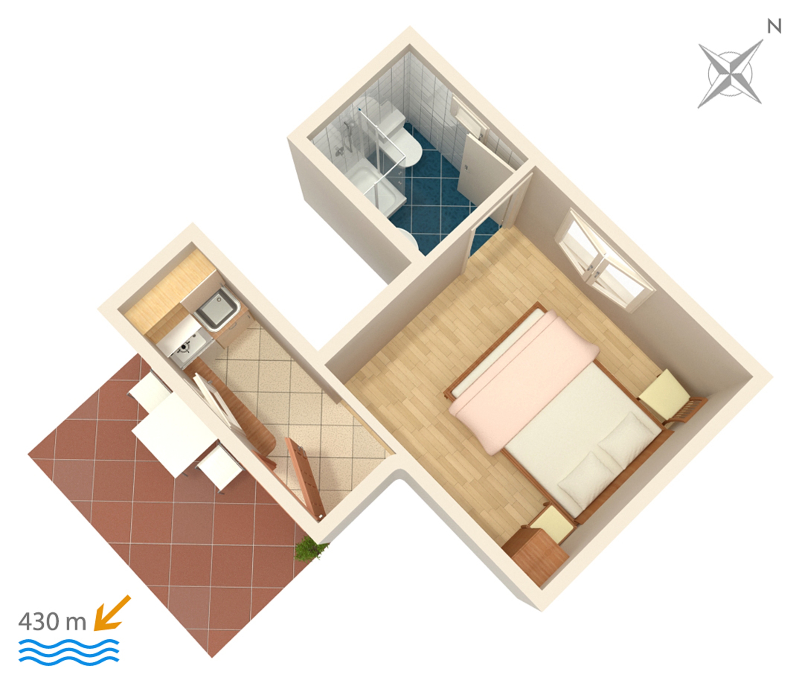 Studio flat can accommodate 2 guests. Beds are situated in 1 sleeping rooms, within 16m2. The studio offers the sea view. Food can be prepared using barbecue which is shared with other guests too. Reserved accommodation unit has a shared terrace. INCLUDED IN THE PRICE: tourist tax, final cleaning, parking, internet, iron, ironing board, hairdryer, portable barbecue. OBLIGATORY ADDITIONAL COSTS: short stay fee (surcharge depending on a number of booked nights: 30% - 1, 20% - 2, 10% - 3). OPTIONAL ADDITIONAL COSTS: air-conditioning (€0.80 per hour). The availability of additional services for your chosen dates of stay, as well as their prices (if none are listed) must be checked ahead of time. Any additional services not shown in the price calculation are payable directly to the property owner and only if used by the visitor.