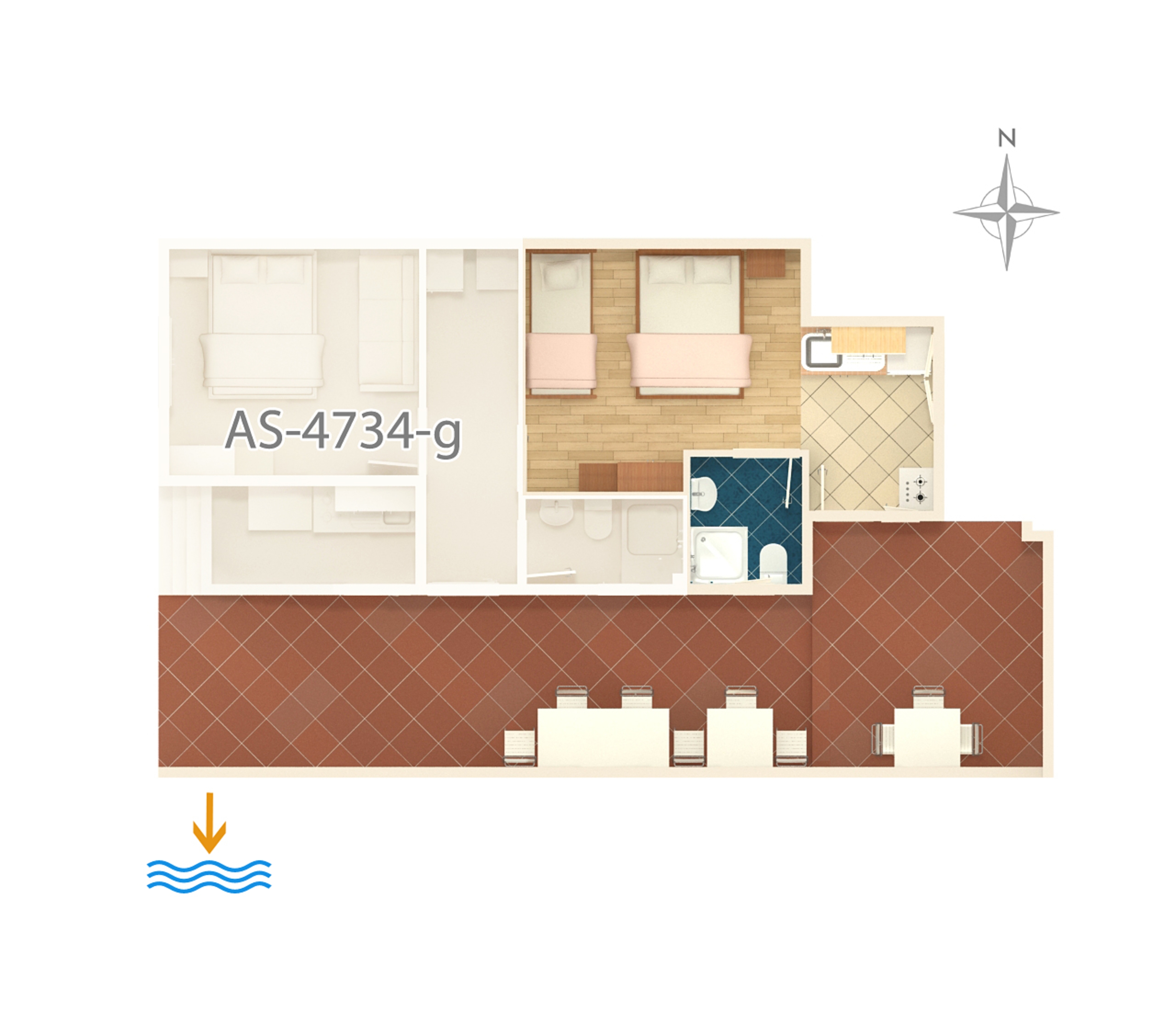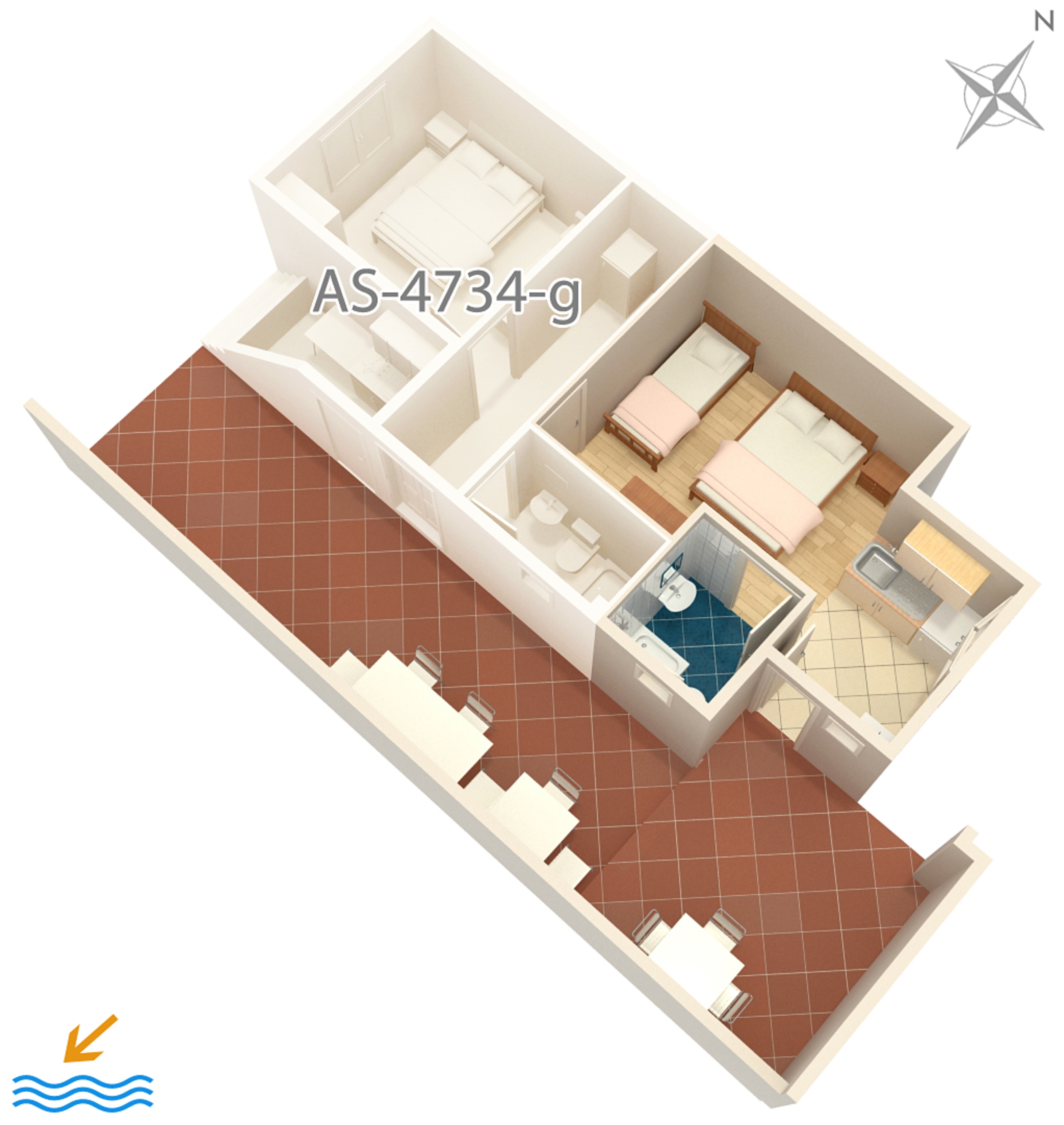 Studio flat can accommodate 3 guests. Beds are situated in 1 sleeping rooms, within 17m2. Food can be prepared using barbecue which is shared with other guests too. Reserved accommodation unit has a shared terrace. INCLUDED IN THE PRICE: tourist tax, final cleaning, parking, internet, iron, ironing board, hairdryer, portable barbecue. OBLIGATORY ADDITIONAL COSTS: short stay fee (surcharge depending on a number of booked nights: 30% - 1, 20% - 2, 10% - 3). OPTIONAL ADDITIONAL COSTS: laundry (€7.00 washing), additional bed (€6.00 per night). The availability of additional services for your chosen dates of stay, as well as their prices (if none are listed) must be checked ahead of time. Any additional services not shown in the price calculation are payable directly to the property owner and only if used by the visitor. Discounts to the base price: free day 28=25 (for stays of 28 days or more, we give you 3 days free of charge for the stay until 31122026).