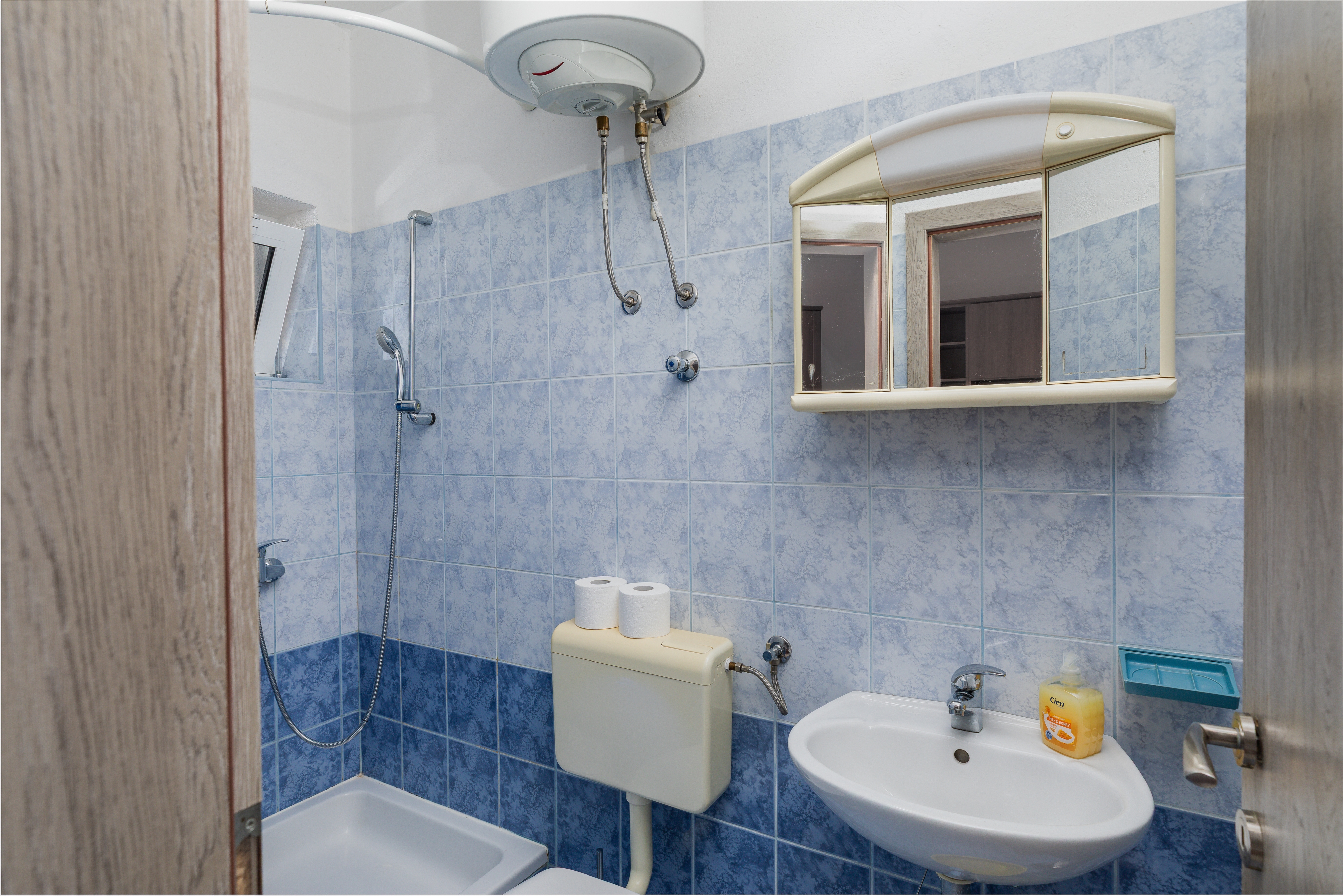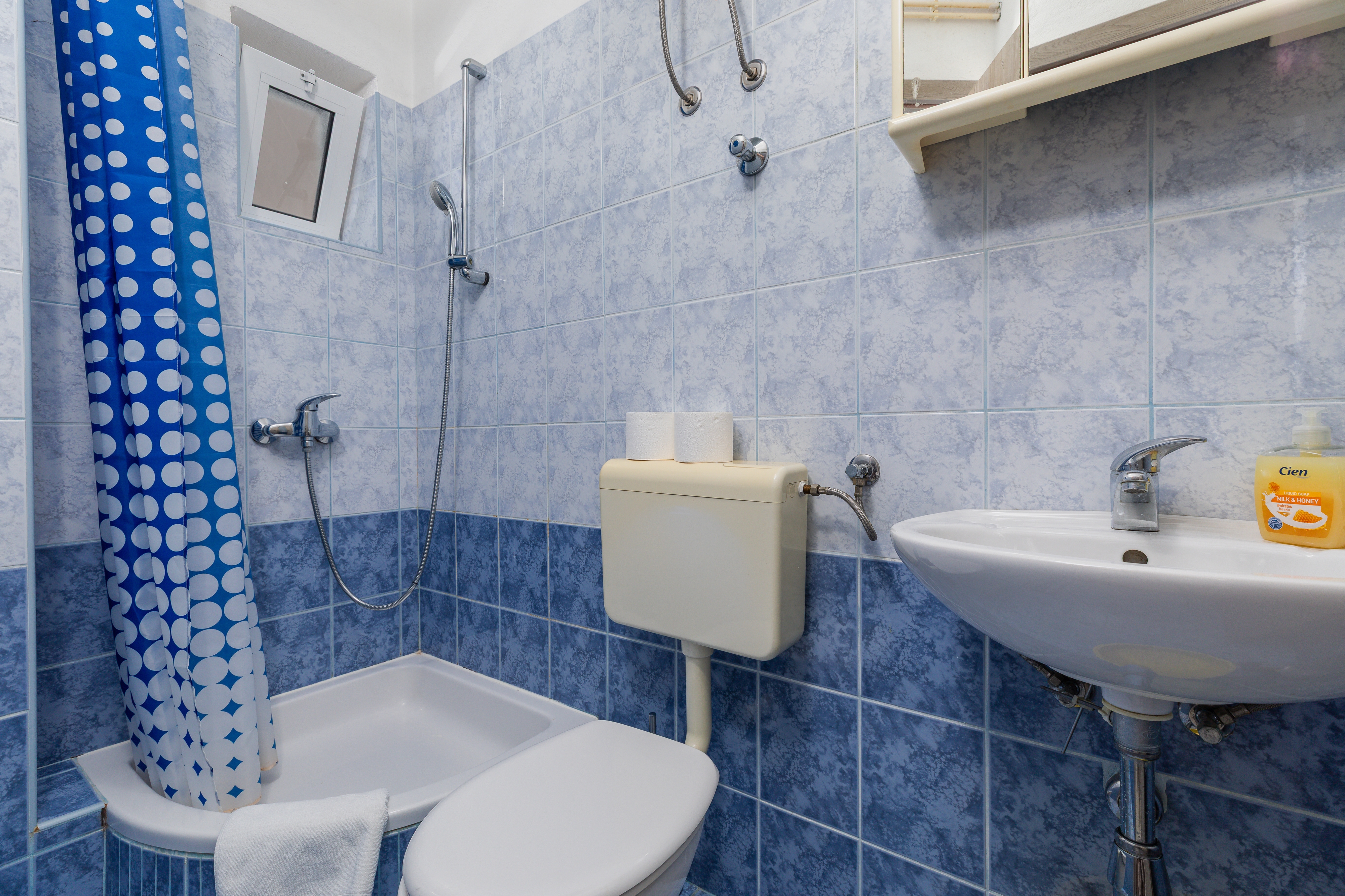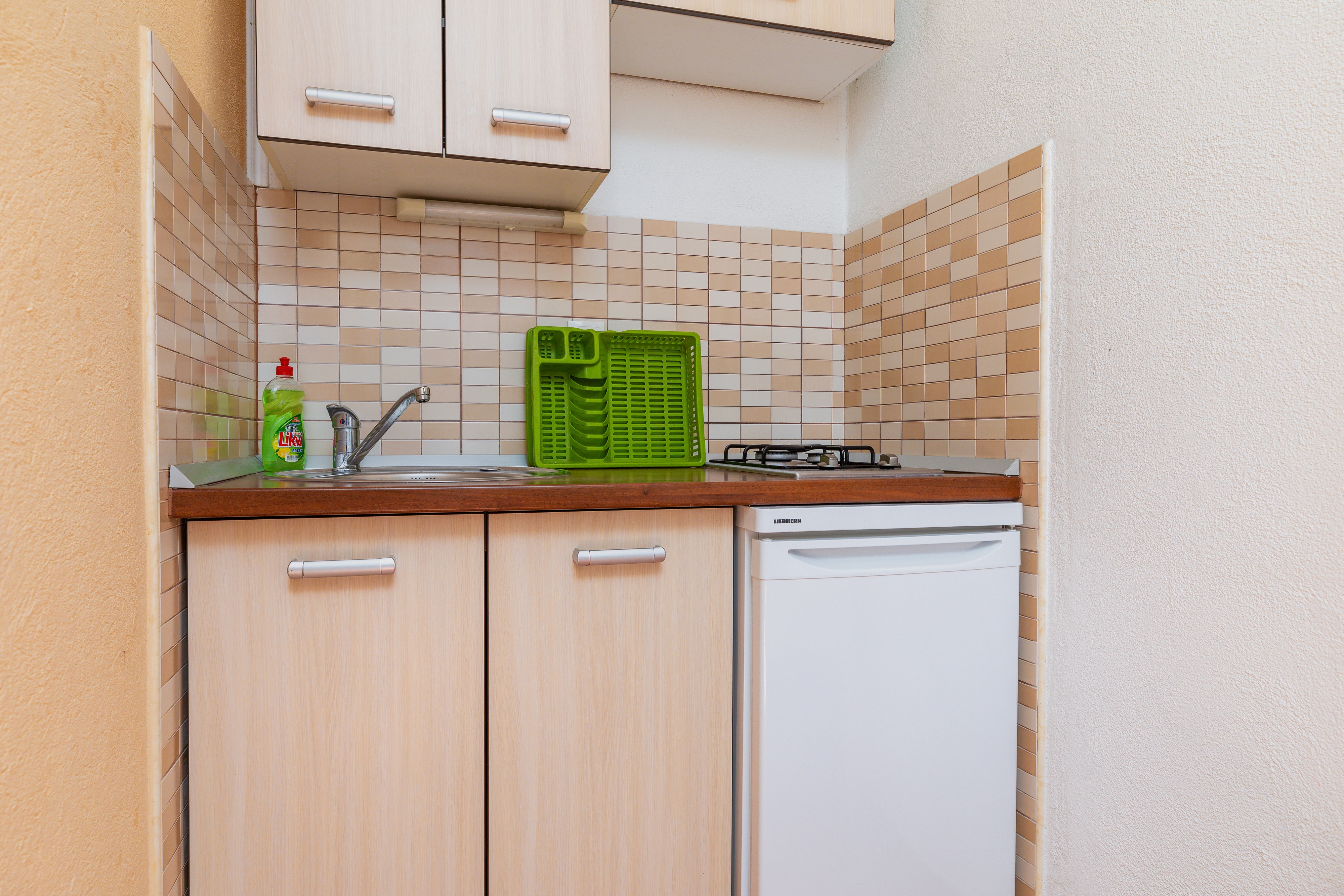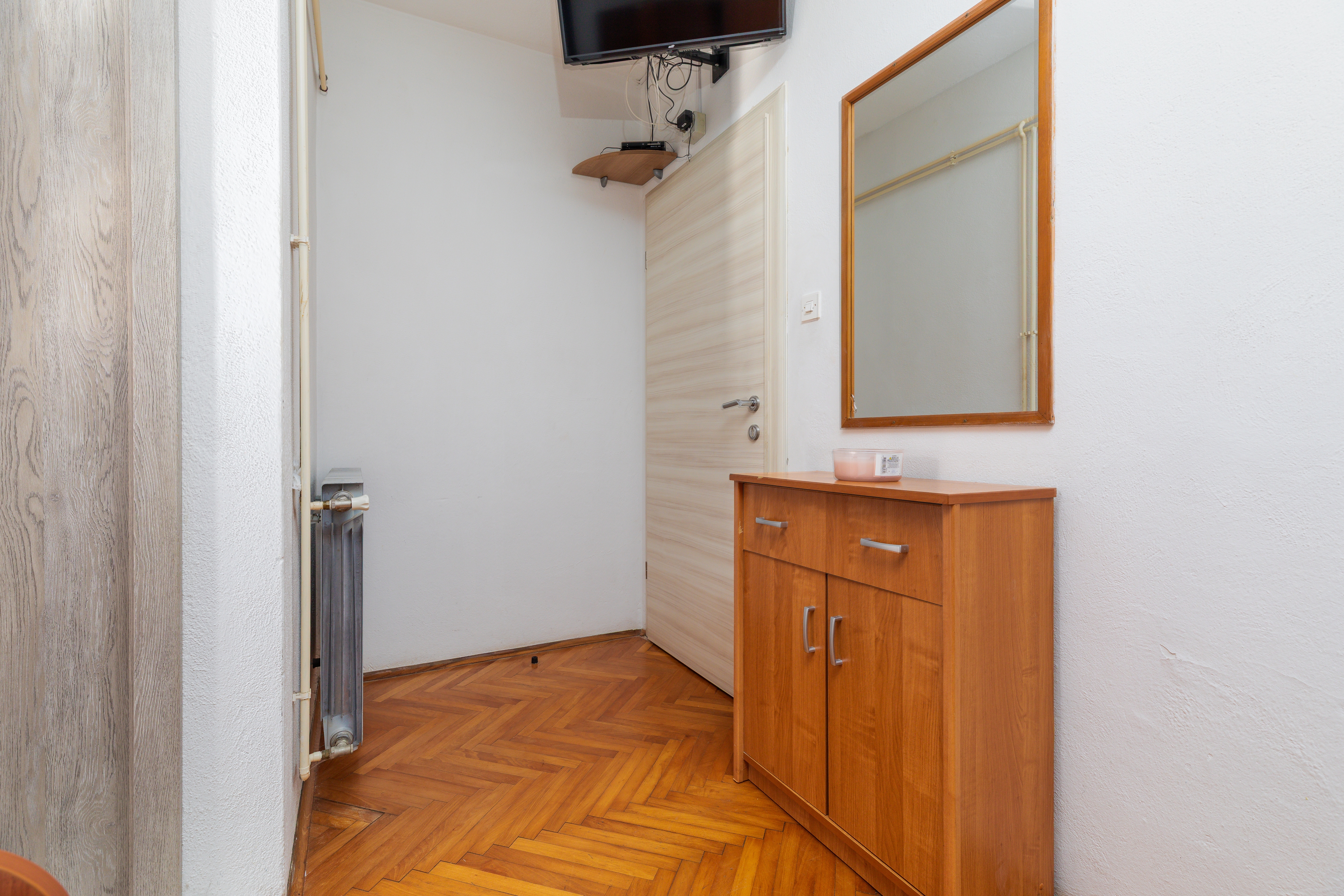 Studio flat can accommodate 3 guests. Beds are situated in 1 sleeping rooms, within 21m2. Guests can use a private terrace to enjoy the warm summer evenings. Food can be prepared using barbecue which is shared with other guests too. This accommodation unit welcomes pets at no additional costs. INCLUDED IN THE PRICE: tourist tax, final cleaning, air-conditioning, parking, internet, pets, baby cot, iron, ironing board. OBLIGATORY ADDITIONAL COSTS: short stay fee (surcharge depending on a number of booked nights: 30% - 1, 20% - 2, 10% - 3). OPTIONAL ADDITIONAL COSTS: laundry (€6.00 washing). The availability of additional services for your chosen dates of stay, as well as their prices (if none are listed) must be checked ahead of time. Any additional services not shown in the price calculation are payable directly to the property owner and only if used by the visitor.