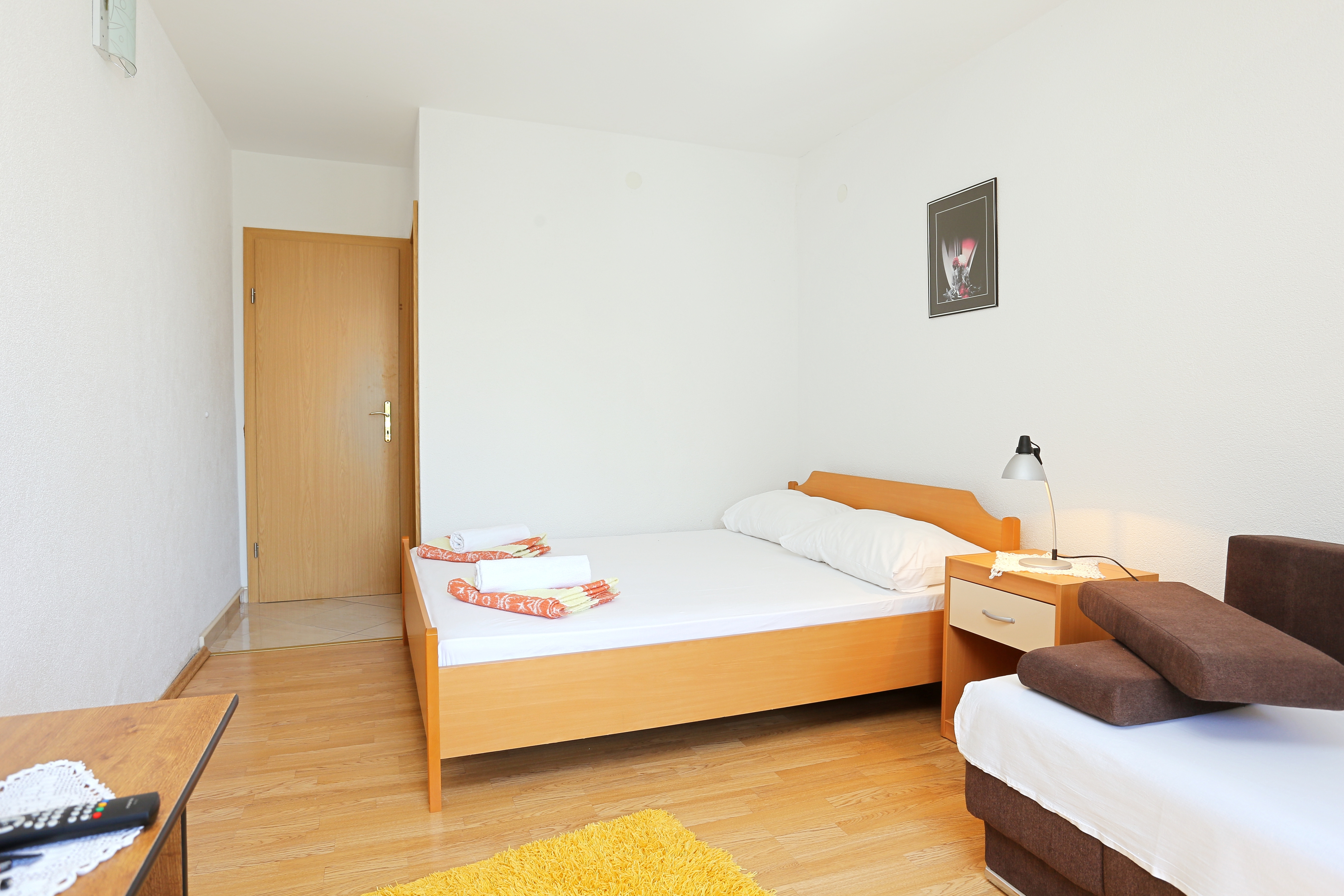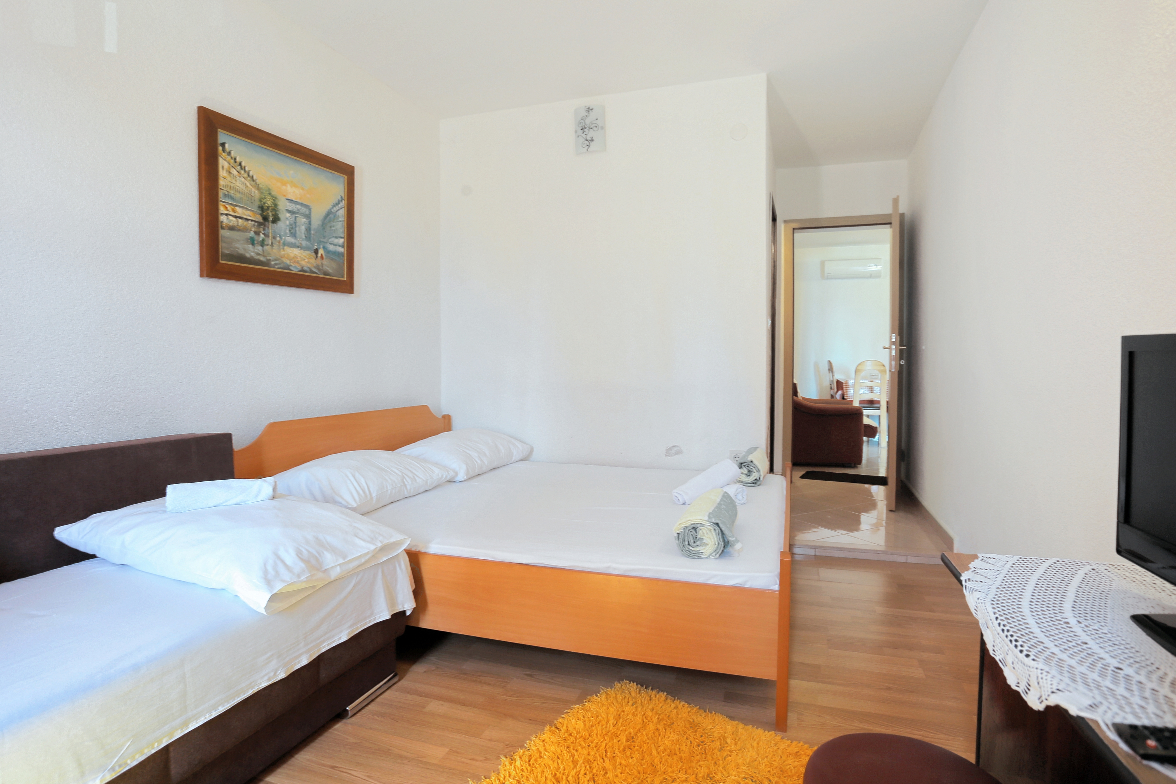 Apartment can accommodate 6 guests. Beds are situated in 2 sleeping rooms, within 45m2. Guests can use a private balcony to enjoy the warm summer evenings. The apartment offers the sea view. Food can be prepared using barbecue which is shared with other guests too. INCLUDED IN THE PRICE: tourist tax, final cleaning, air-conditioning, parking, internet, hairdryer. OBLIGATORY ADDITIONAL COSTS: short stay fee (surcharge depending on a number of booked nights: 30% - 1, 20% - 2, 10% - 3). The availability of additional services for your chosen dates of stay, as well as their prices (if none are listed) must be checked ahead of time. Any additional services not shown in the price calculation are payable directly to the property owner and only if used by the visitor. Discounts to the base price: free day 14=13 (for reservations of 14 or more days you get one free day for the stay until 31122026).