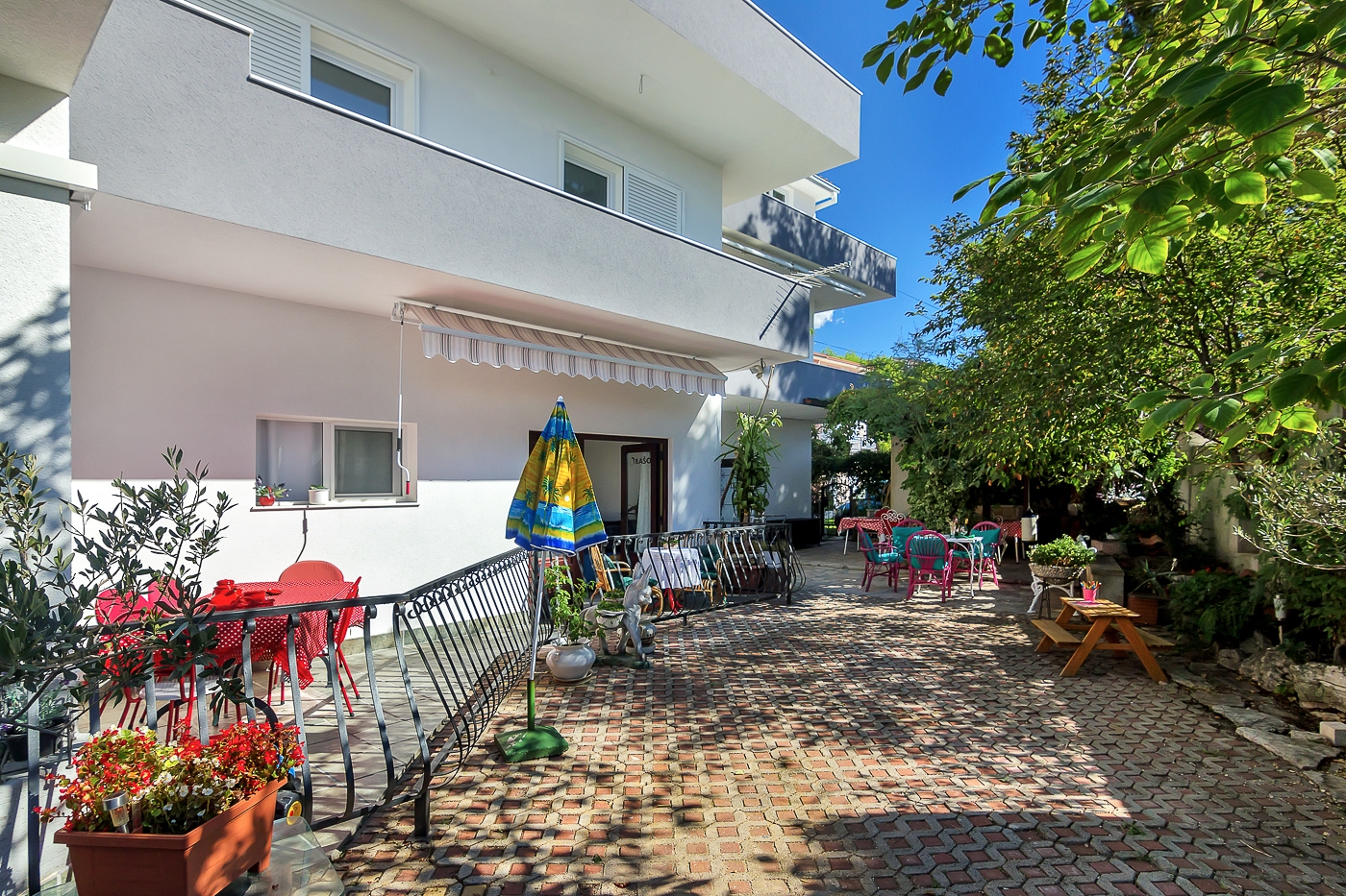 House 6909 in the town of Makarska, Makarska - Central Dalmatia has accommodation units of type Apartment (1), Studio flat (1) and is 600 m away from the sea. The nearest beach to this accommodation is a pebble beach. As the house is dividedseveral accommodation units, other guests will most likely be present during your stay. The hosts will be in the house during your holiday. The house owner is under no obligation to accept additional persons and pets that were not stated in the reservation request and it is necessary to report them in advance.AMENITIES Parking lot (Number of parking spaces: 5, Distance from the house: In the courtyard), WiFi Internet, Laundry service, Hairdryer, Iron, Ironing board, Baby cot LOCATION AND ACCESS Car access possible: Yes The facility is not located in quiet surroundings The property isnt surrounded by greenery DISTANCES Sea: 600 m Beach: 750 m Center: 600 m Shop: 250 m Urgent medical care: 300 m Pharmacy: 300 m Exchange office: 700 m ATMBank machine: 500 m Tourist info: 750 m