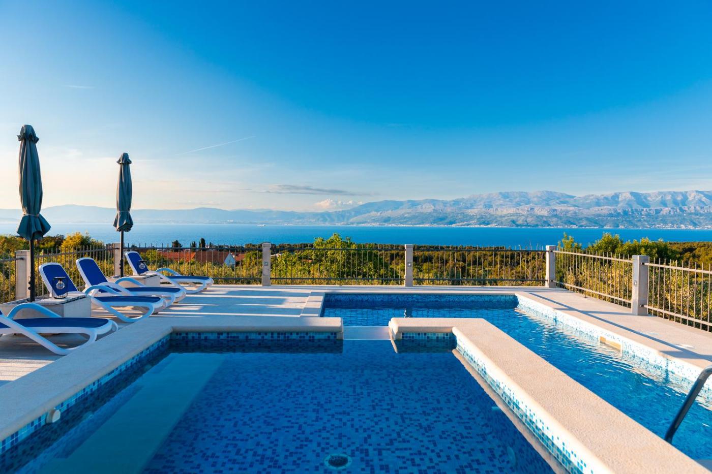 Villa with Sea View. This villas standout features are the pool with a view, hot tub and fireplace. Featuring a private entrance, this air-conditioned villa comprises 1 living room, 3 separate bedrooms and 2 bathrooms with a bath and a shower. Guests will find a refrigerator, a dishwasher, kitchenware and an oven in the well-equipped kitchen. The villa also provides guests with a barbecue. Boasting a terrace with sea views, this villa also provides a washing machine and a flat-screen TV with streaming services. The unit offers 4 beds.