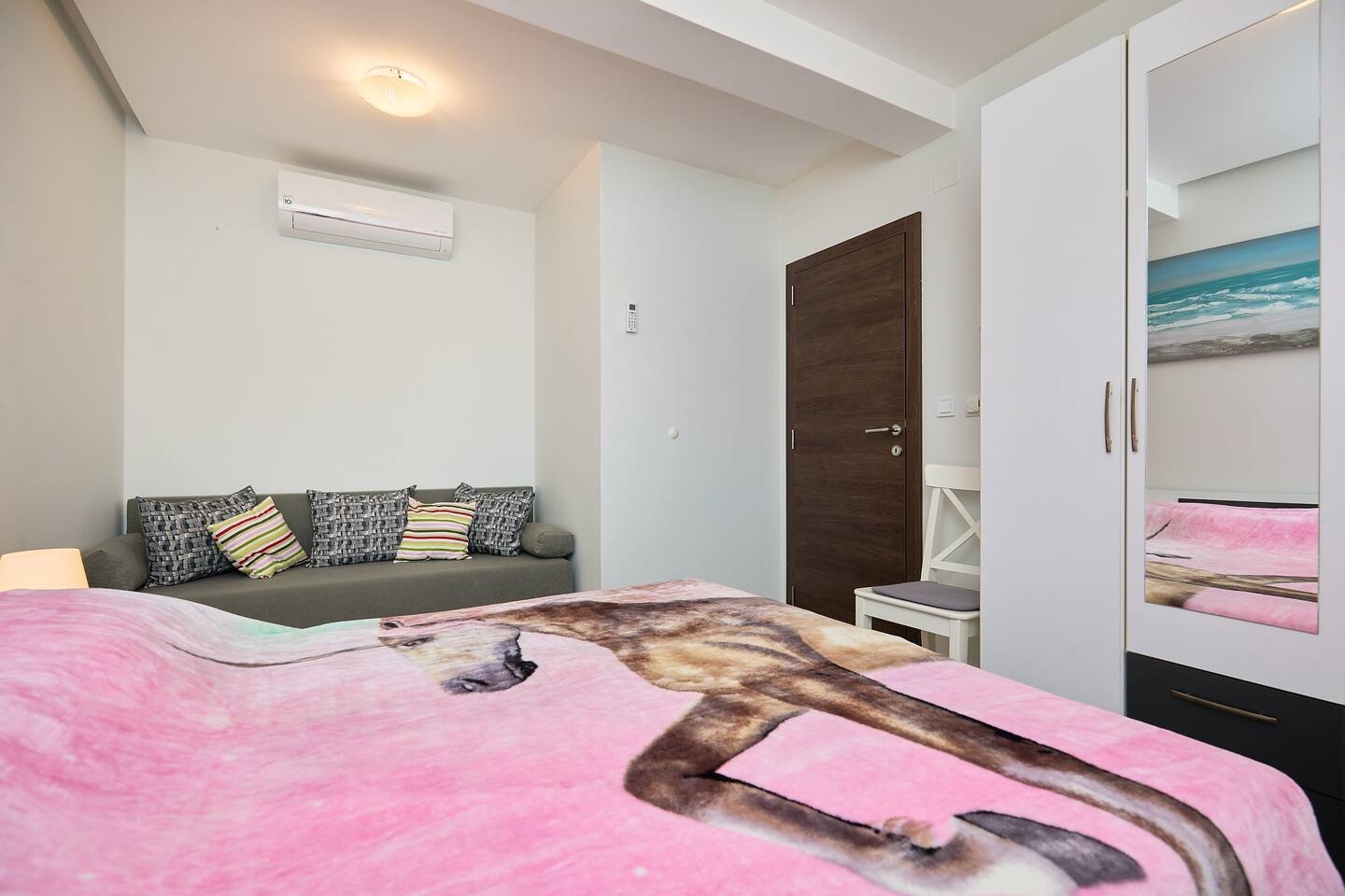 Apartment can accommodate 4 guests. Beds are situated in 1 sleeping rooms, but also in the living room, within 42m2. Guests can use a private terrace to enjoy the warm summer evenings. The apartment offers the sea view. INCLUDED IN THE PRICE: tourist tax, final cleaning, air-conditioning, parking, internet, baby cot, iron, ironing board, hairdryer. The availability of additional services for your chosen dates of stay, as well as their prices (if none are listed) must be checked ahead of time. Any additional services not shown in the price calculation are payable directly to the property owner and only if used by the visitor.