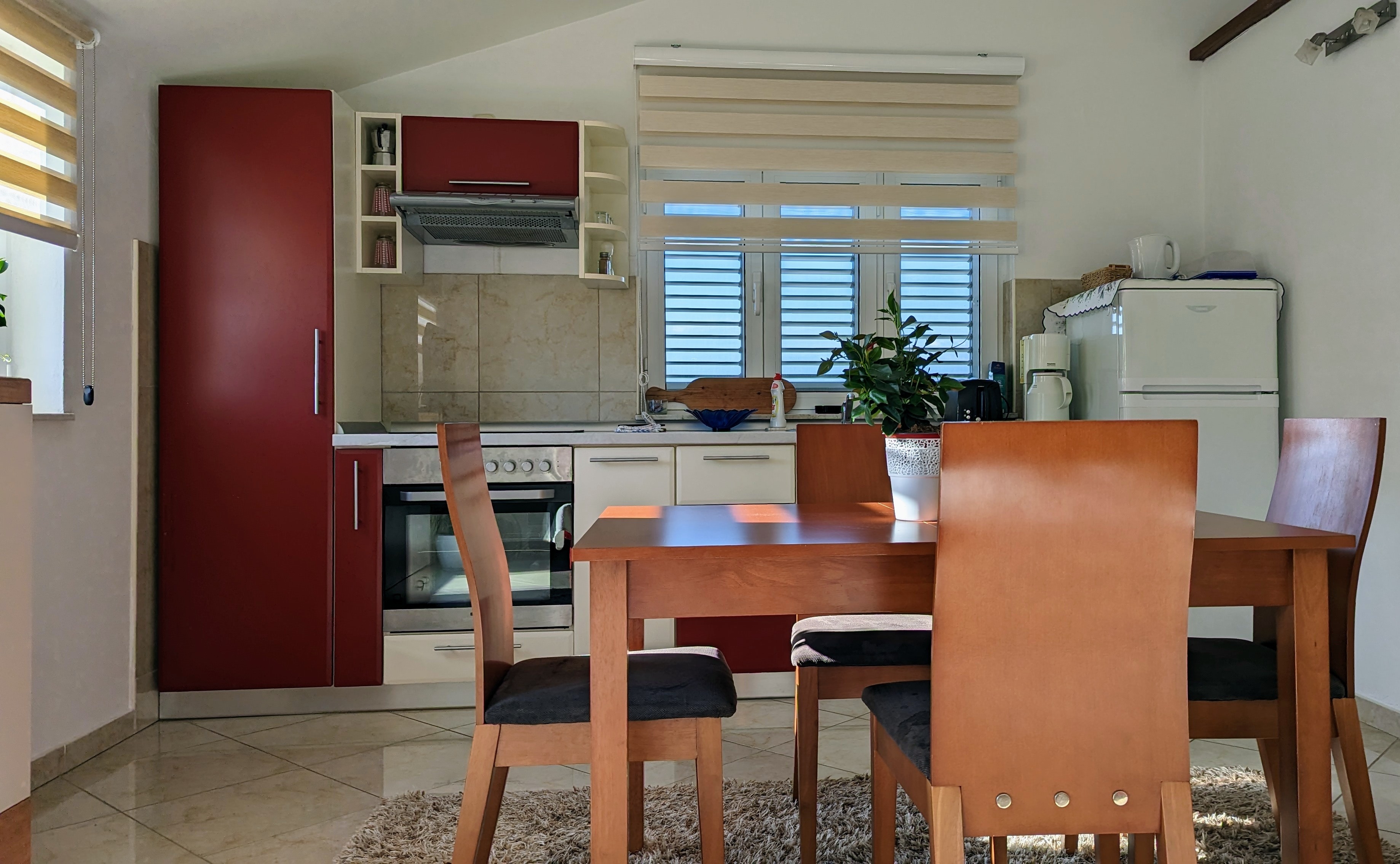 Apartment can accommodate 3 guests. Beds are situated in 1 sleeping rooms, but also in the living room, within 39m2. Guests can use a private terrace to enjoy the warm summer evenings. The apartment offers the sea view. Food can be prepared using barbecue which is shared with other guests too. INCLUDED IN THE PRICE: tourist tax, final cleaning, air-conditioning, parking, internet, hairdryer. OBLIGATORY ADDITIONAL COSTS: short stay fee (surcharge depending on a number of booked nights: 30% - 1, 20% - 2, 10% - 3). OPTIONAL ADDITIONAL COSTS: laundry (€5.00 washing). The availability of additional services for your chosen dates of stay, as well as their prices (if none are listed) must be checked ahead of time. Any additional services not shown in the price calculation are payable directly to the property owner and only if used by the visitor.