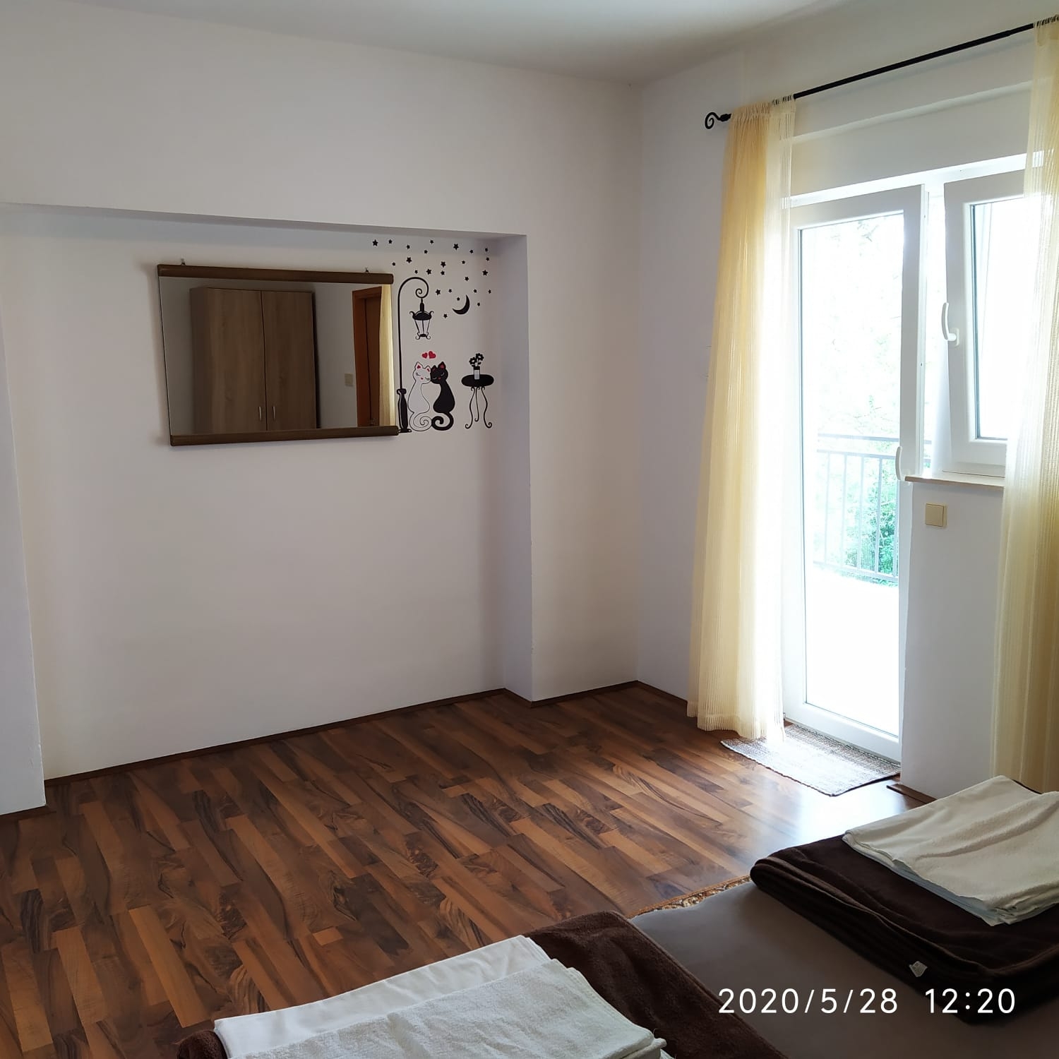 Room can accommodate 2 guests. Beds are situated in 1 sleeping rooms, within 20m2. Use of shared kitchen is possible. Guests can use a private terrace to enjoy the warm summer evenings. Reserved accommodation unit is a room with its own bathroom and shared kitchen at no additional charge. INCLUDED IN THE PRICE: tourist tax, final cleaning, air-conditioning, shared kitchen, parking, internet. OBLIGATORY ADDITIONAL COSTS: short stay fee (surcharge depending on a number of booked nights: 30% - 1, 20% - 2, 10% - 3). OPTIONAL ADDITIONAL COSTS: laundry (€5.00 washing). The availability of additional services for your chosen dates of stay, as well as their prices (if none are listed) must be checked ahead of time. Any additional services not shown in the price calculation are payable directly to the property owner and only if used by the visitor.