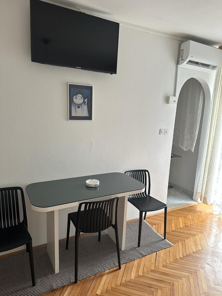Studio flat can accommodate 4 guests. Beds are situated in 1 sleeping rooms, within 26m2. Guests can use a private balcony to enjoy the warm summer evenings. The studio offers the sea view. Food can be prepared using barbecue which is shared with other guests too. INCLUDED IN THE PRICE: tourist tax, final cleaning, parking, internet. OPTIONAL ADDITIONAL COSTS: air-conditioning (€0.25 per hour), laundry (€5.00 washing). The availability of additional services for your chosen dates of stay, as well as their prices (if none are listed) must be checked ahead of time. Any additional services not shown in the price calculation are payable directly to the property owner and only if used by the visitor. Discounts to the base price: free day 14=13 (for reservations of 14 or more days you get one free day for the stay until 31122026).