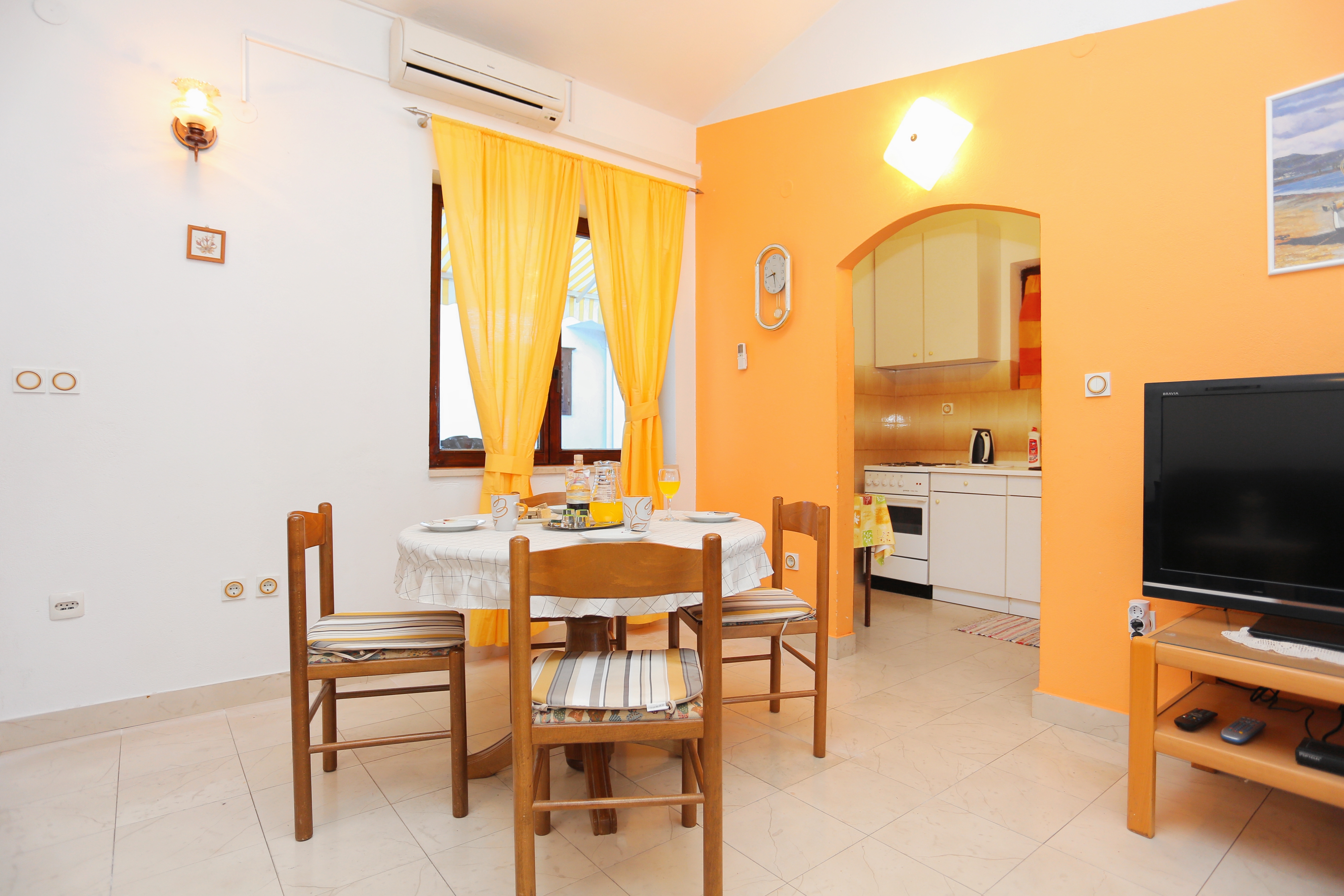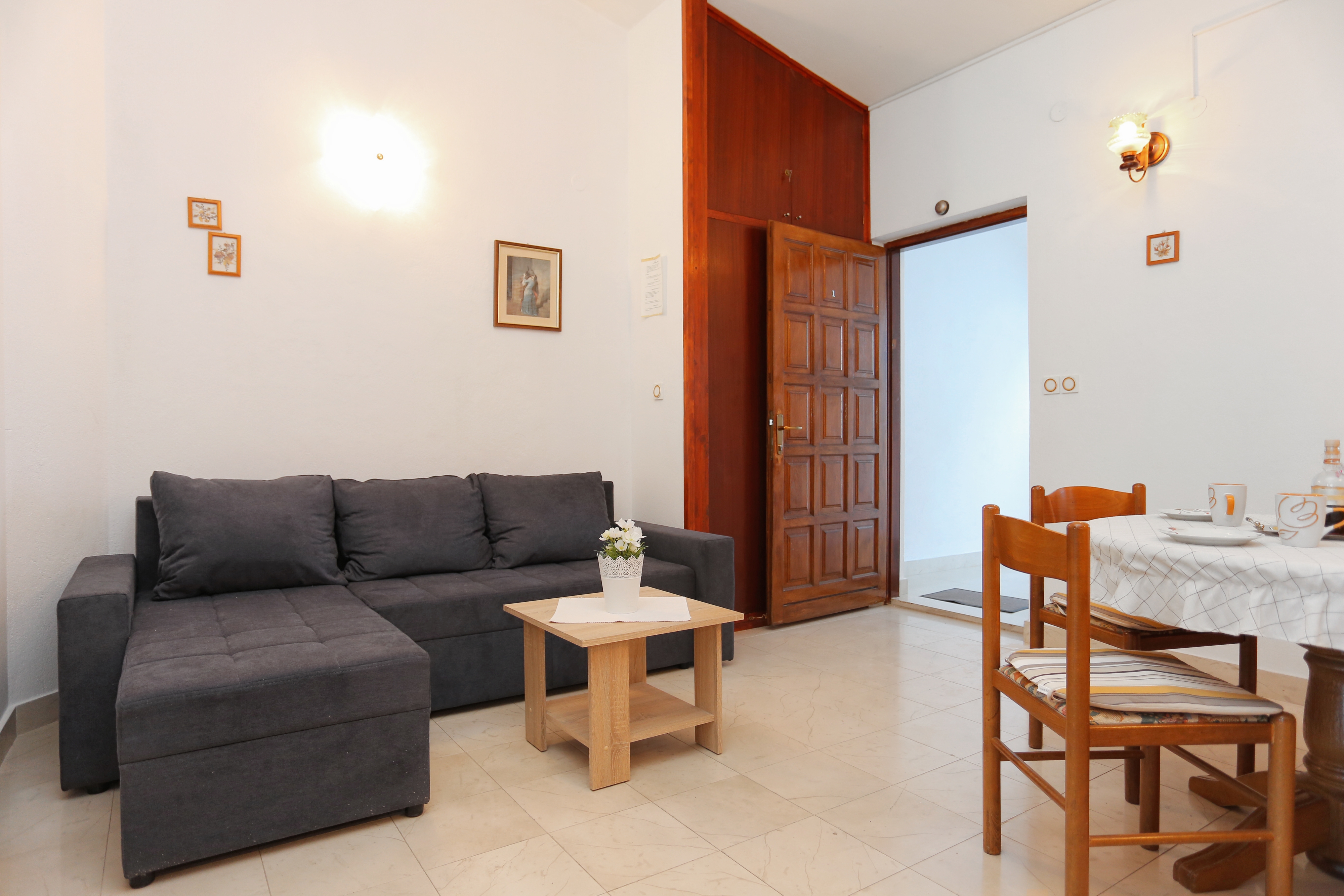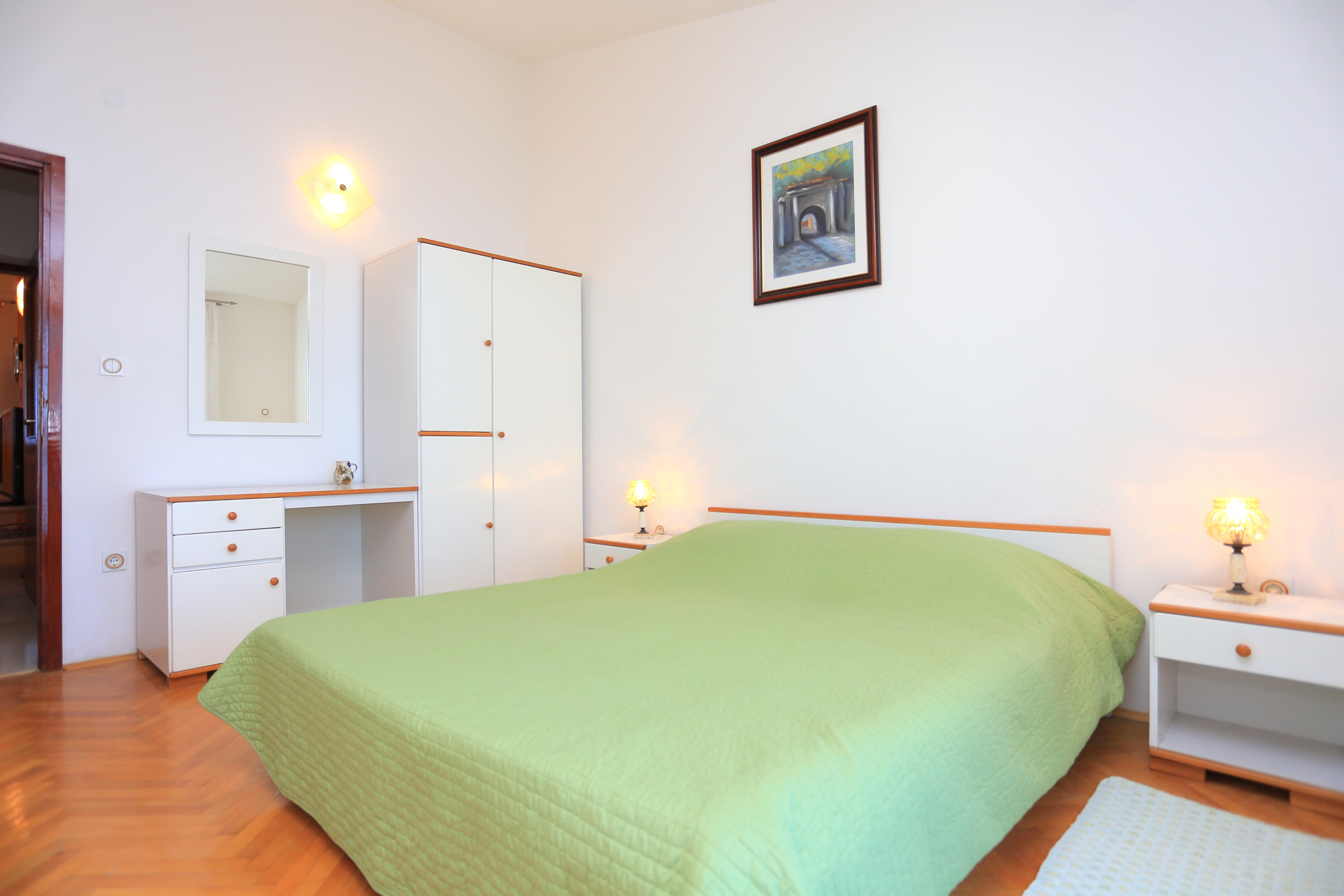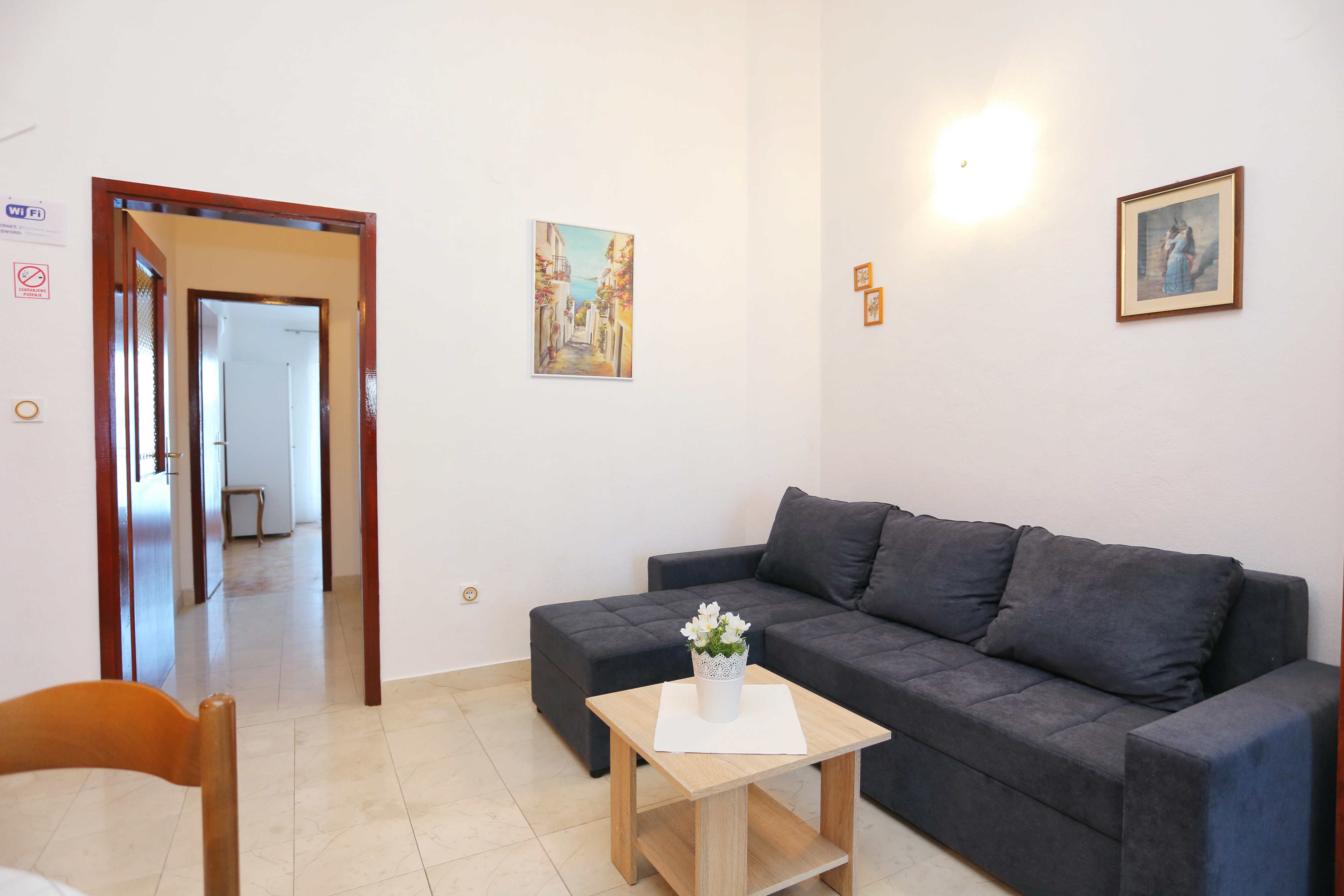 Apartment can accommodate 5 guests. Beds are situated in 2 sleeping rooms, but also in the living room, within 62m2. Guests can use a private terrace to enjoy the warm summer evenings. The apartment offers the sea view. For full enjoyment and relaxation there is a private barbecue for this accommodation guests only. INCLUDED IN THE PRICE: tourist tax, final cleaning, air-conditioning, parking, internet. OBLIGATORY ADDITIONAL COSTS: short stay fee (surcharge depending on a number of booked nights: 30% - 1, 20% - 2, 10% - 3). The availability of additional services for your chosen dates of stay, as well as their prices (if none are listed) must be checked ahead of time. Any additional services not shown in the price calculation are payable directly to the property owner and only if used by the visitor. Discounts to the base price: free day 14=13 (for reservations of 14 or more days you get one free day for the stay until 31122026).
