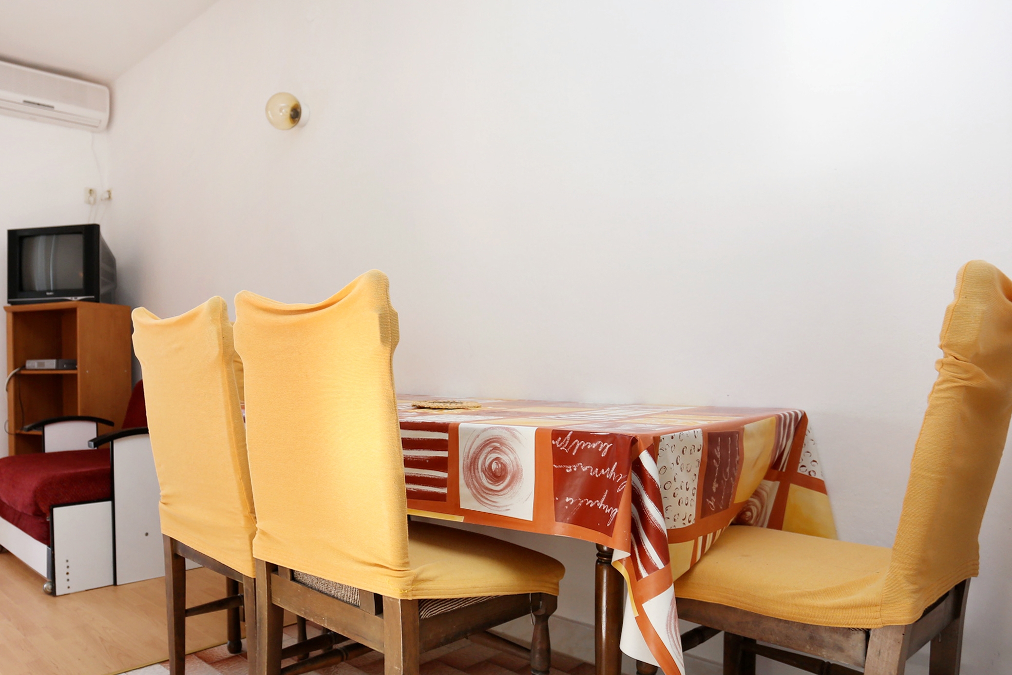 Apartment can accommodate 4 guests. Beds are situated in 1 sleeping rooms, but also in the living room, within 38m2. Guests can use a private terrace to enjoy the warm summer evenings. The apartment offers the sea view. Food can be prepared using barbecue which is shared with other guests too. This accommodation unit welcomes pets at an additional charge. INCLUDED IN THE PRICE: tourist tax, final cleaning, parking, garage, internet, baby cot. OBLIGATORY ADDITIONAL COSTS: short stay fee (surcharge depending on a number of booked nights: 30% - 1, 20% - 2, 10% - 3). OPTIONAL ADDITIONAL COSTS: air-conditioning (€0.50 per hour), pets (€10.00 per night). The availability of additional services for your chosen dates of stay, as well as their prices (if none are listed) must be checked ahead of time. Any additional services not shown in the price calculation are payable directly to the property owner and only if used by the visitor.