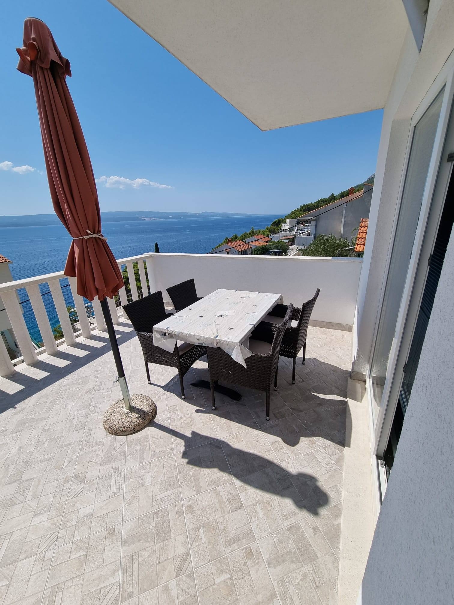 Apartment can accommodate 4 guests. Beds are situated in 1 sleeping rooms, but also in the dining room, within 31m2. Guests can use a private terrace to enjoy the warm summer evenings. The apartment offers the sea view. Food can be prepared using barbecue which is shared with other guests too. This accommodation unit welcomes pets at an additional charge. INCLUDED IN THE PRICE: tourist tax, final cleaning, air-conditioning, parking, internet. OBLIGATORY ADDITIONAL COSTS: short stay fee (surcharge depending on a number of booked nights: 30% - 1, 20% - 2, 10% - 3). OPTIONAL ADDITIONAL COSTS: pets (€5.00 per night). The availability of additional services for your chosen dates of stay, as well as their prices (if none are listed) must be checked ahead of time. Any additional services not shown in the price calculation are payable directly to the property owner and only if used by the visitor.